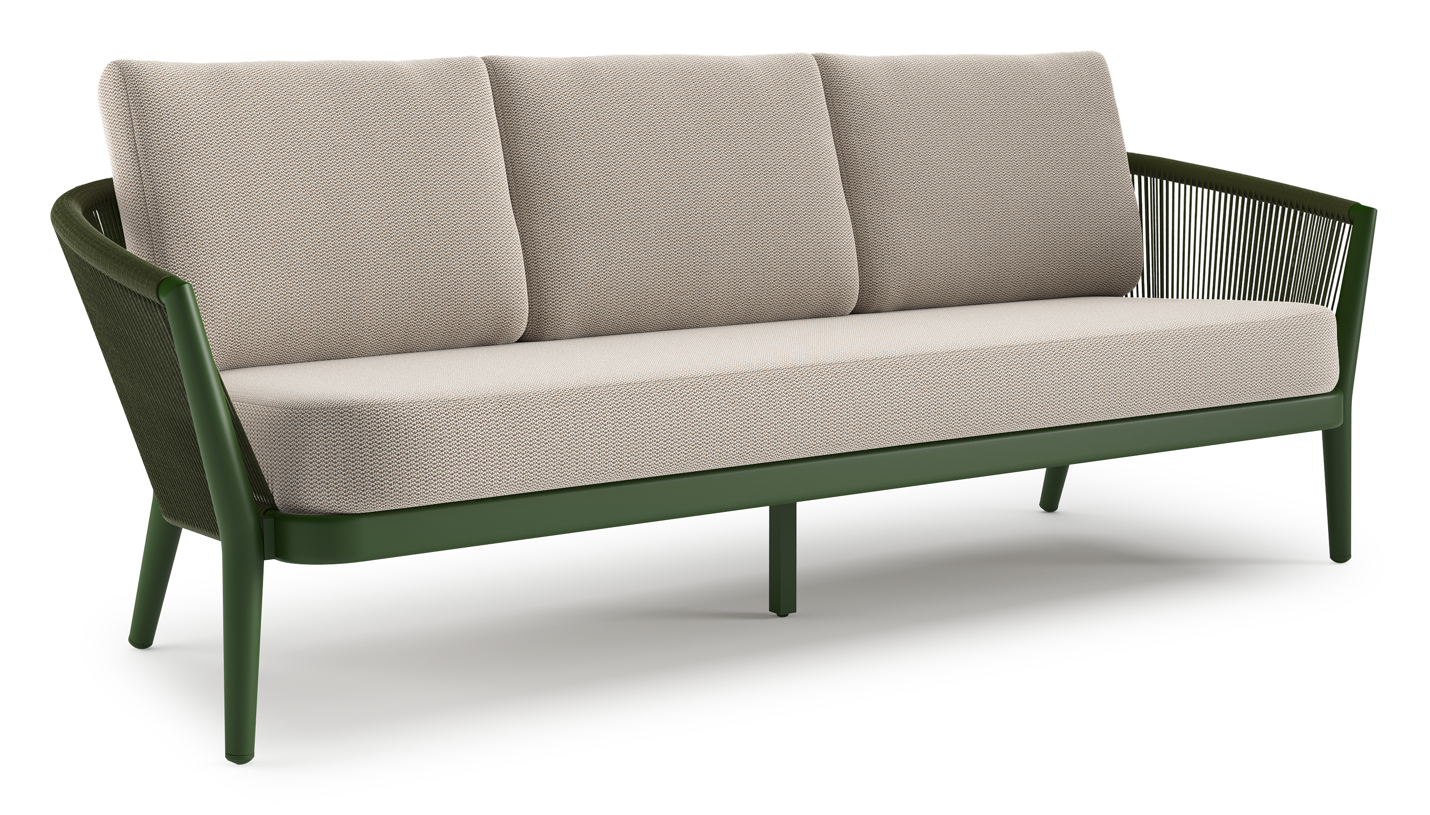 Orso loungebank in groen aluminium en groen verticaal geweven ronde rope met Lopi Fossil all weather sunbrella® luxe kussen | Exterioo tuinmeubelen