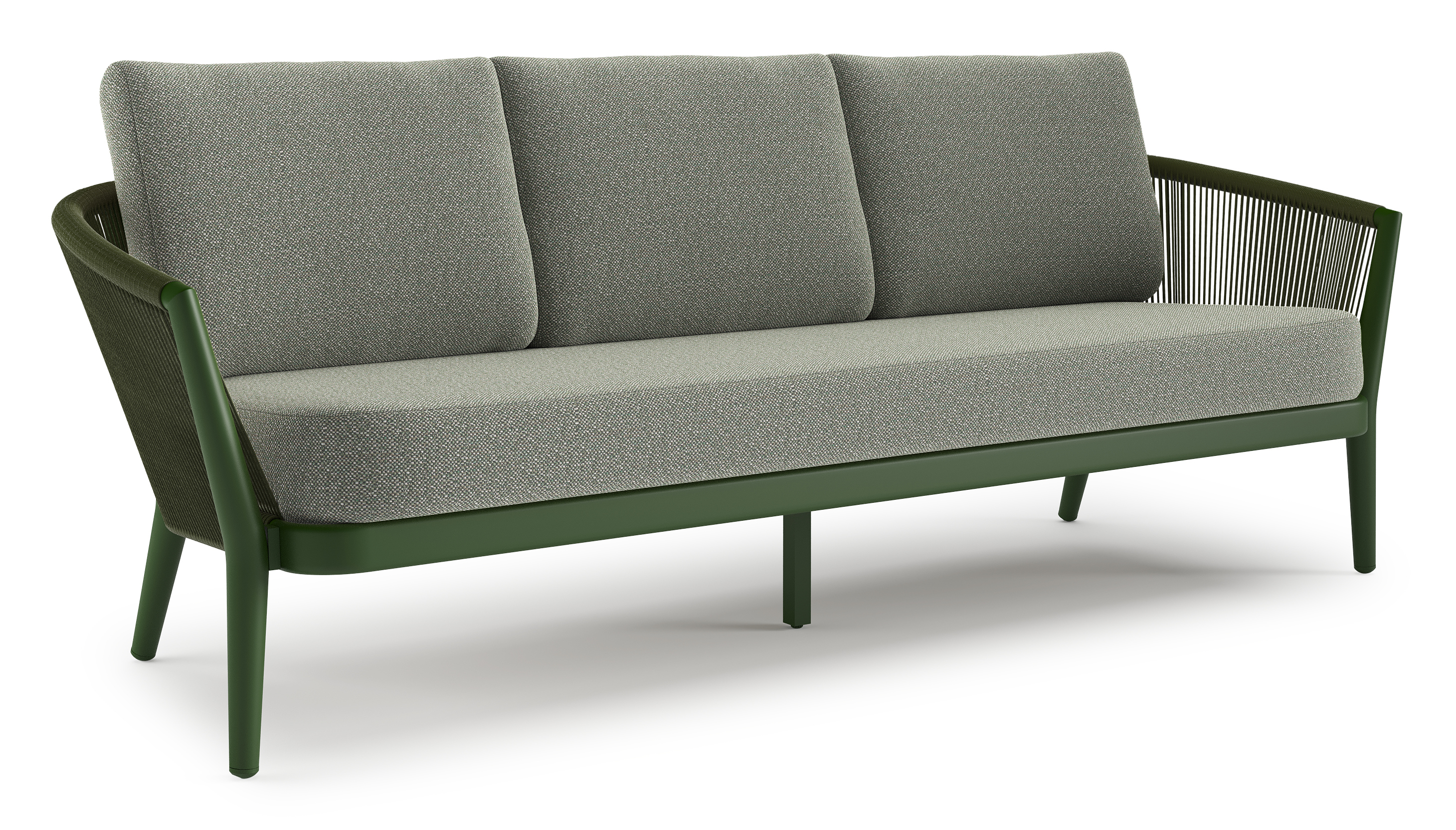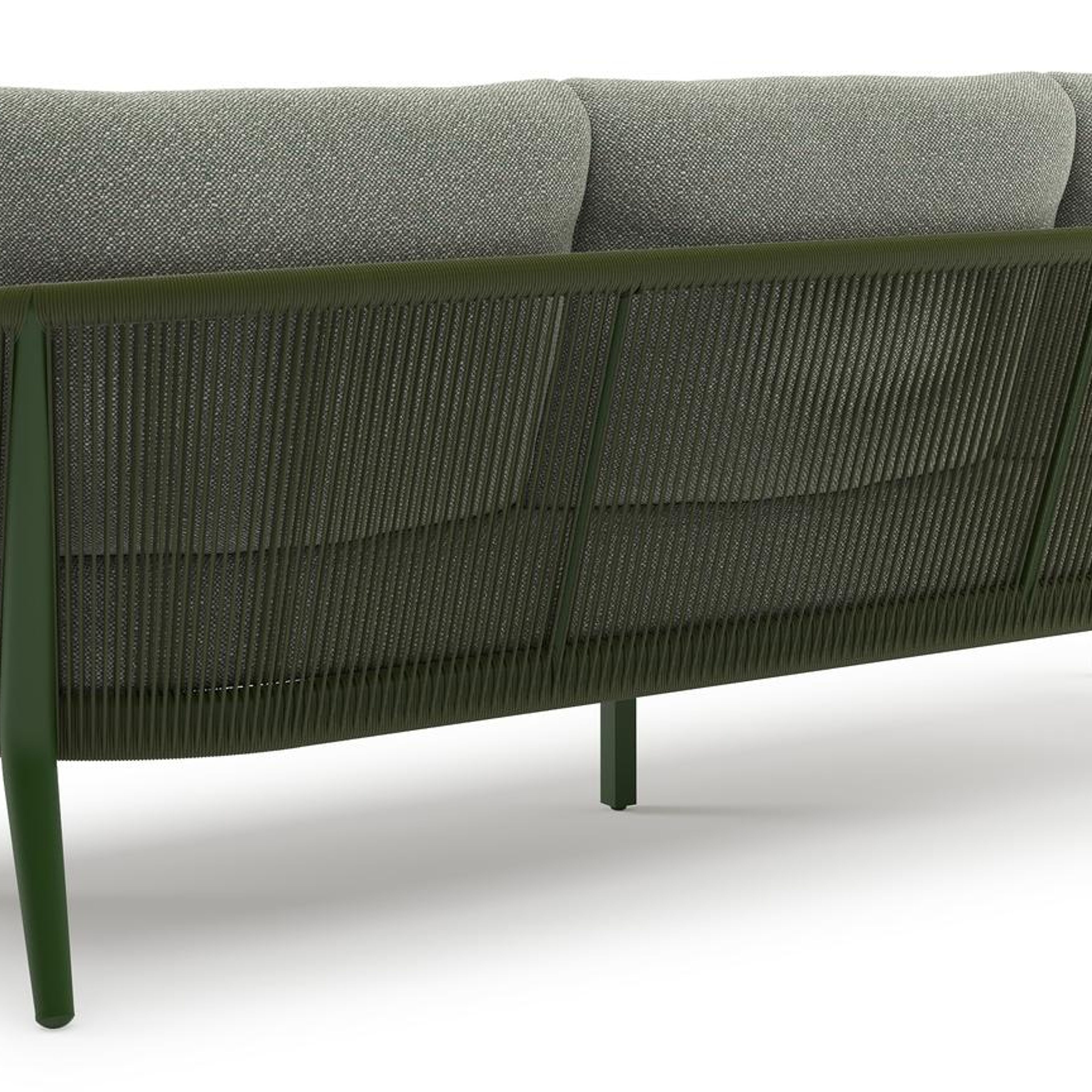 Orso loungebank in groen aluminium en groen verticaal geweven ronde rope met Savane Leaf all weather sunbrella® luxe kussen | Exterioo tuinmeubelen