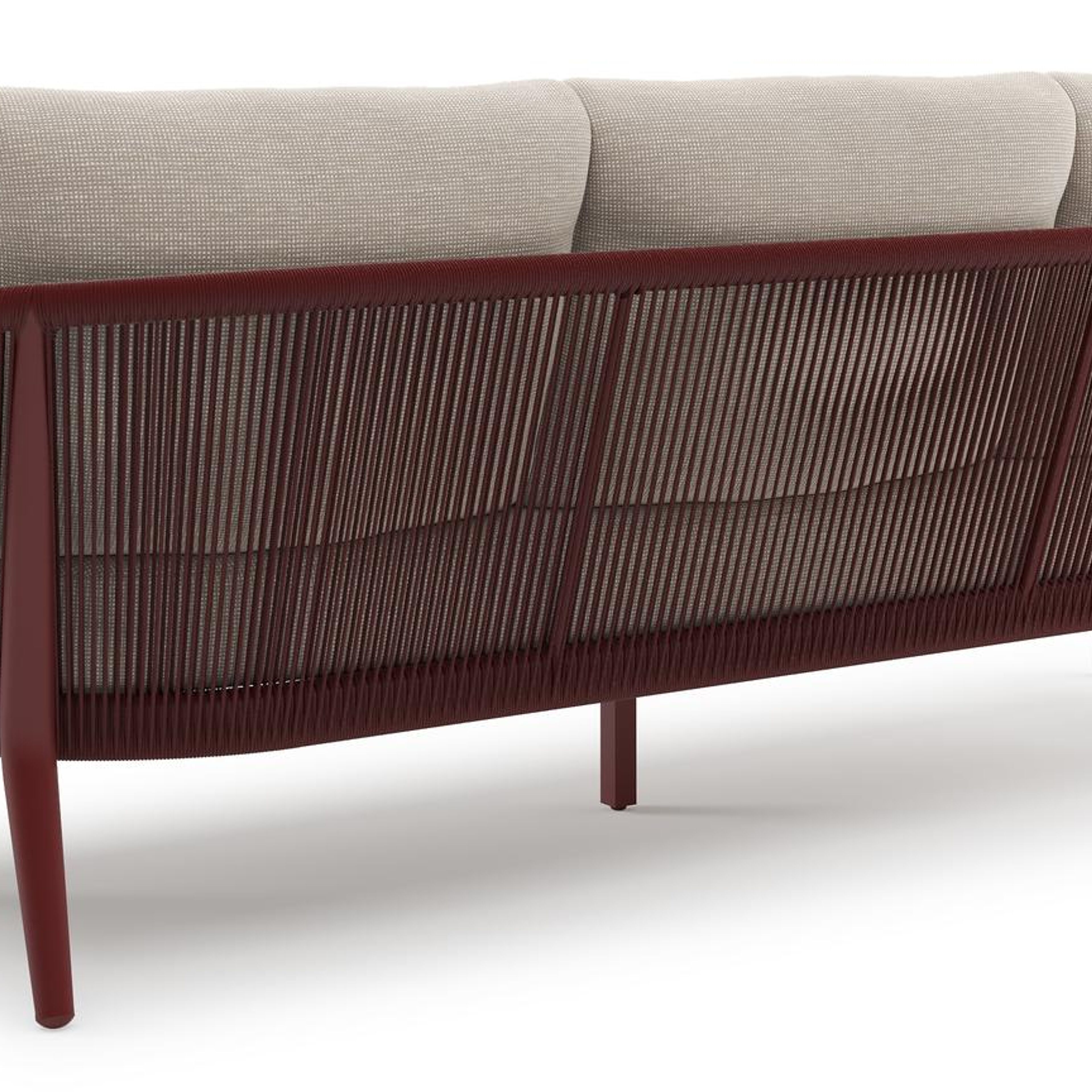 Orso loungebank in ruby aluminium en ruby verticaal geweven ronde rope met Slow Farafra all weather sunbrella® luxe kussen | Exterioo tuinmeubelen
