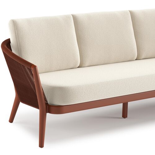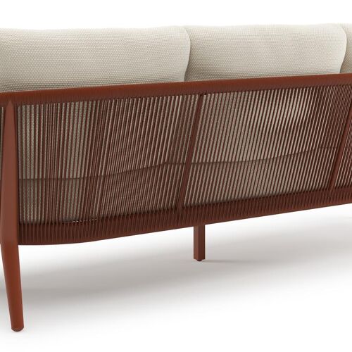Orso loungebank in roestbruin aluminium en roestbruin verticaal geweven ronde rope met Althea Off White all weather cosytica kussen | Exterioo