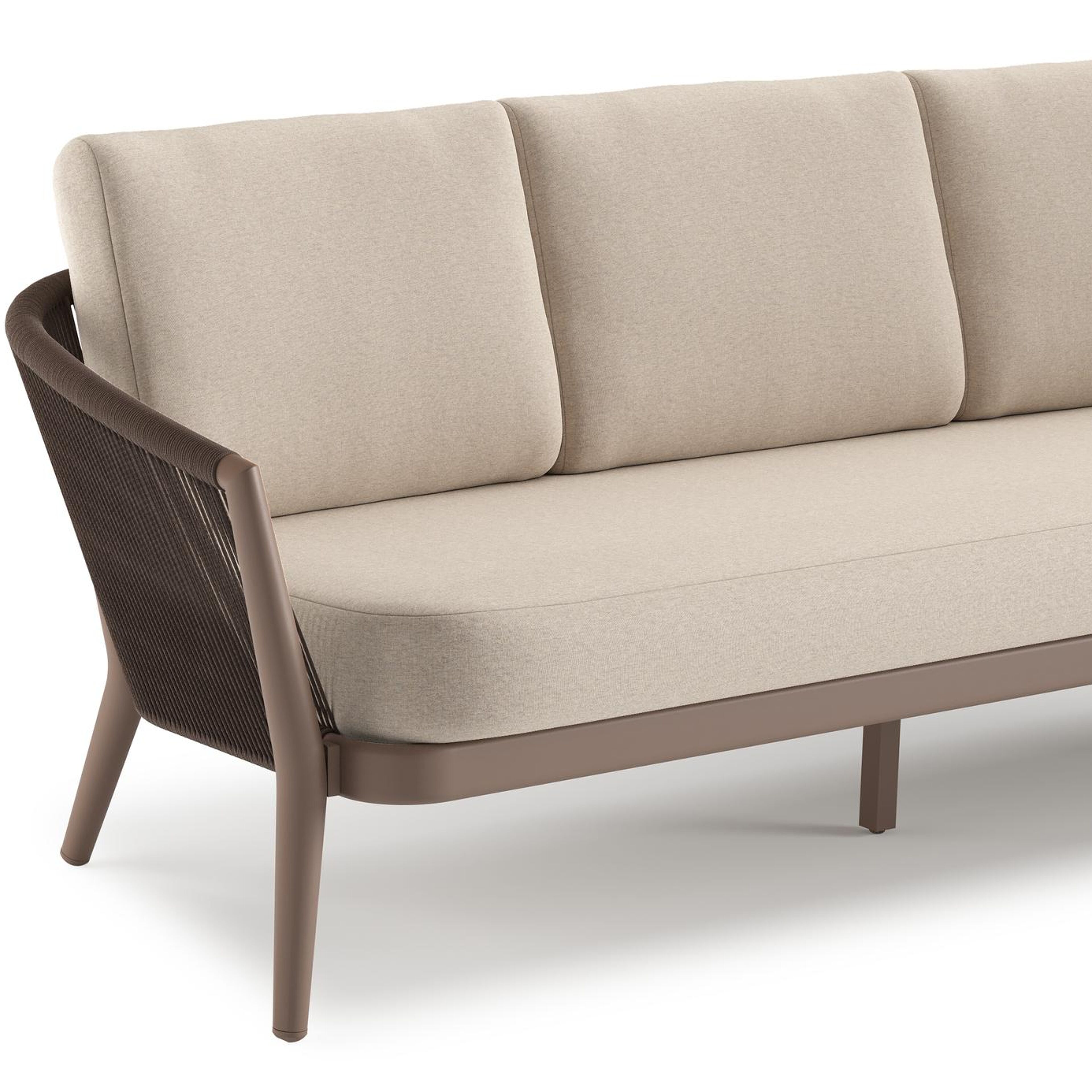 Orso loungebank in taupe aluminiumen zwart verticaal geweven ronde rope met Heritage Ash all weather sunbrella® luxe kussen | Exterioo tuinmeubelen