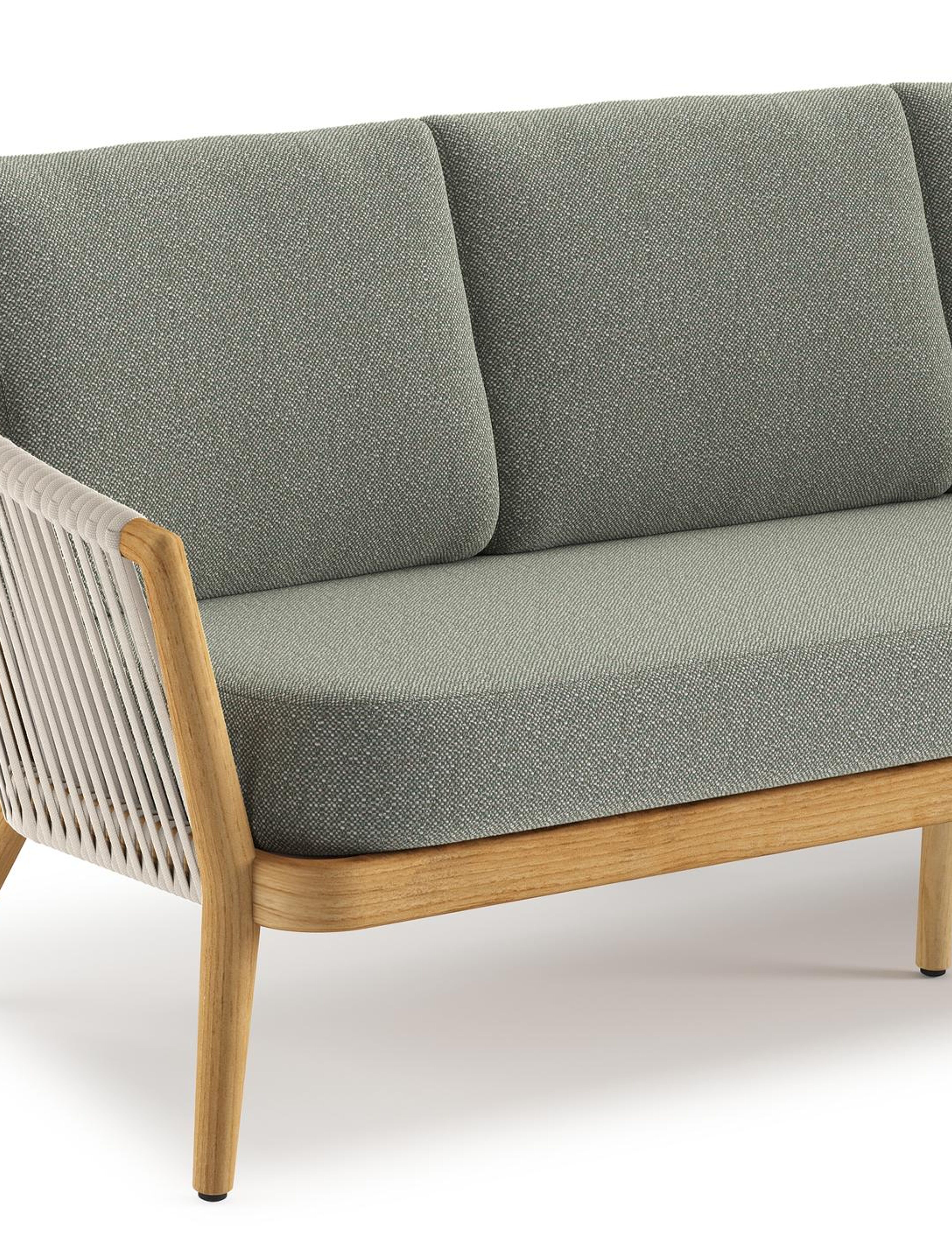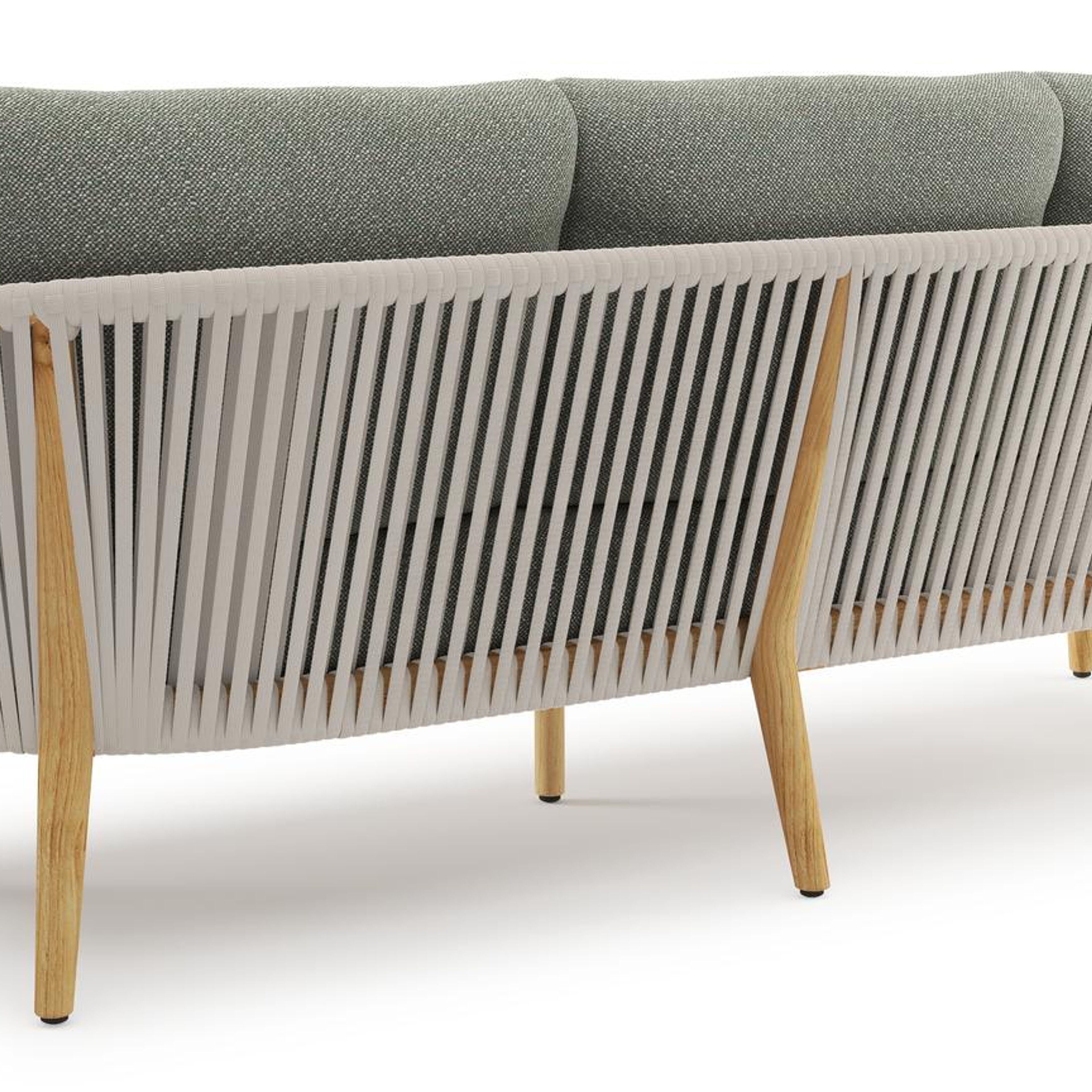 Orso loungebank in teak en beige verticaal geweven luxe vlakke rope met Savane Leaf all weather sunbrella® luxe kussen | Exterioo tuinmeubelen