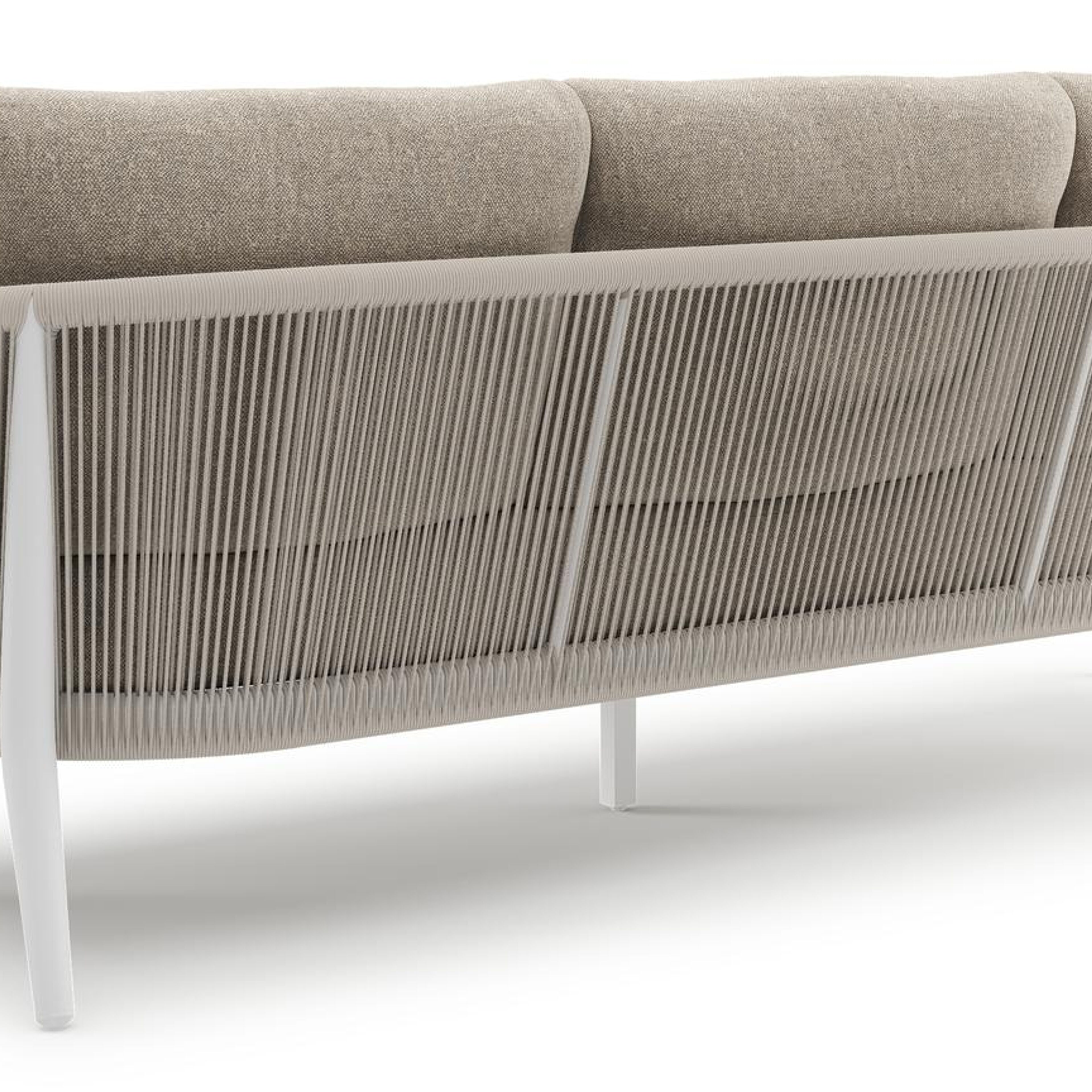 Orso loungebank in wit aluminium en beige verticaal geweven ronde rope met Chartres Pewter all weather sunbrella® luxe kussen | Exterioo tuinmeubelen