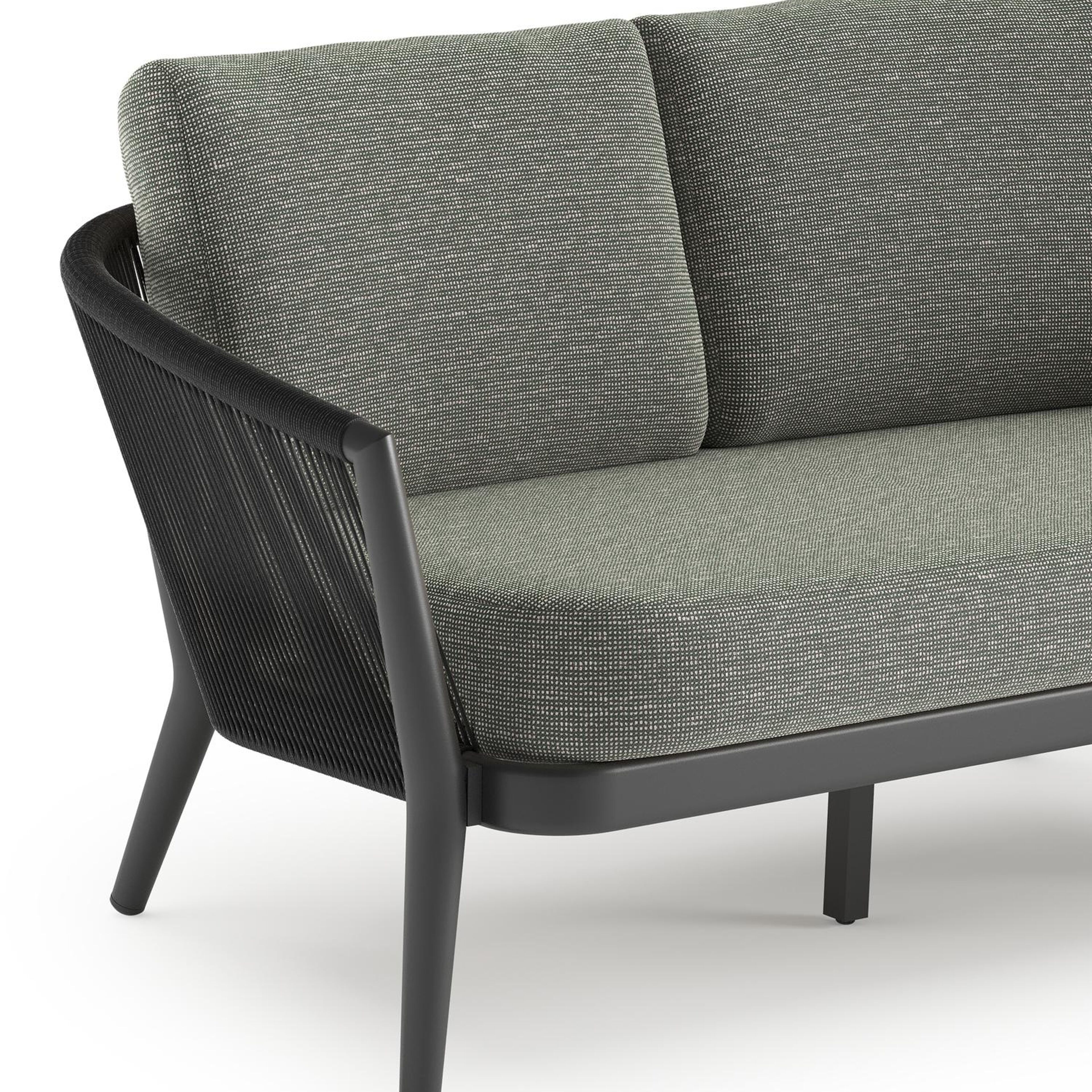 Orso loungebank in zwart aluminium en zwart verticaal geweven ronde rope met Slow Fern all weather sunbrella® luxe kussen | Exterioo tuinmeubelen