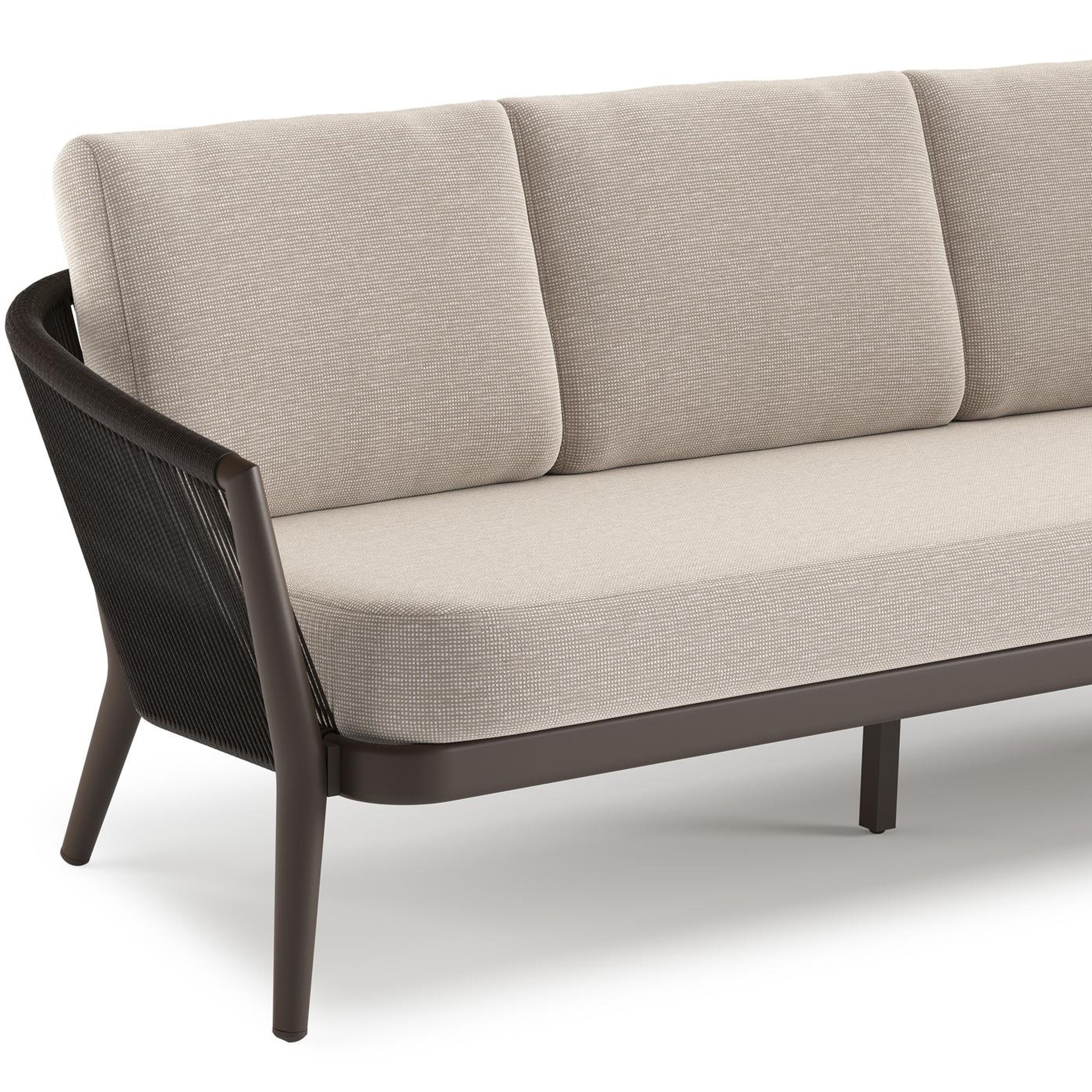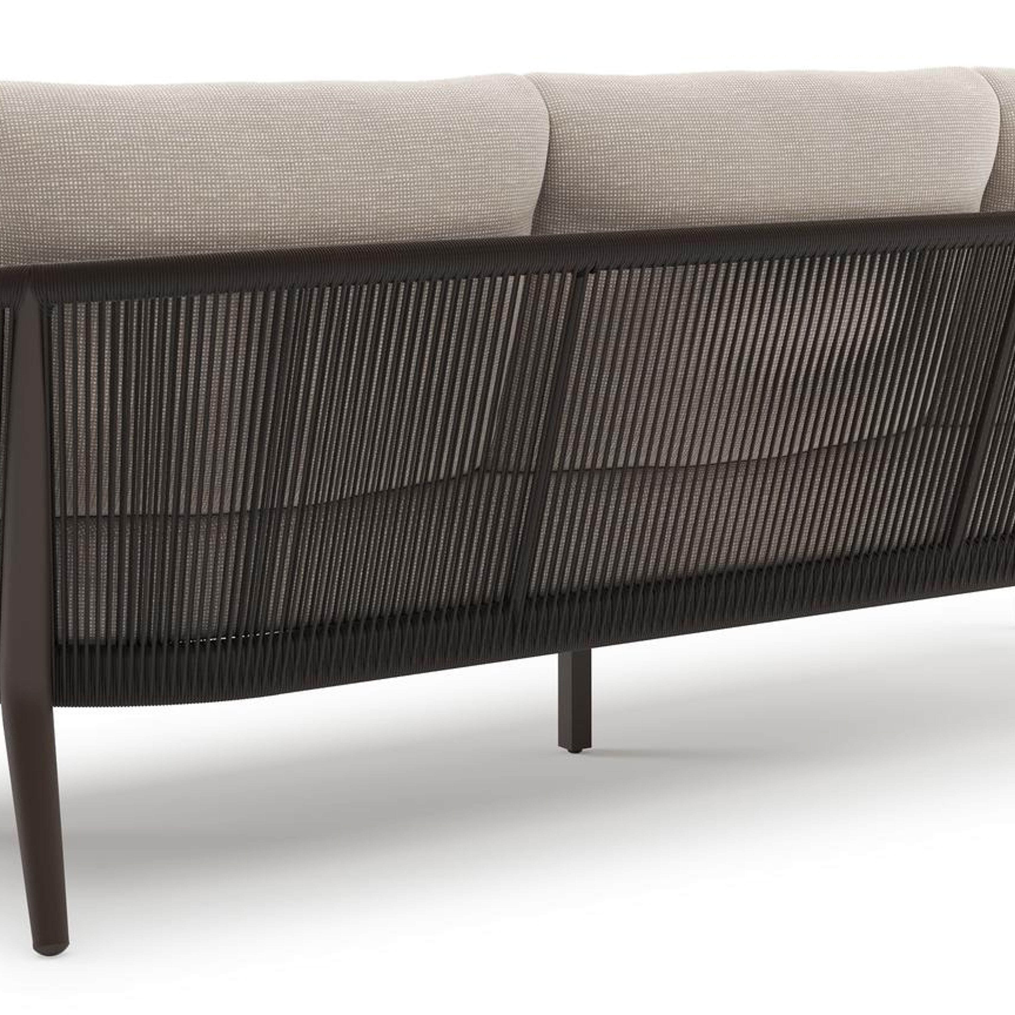 Orso loungeset in donkerbruin aluminium en donkerbruin verticaal geweven ronde rope met Slow Farafra all weather sunbrella® luxe kussen | Exterioo tuinmeubelen