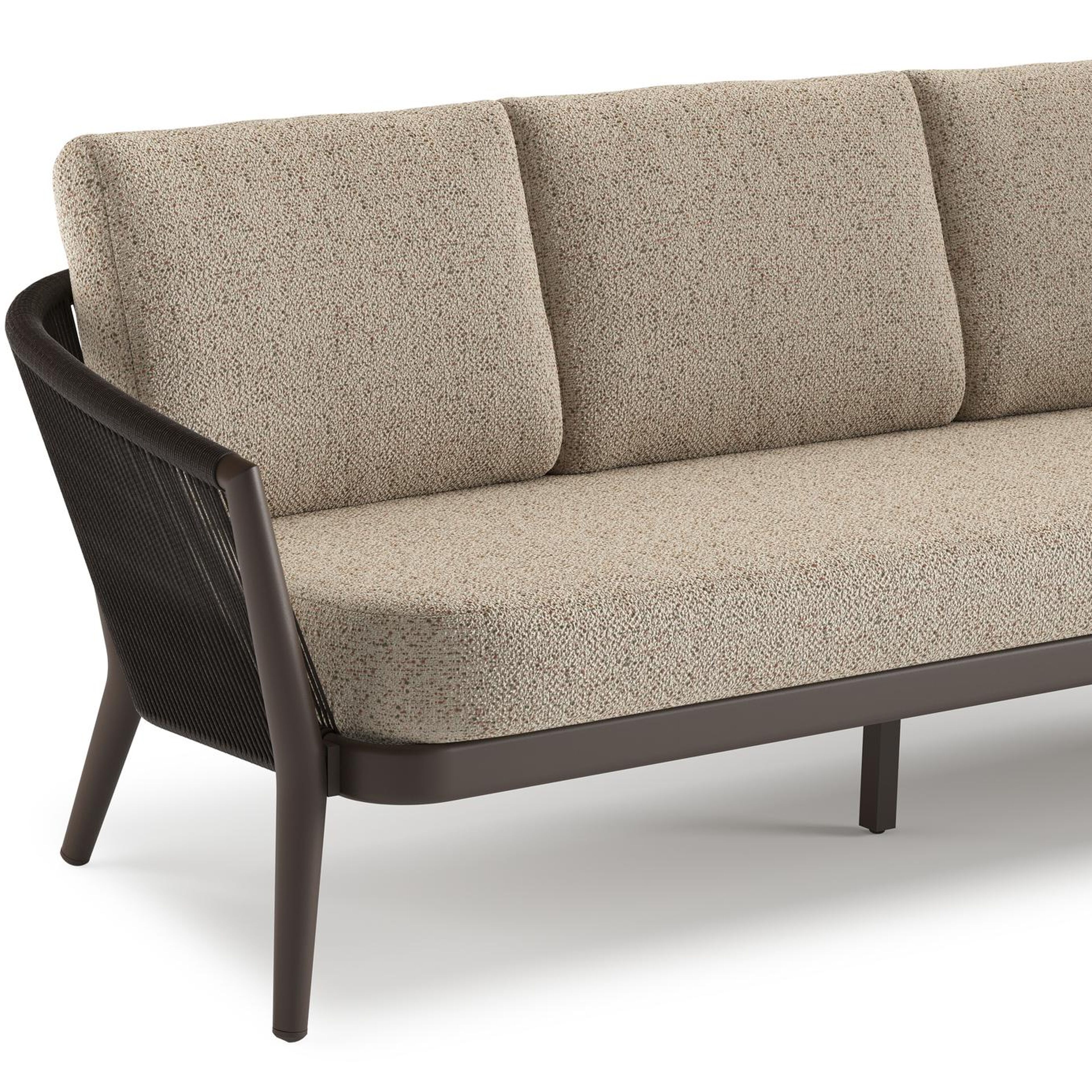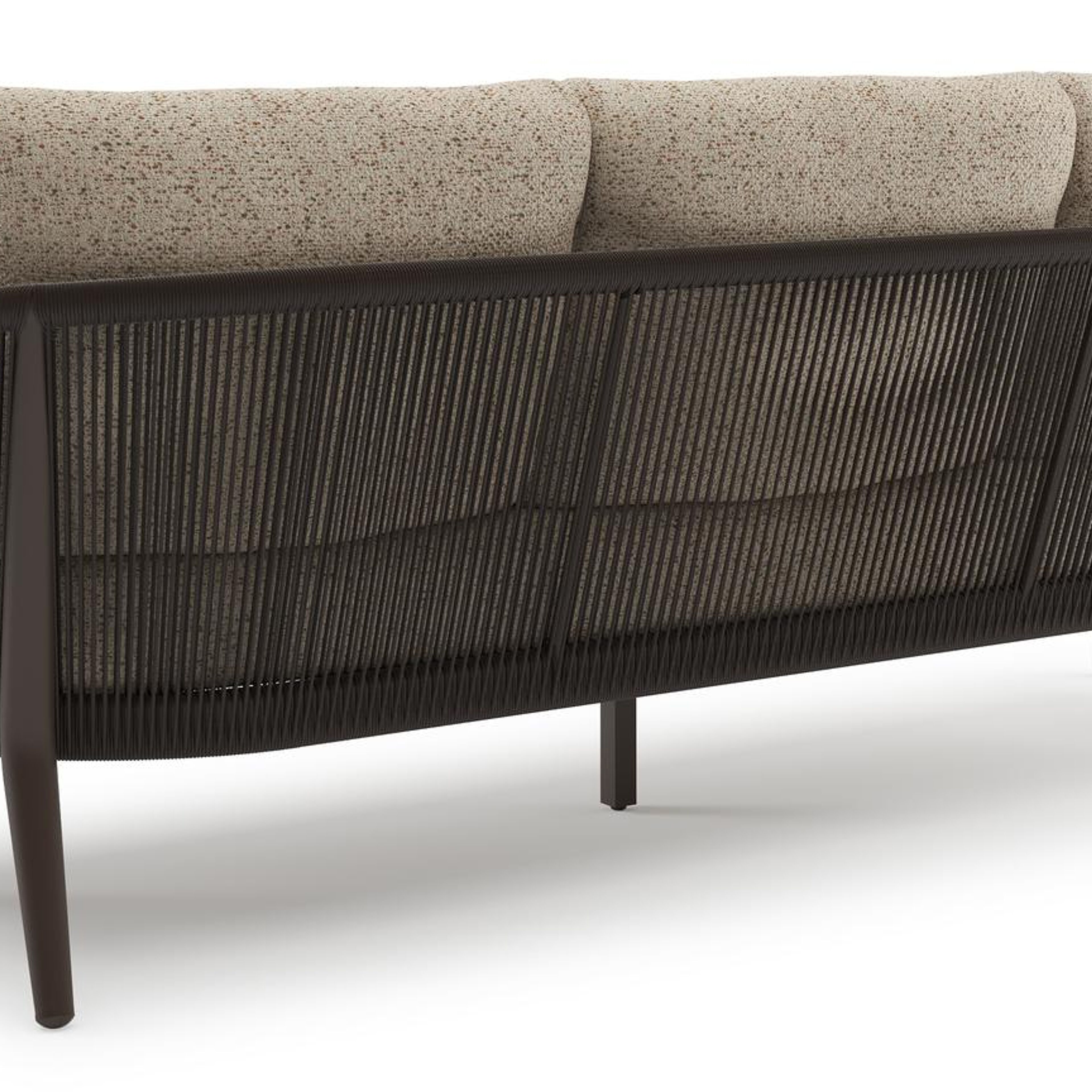 Orso loungeset in donkerbruin aluminium en donkerbruin verticaal geweven ronde rope met Bora Jungle all weather cosytica kussen | Exterioo tuinmeubelen