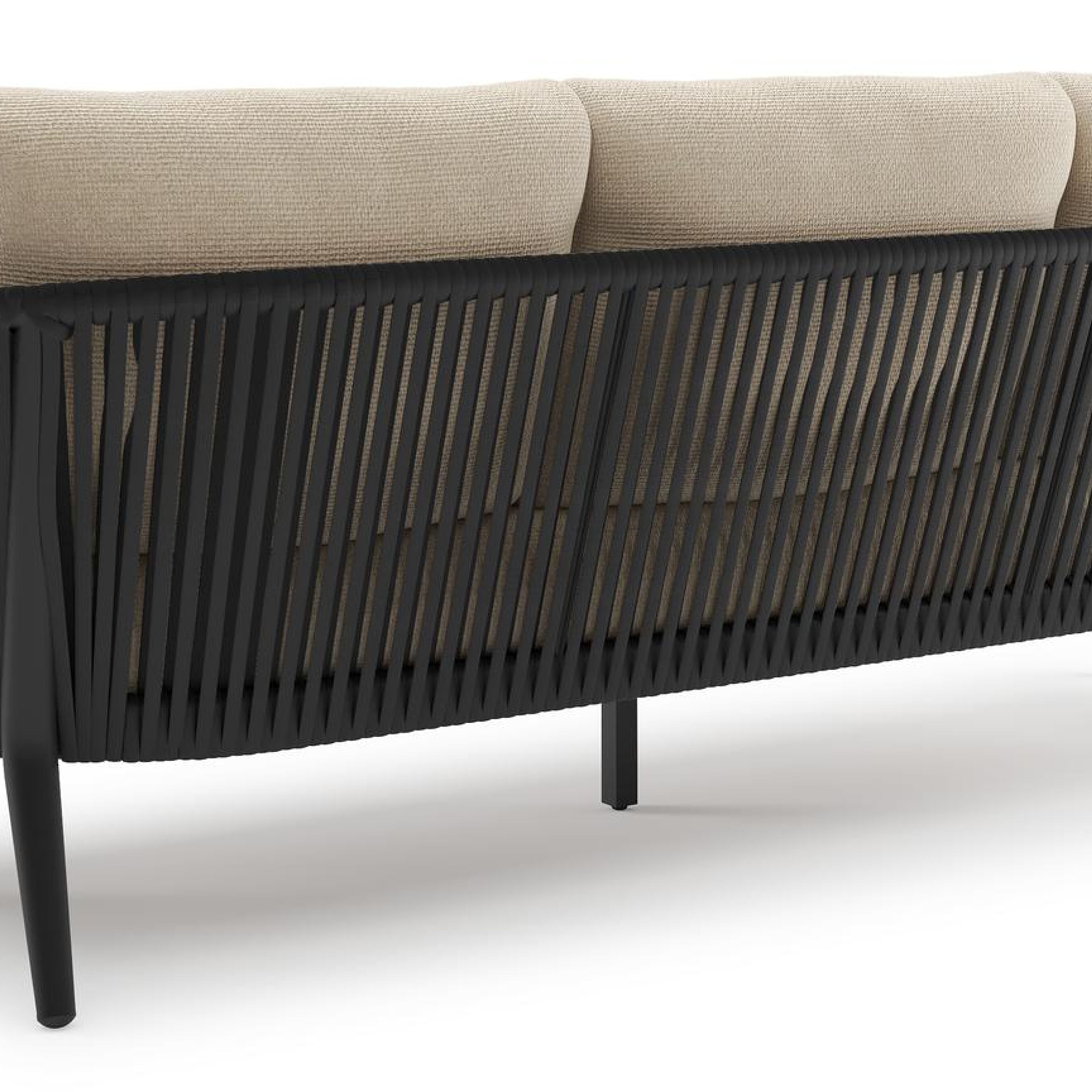 Orso loungeset in zwart aluminium en zwart verticaal geweven ronde rope met Althea Chalk all weather cosytica kussen | Exterioo tuinmeubelen