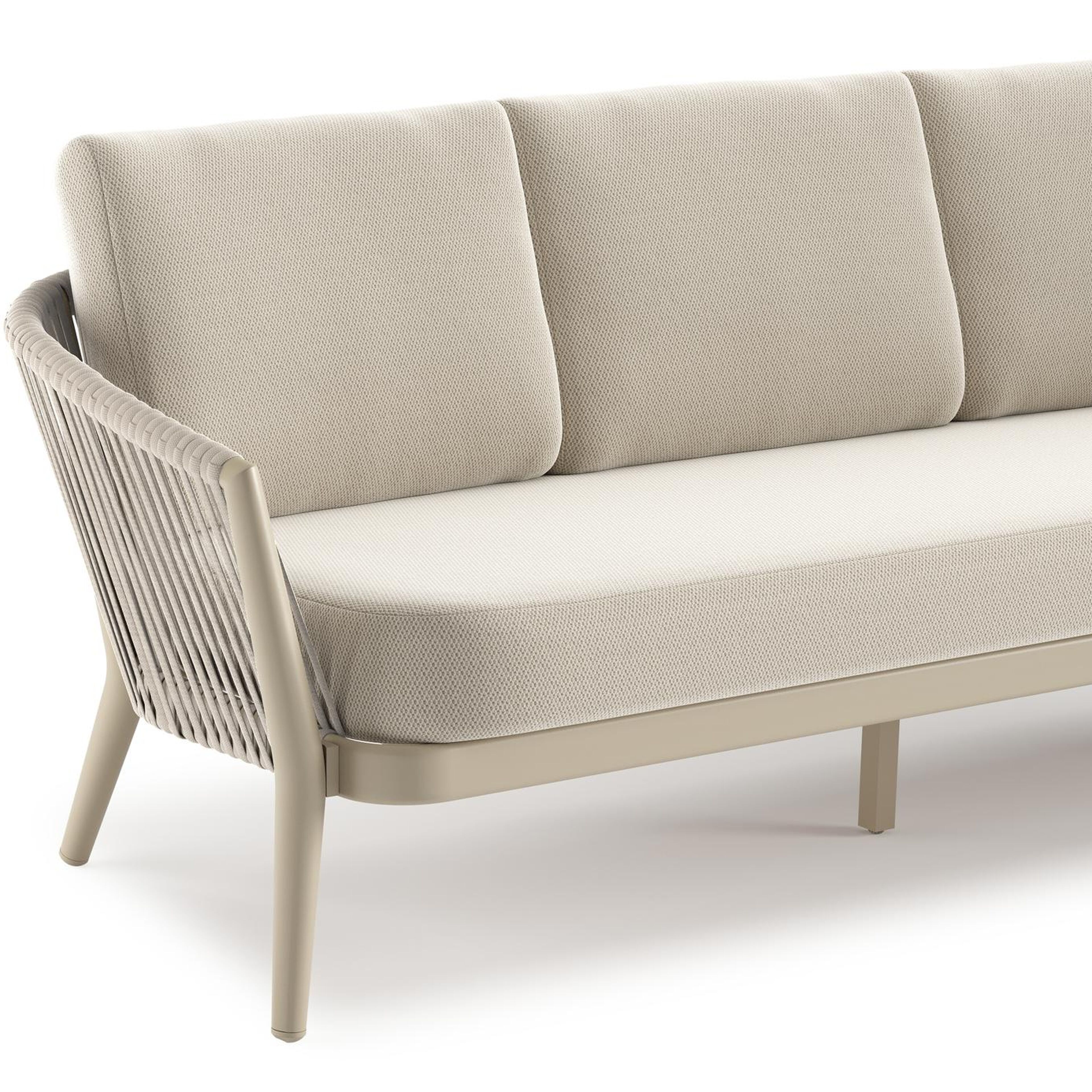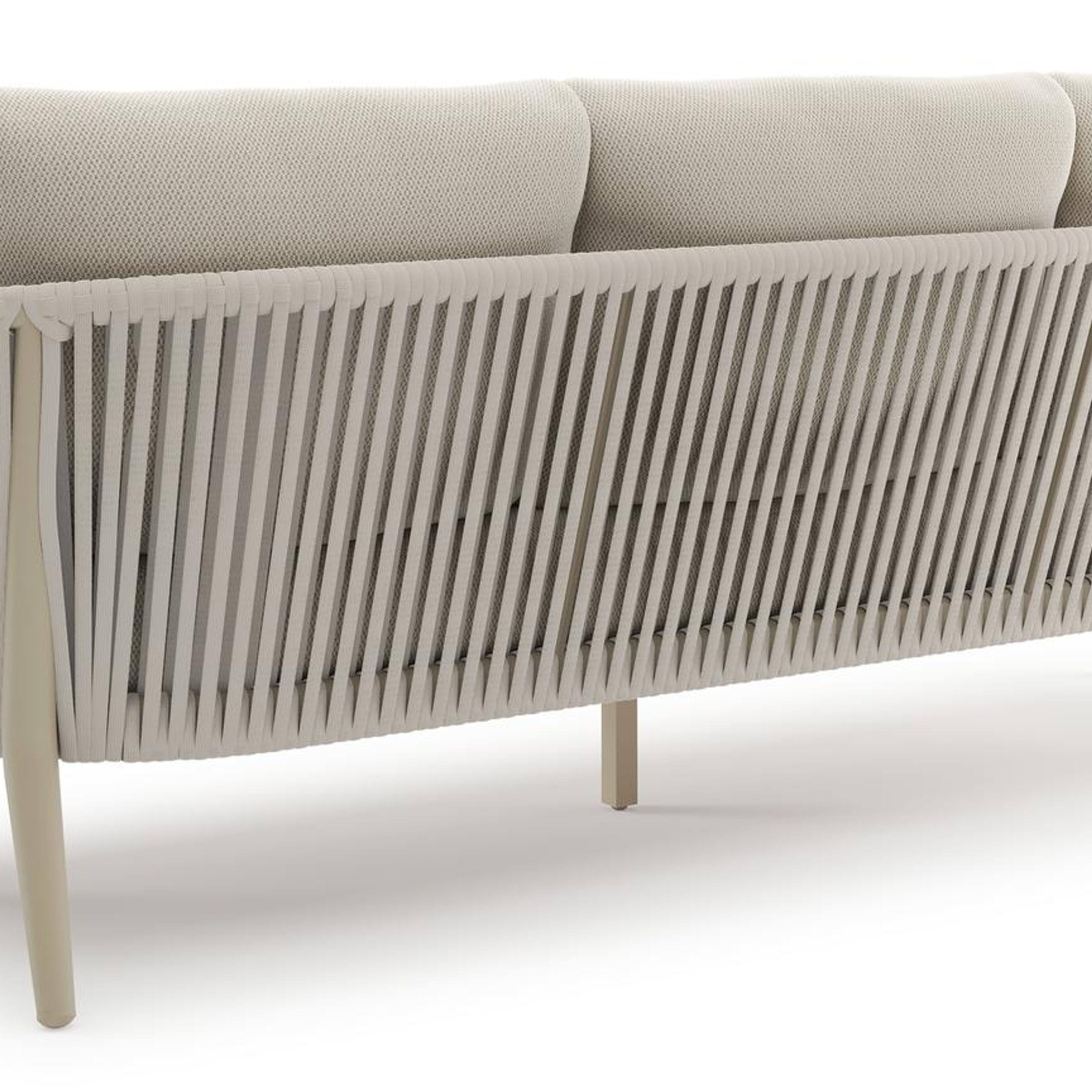 Orso loungeset in beige aluminium en beige verticaal geweven ronde rope met Lopi Marble all weather sunbrella® luxe kussen | Exterioo tuinmeubelen