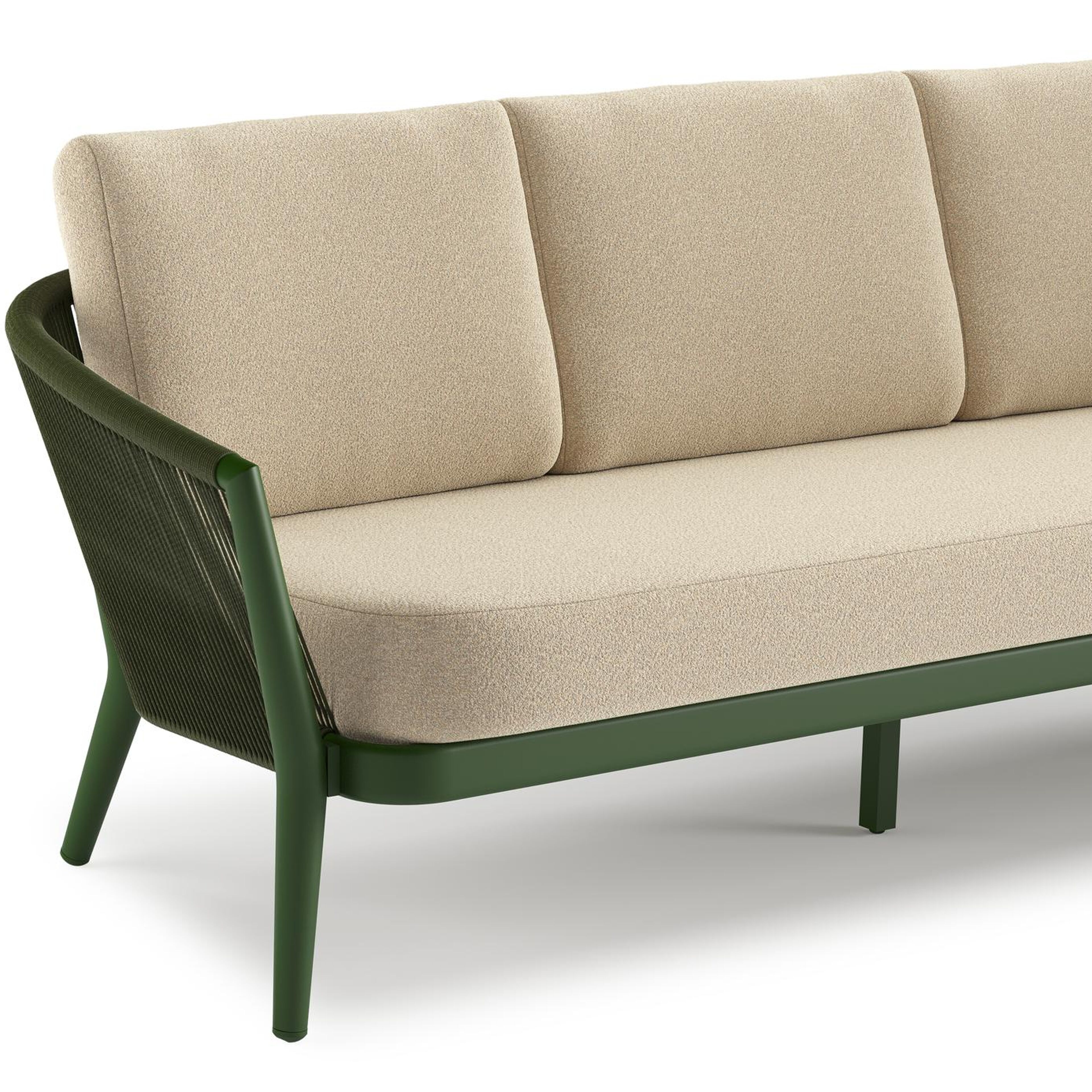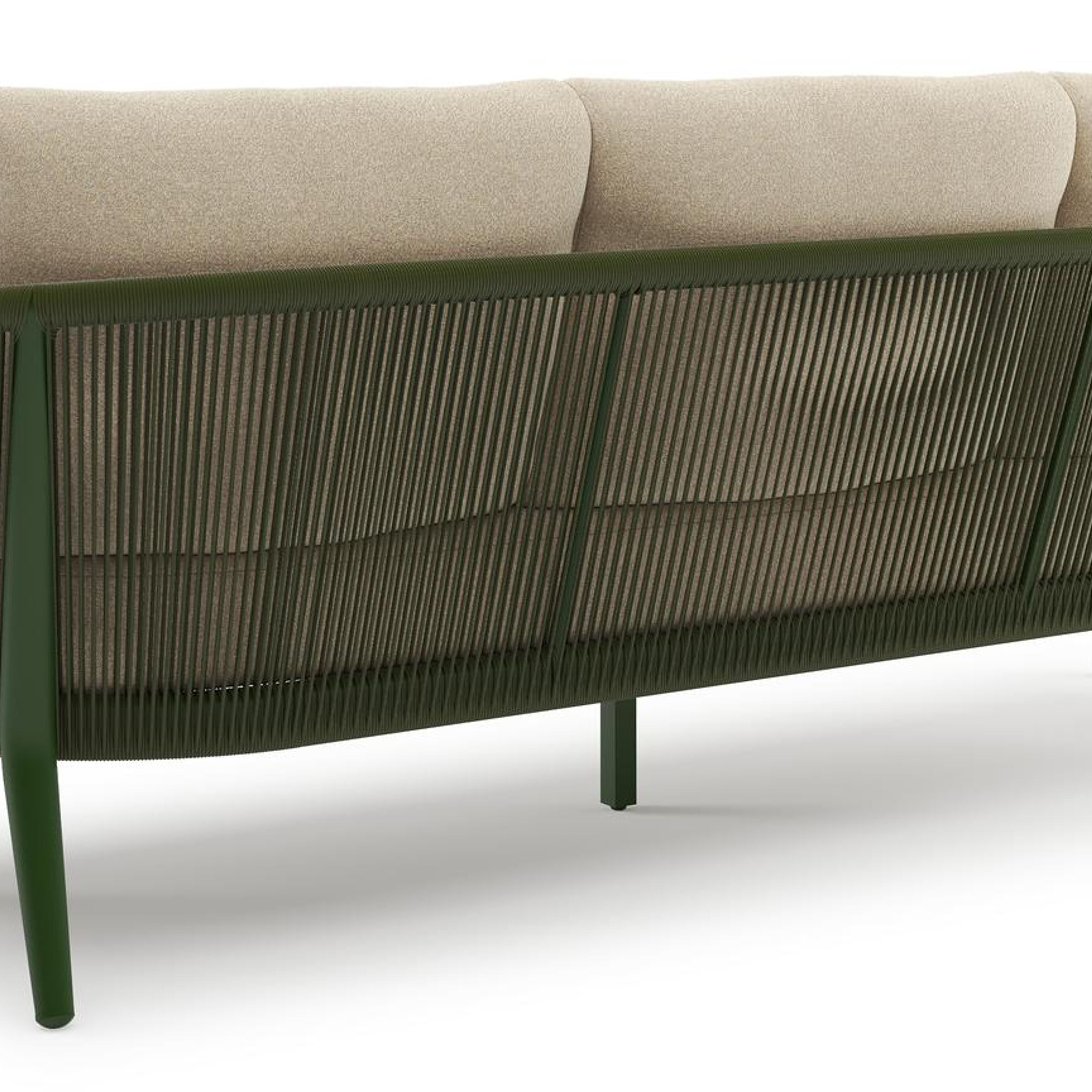 Orso loungeset in groen aluminium en groen verticaal geweven ronde rope met Soul Papyrus all weather solica kussen | Exterioo tuinmeubelen