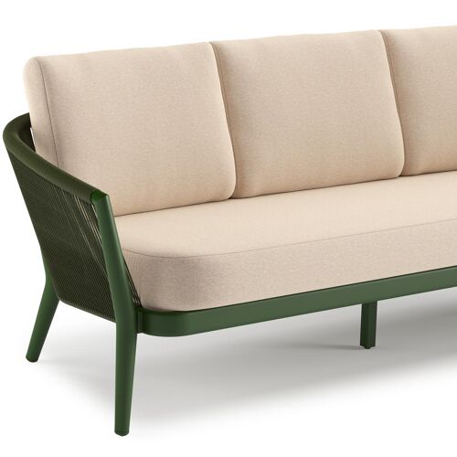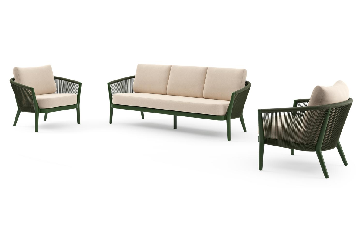 Orso loungeset in groen aluminium en groen verticaal geweven ronde rope met Heritage Papyrus all weather sunbrella® luxe kussen | Exterioo