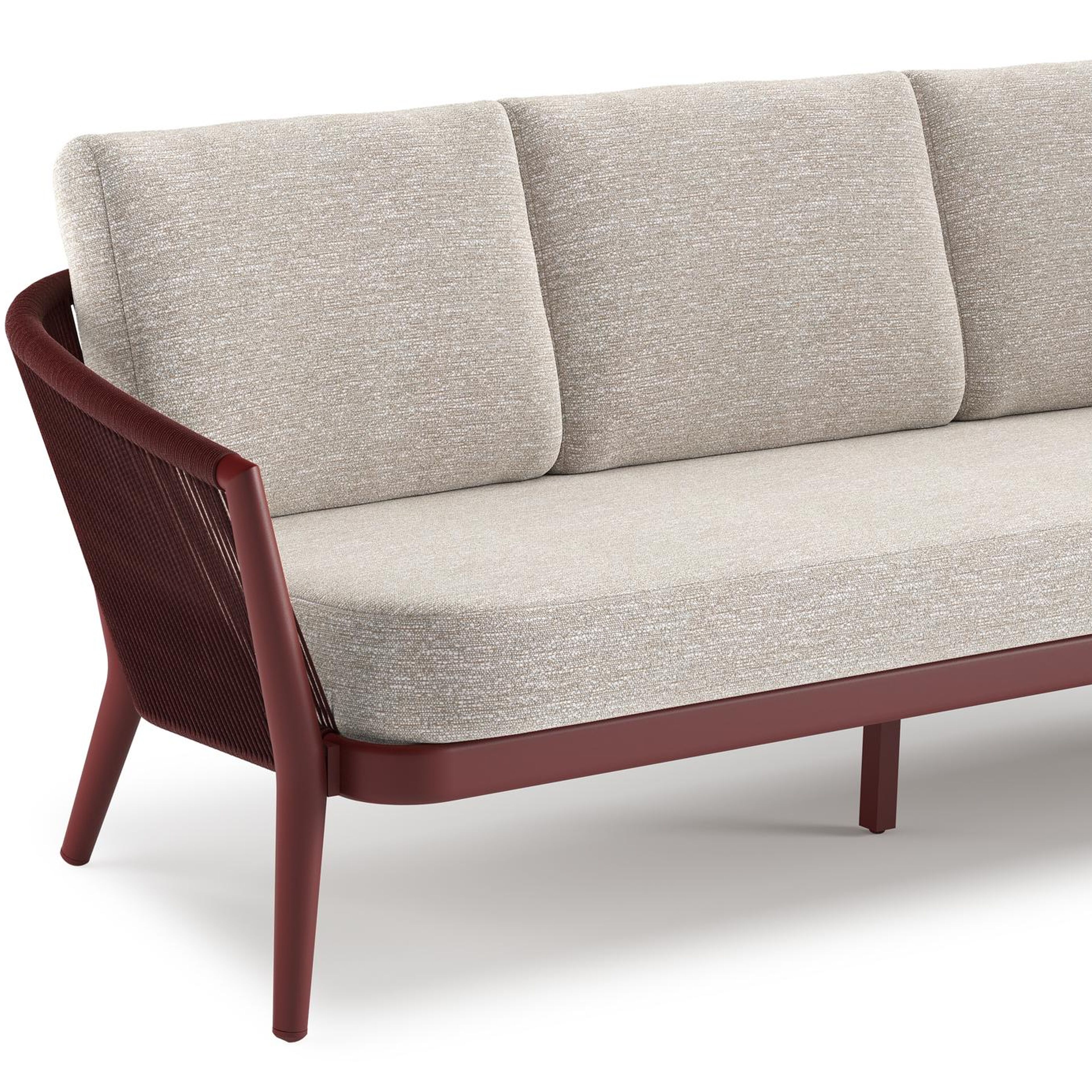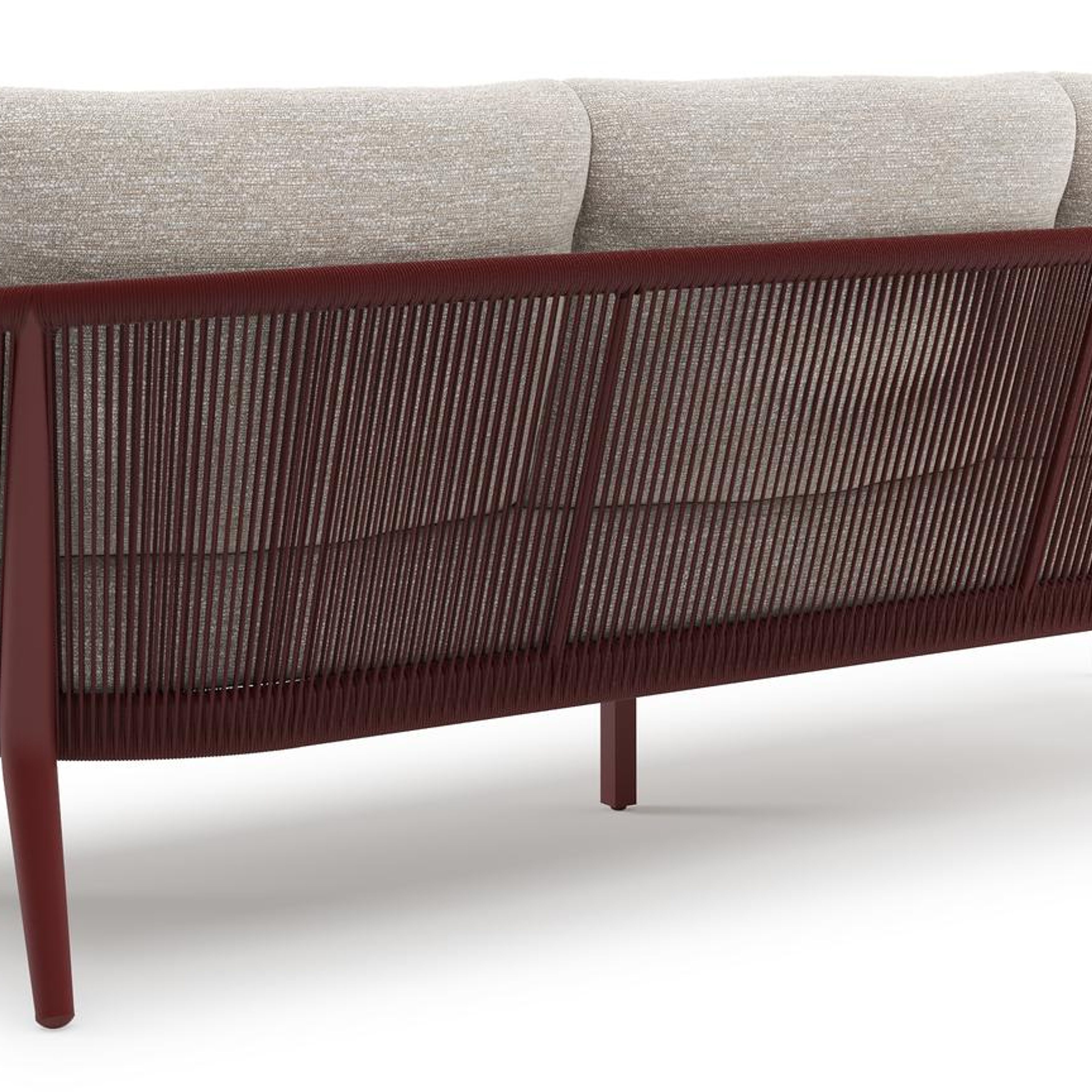 Orso loungeset in ruby aluminium en ruby verticaal geweven ronde rope met Tundra Sand all weather sunbrella® luxe kussen | Exterioo tuinmeubelen