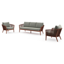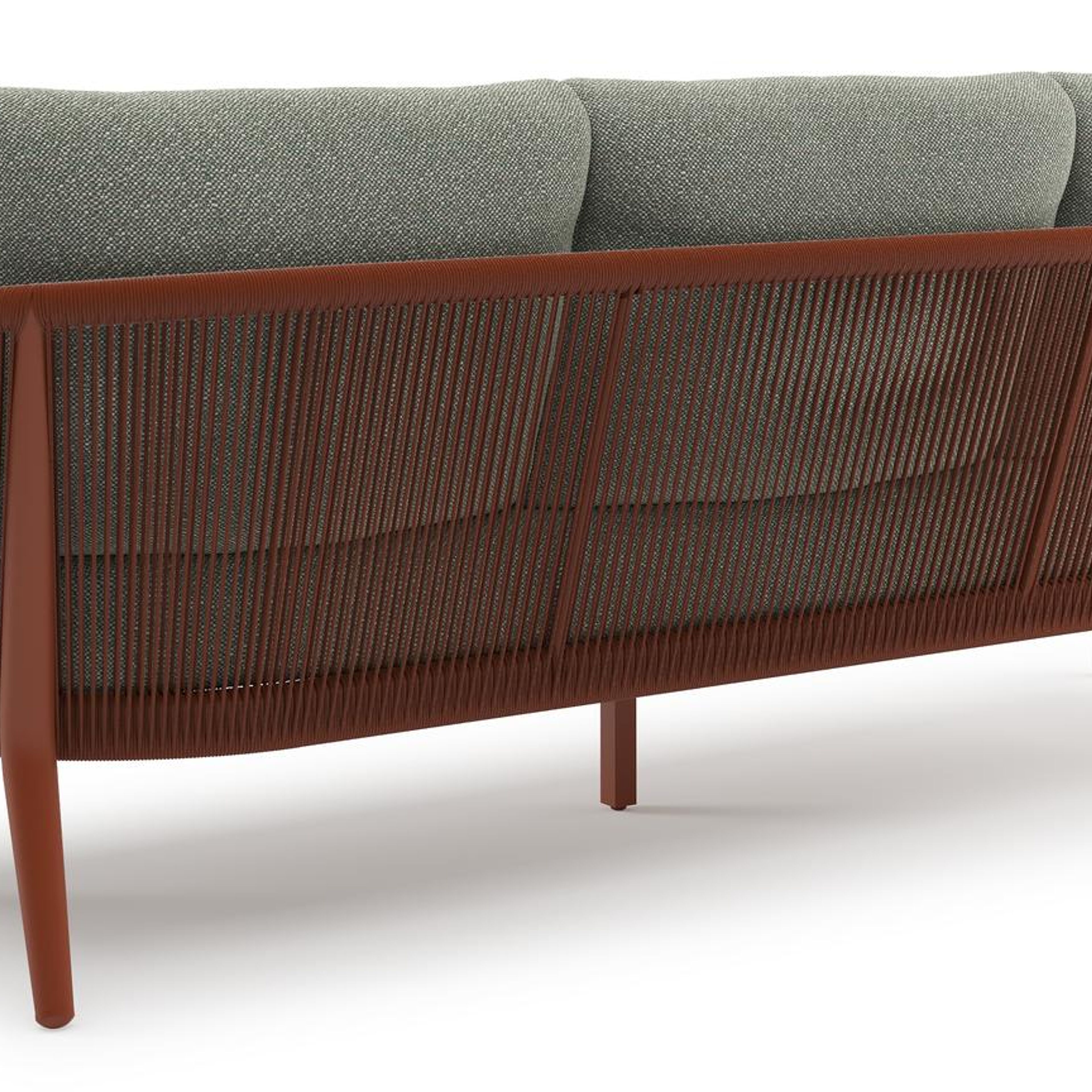Orso loungeset in roestbruin aluminium en roestbruin verticaal geweven ronde rope met Savane Leaf all weather sunbrella® luxe kussen | Exterioo tuinmeubelen