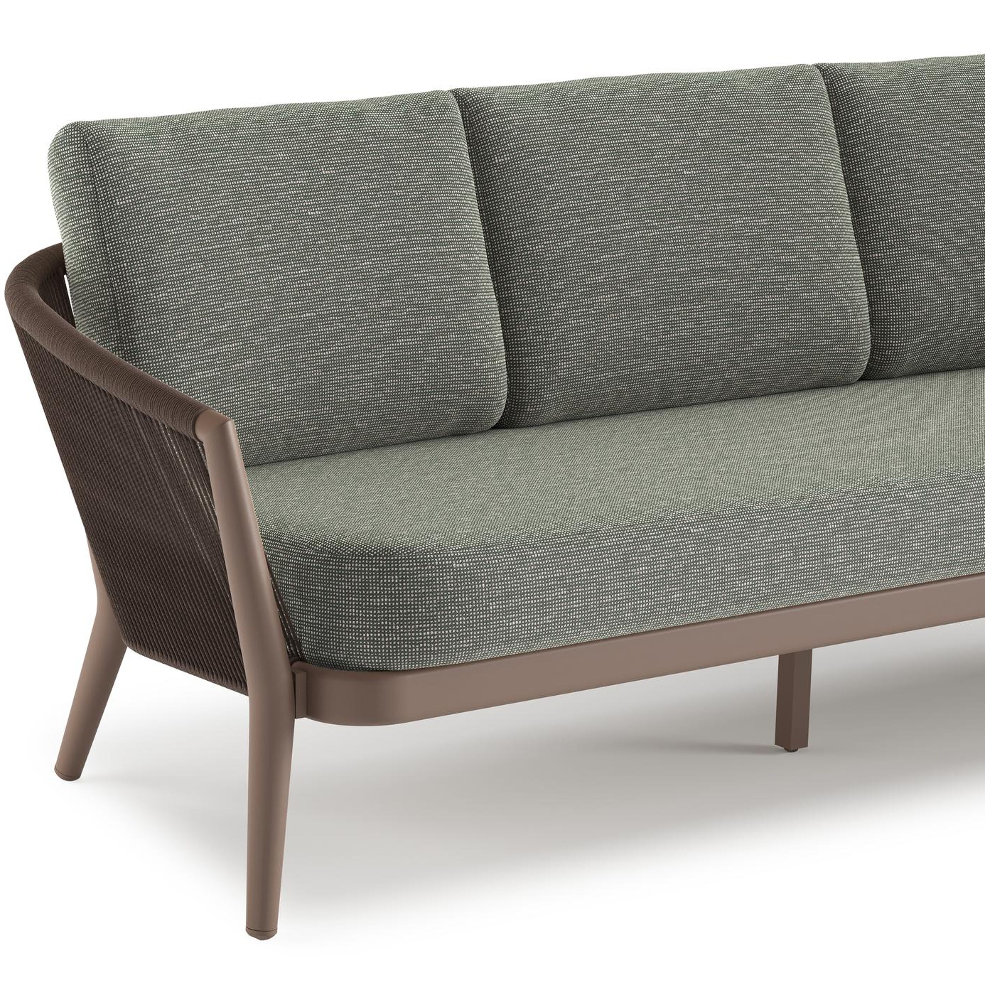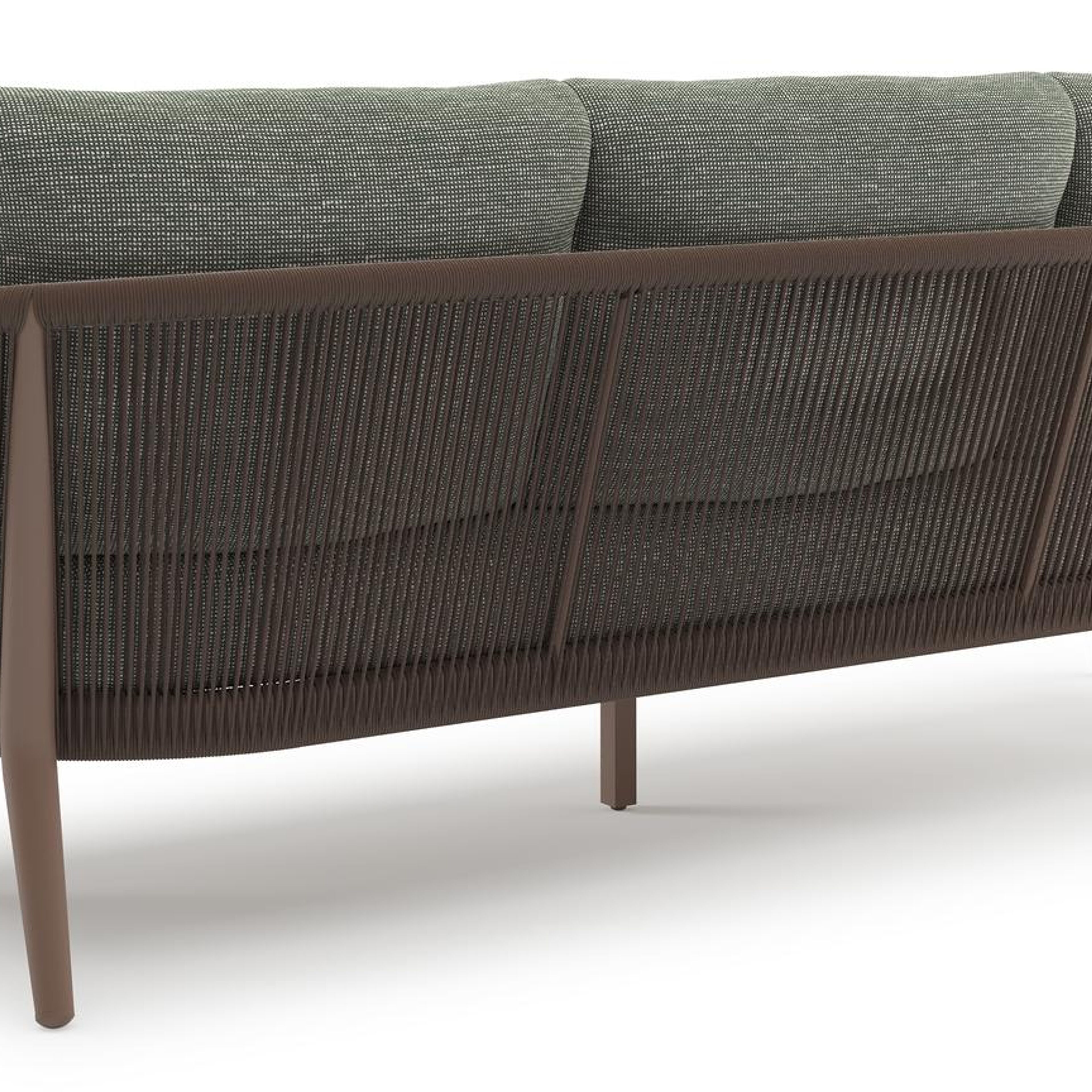 Orso loungeset in taupe aluminiumen zwart verticaal geweven ronde rope met Slow Fern all weather sunbrella® luxe kussen | Exterioo tuinmeubelen
