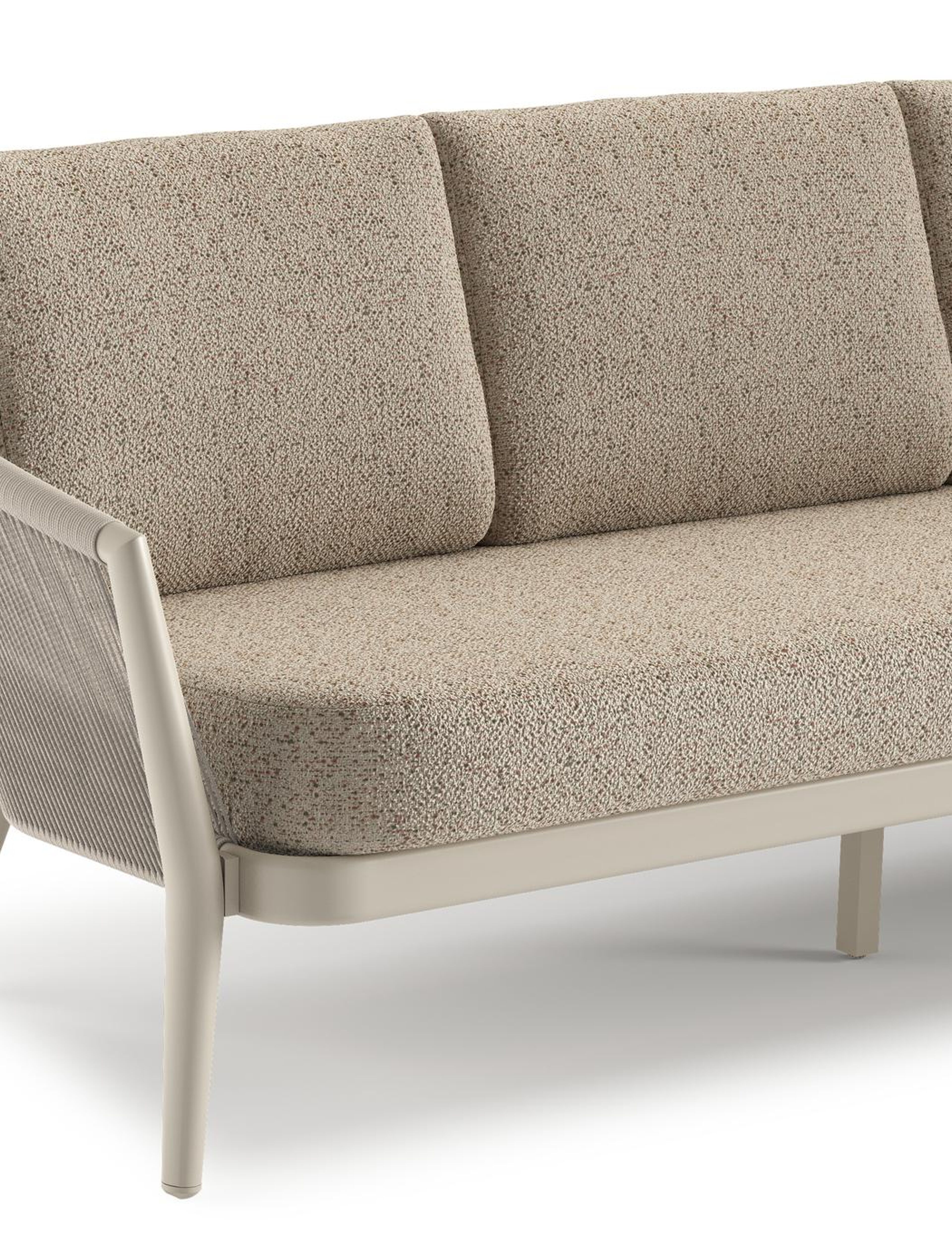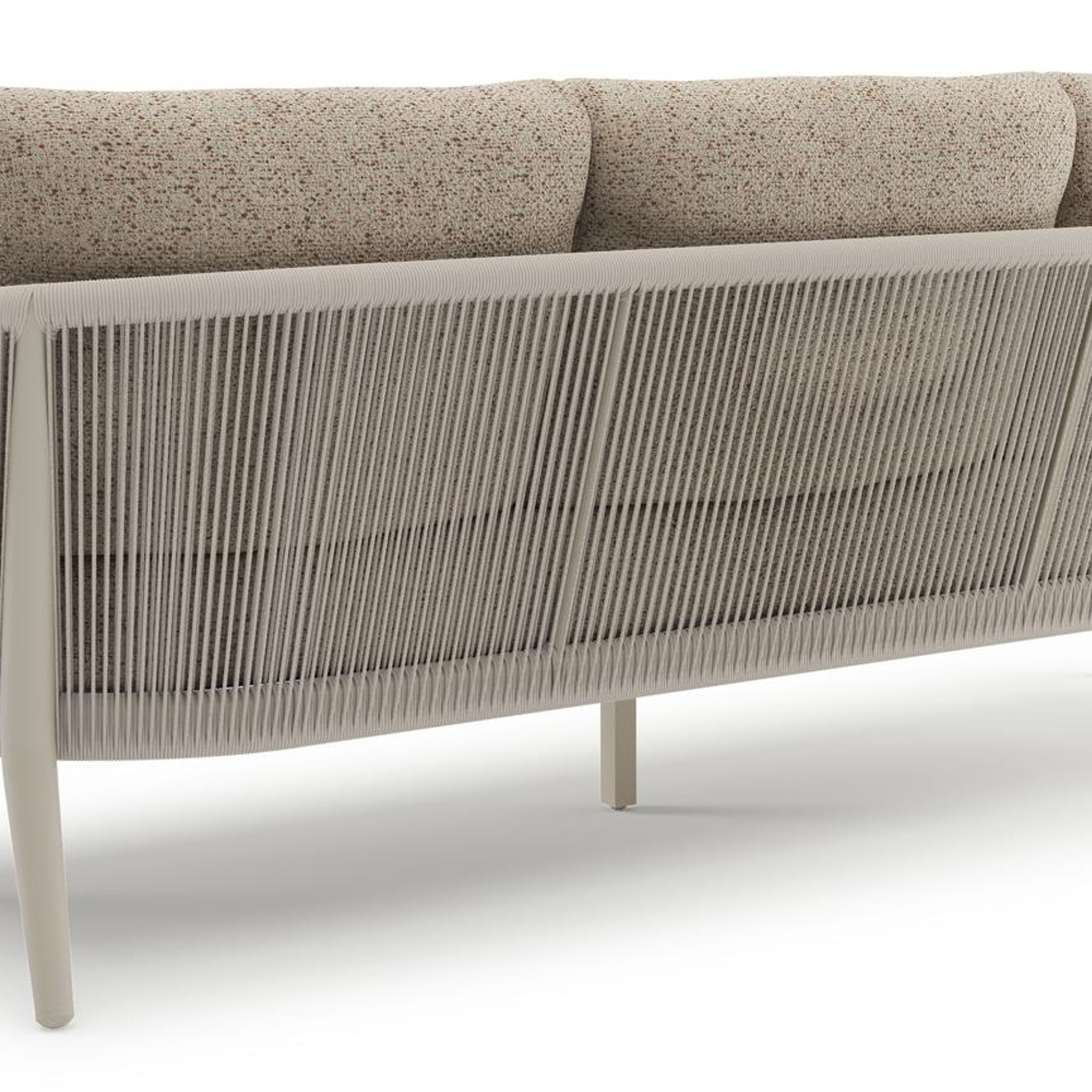 Orso loungeset in beige aluminium en beige verticaal geweven ronde rope met Bora Jungle all weather cosytica kussen | Exterioo tuinmeubelen