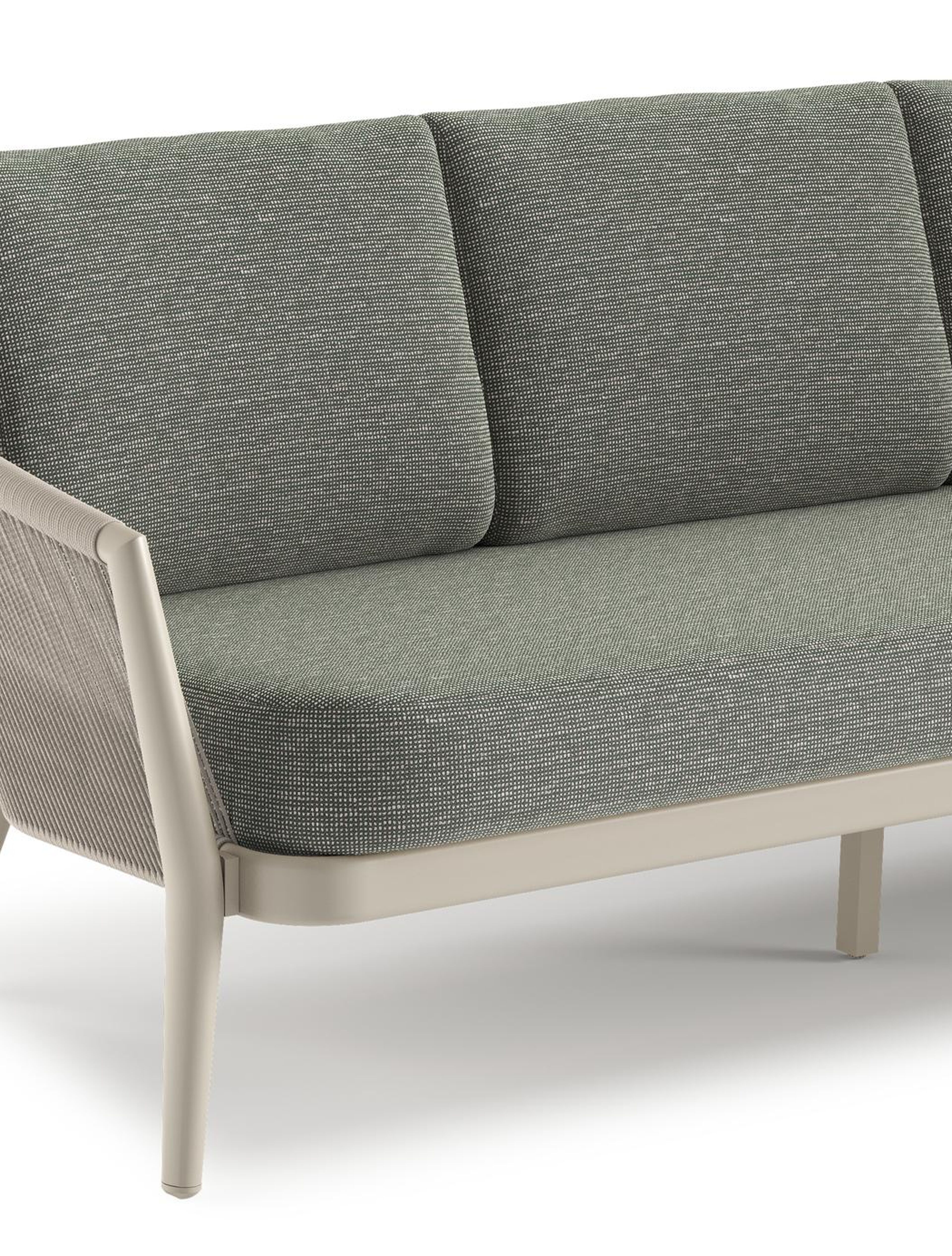 Orso loungeset in beige aluminium en beige verticaal geweven ronde rope met Slow Fern all weather sunbrella® luxe kussen | Exterioo tuinmeubelen