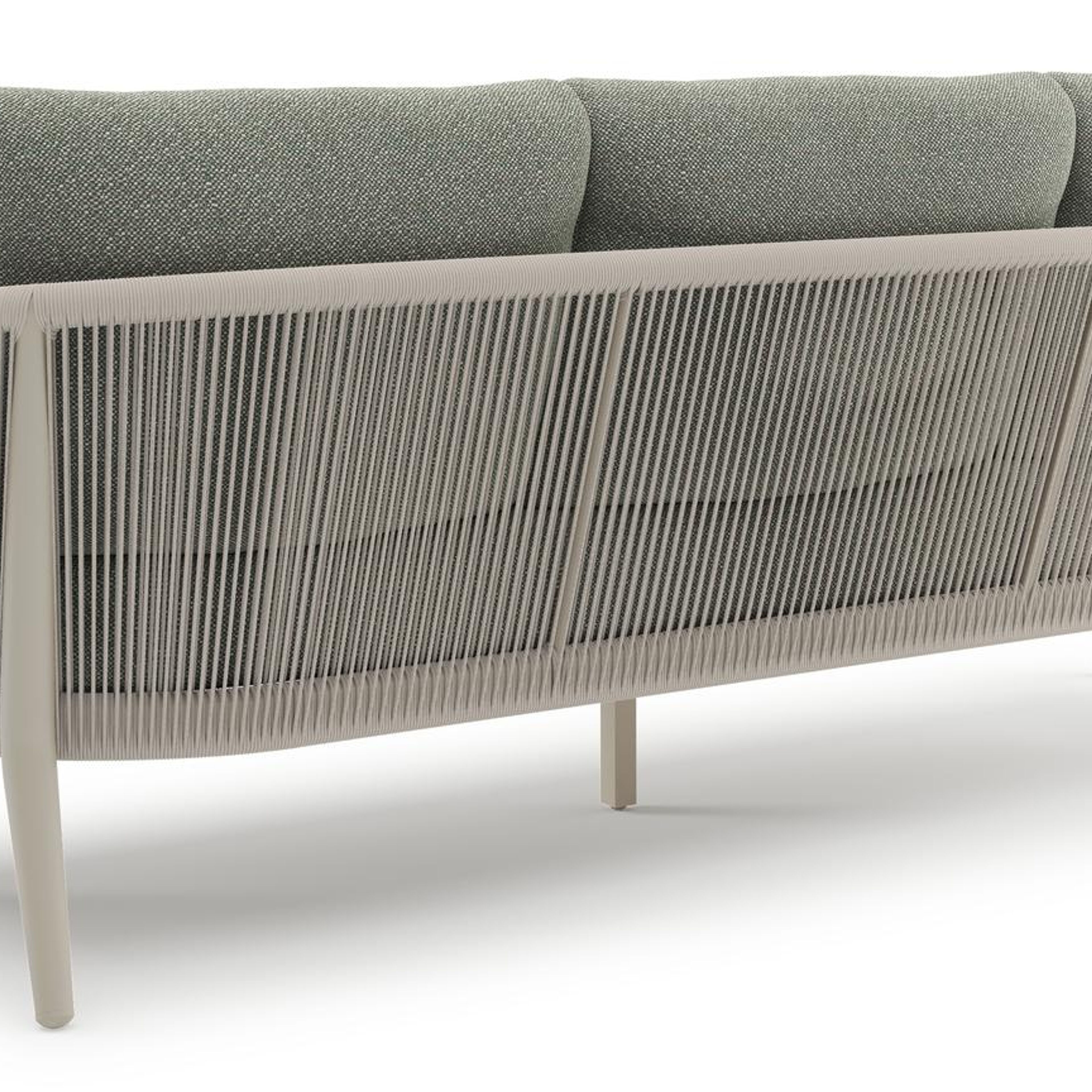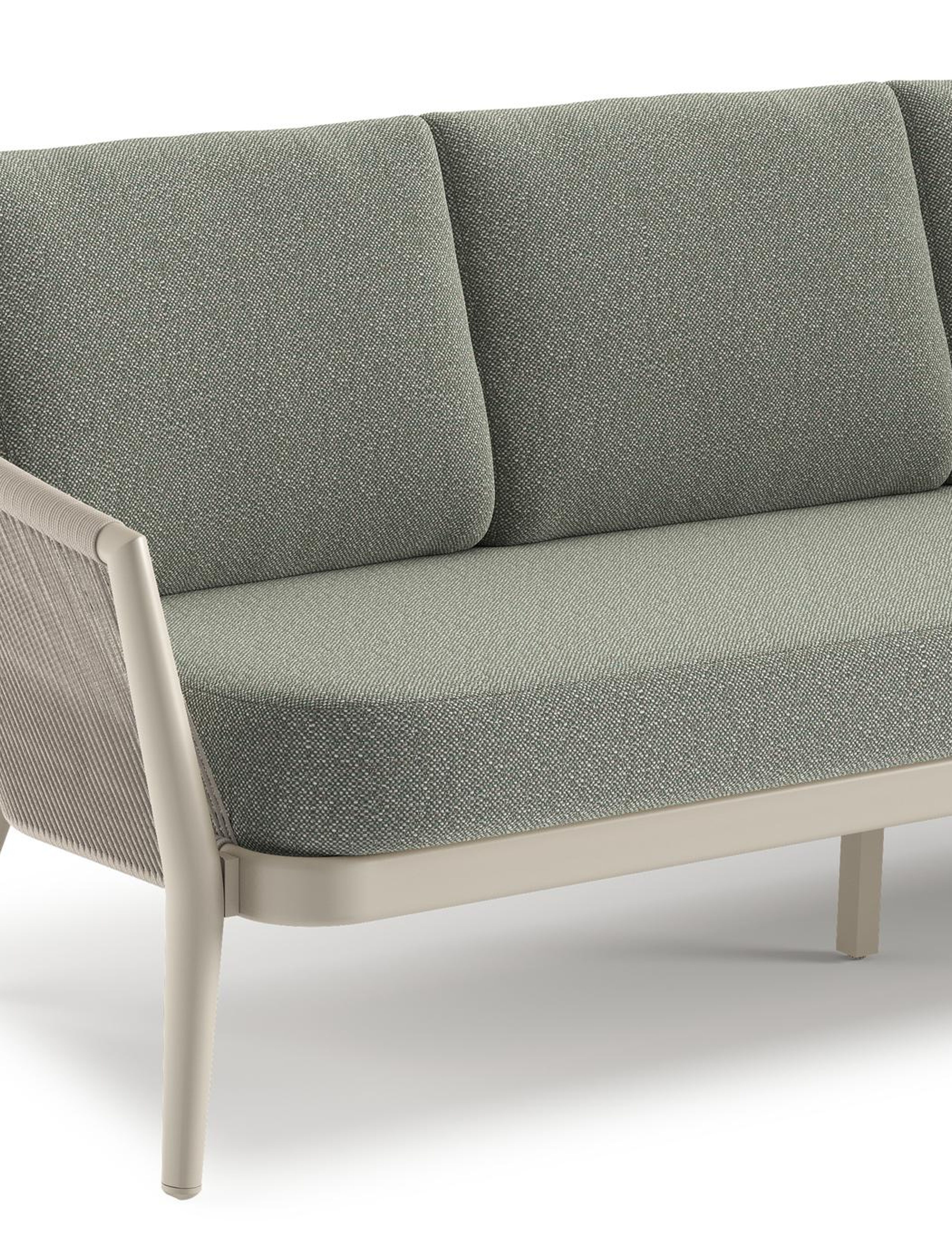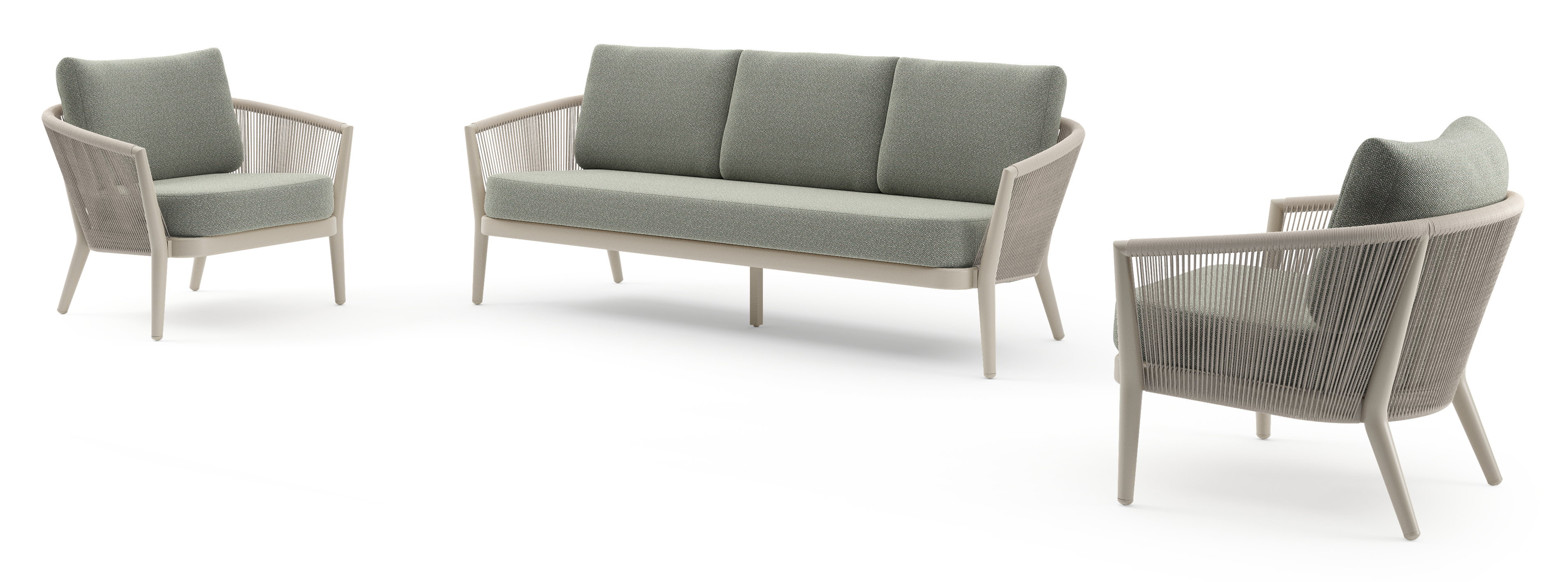 Orso loungeset in beige aluminium en beige verticaal geweven ronde rope met Savane Leaf all weather sunbrella® luxe kussen | Exterioo tuinmeubelen