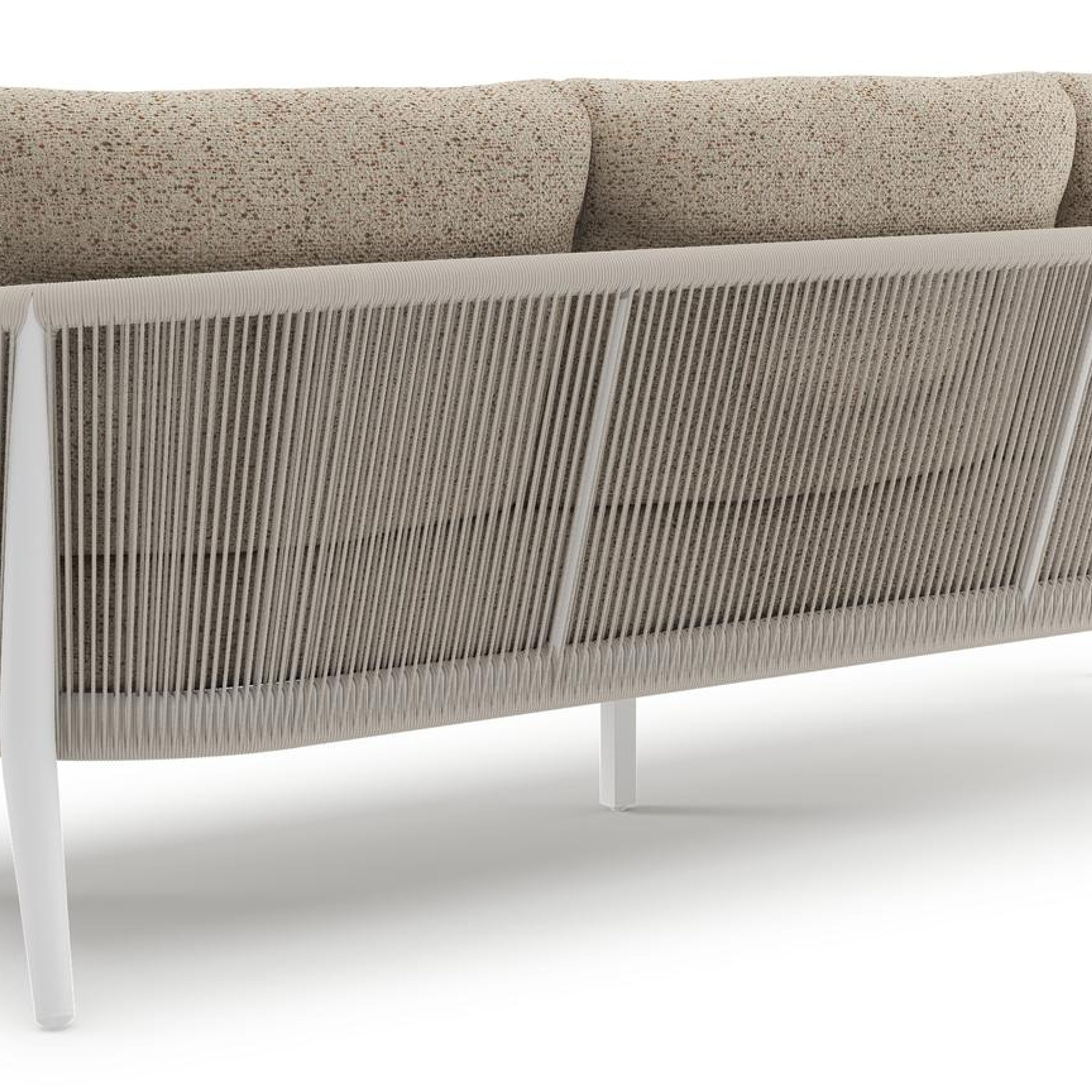 Orso loungeset in wit aluminium en beige verticaal geweven ronde rope met Bora Jungle all weather cosytica kussen | Exterioo tuinmeubelen