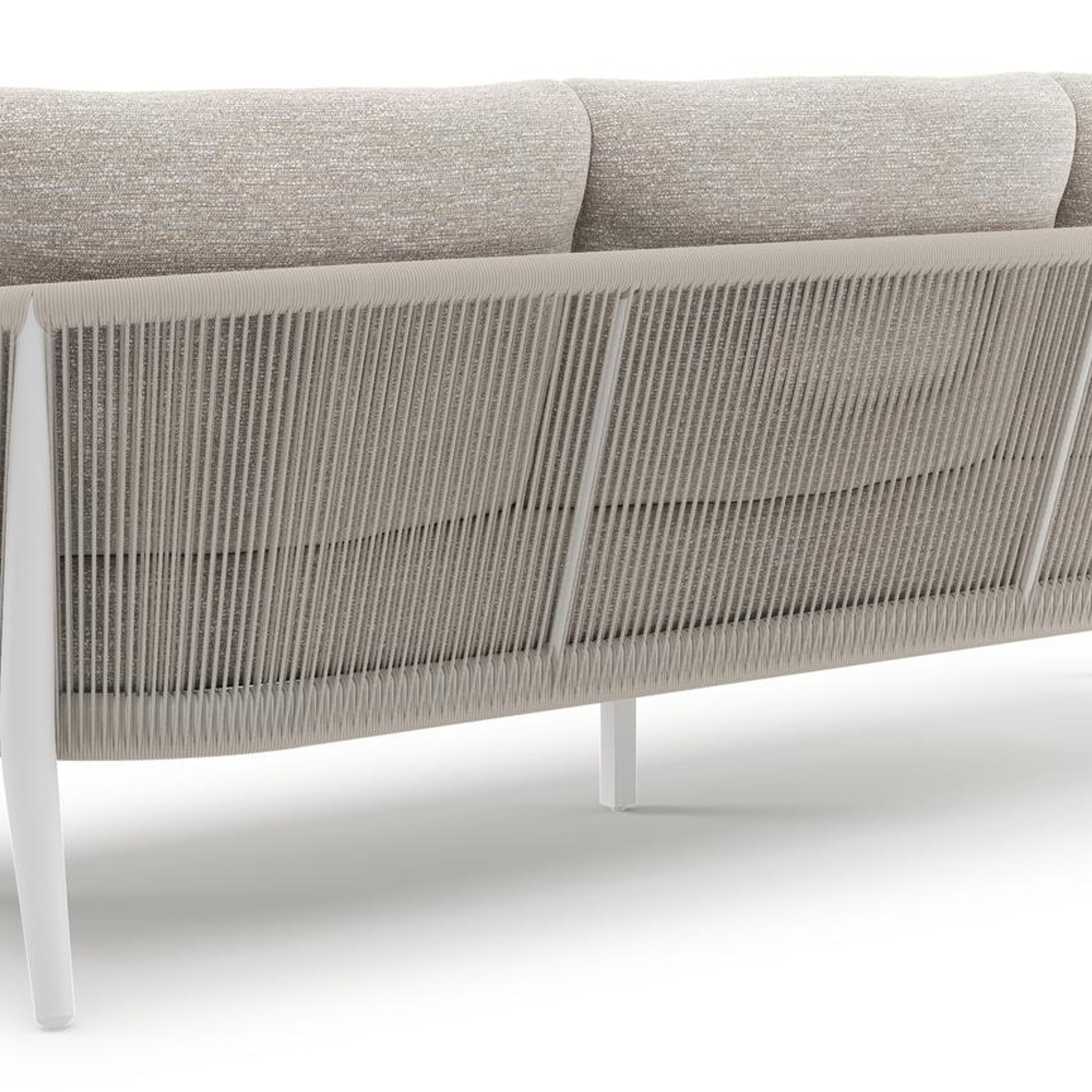 Orso loungeset in wit aluminium en beige verticaal geweven ronde rope met Tundra Sand all weather sunbrella® luxe kussen | Exterioo tuinmeubelen