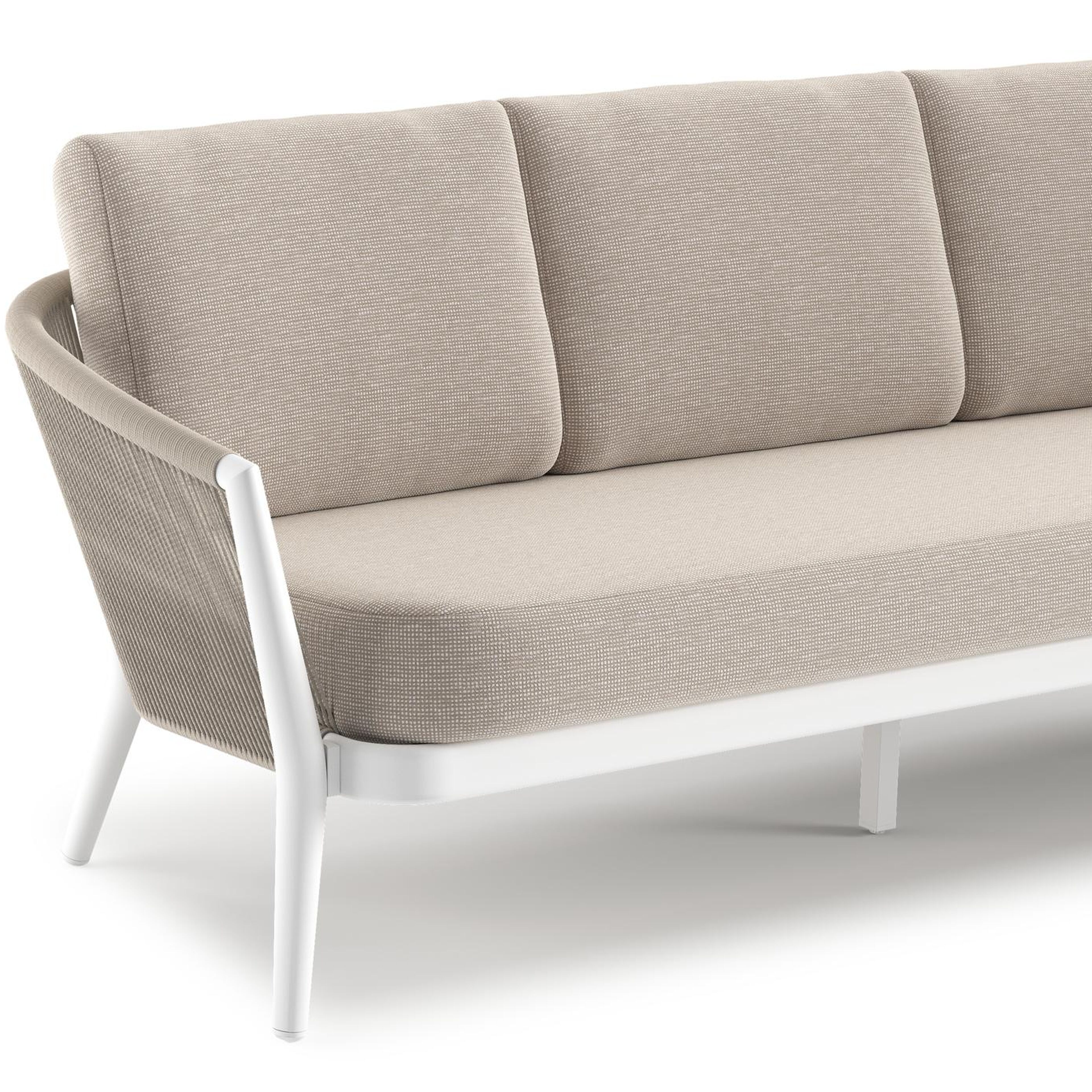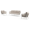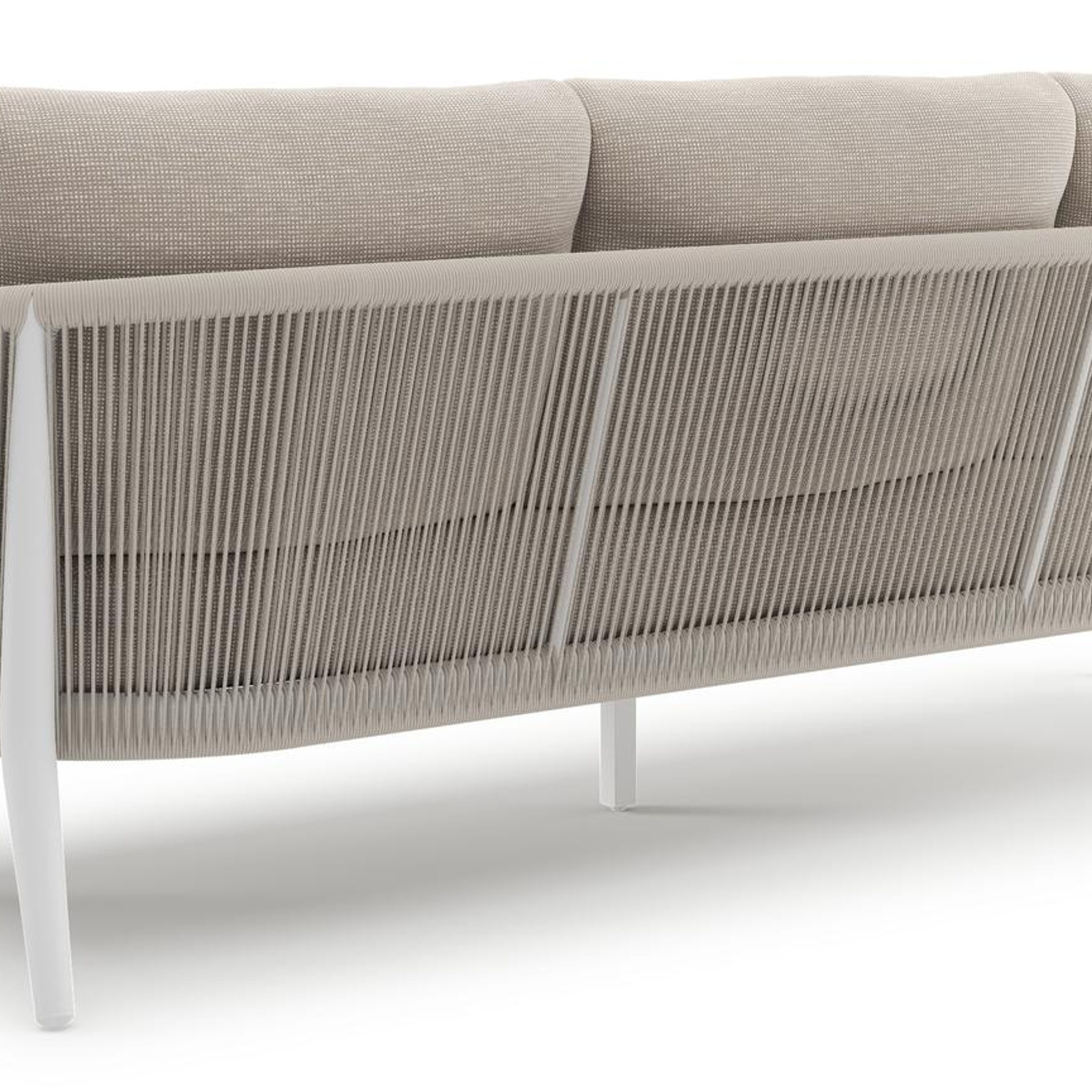 Orso loungeset in wit aluminium en beige verticaal geweven ronde rope met Slow Farafra all weather sunbrella® luxe kussen | Exterioo tuinmeubelen