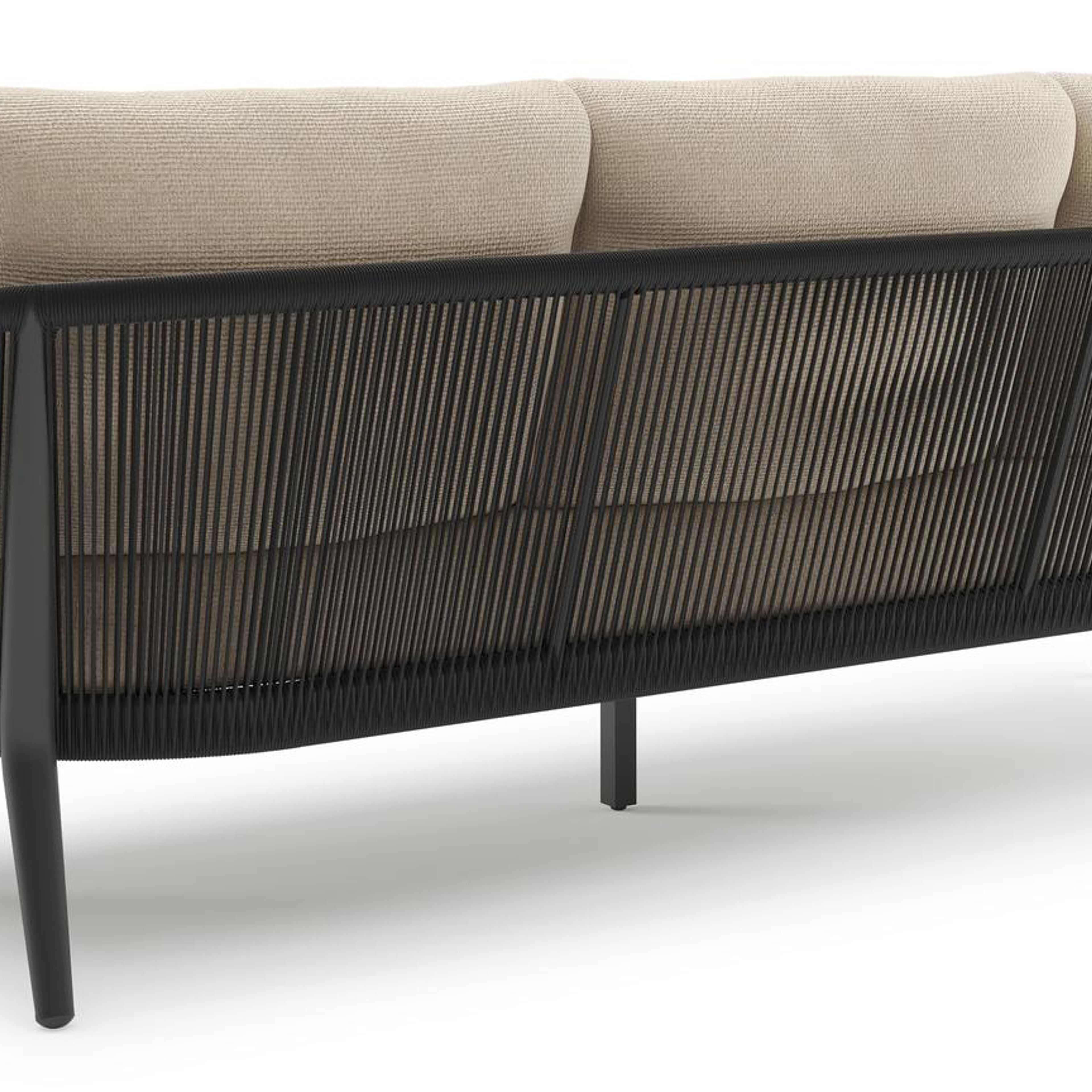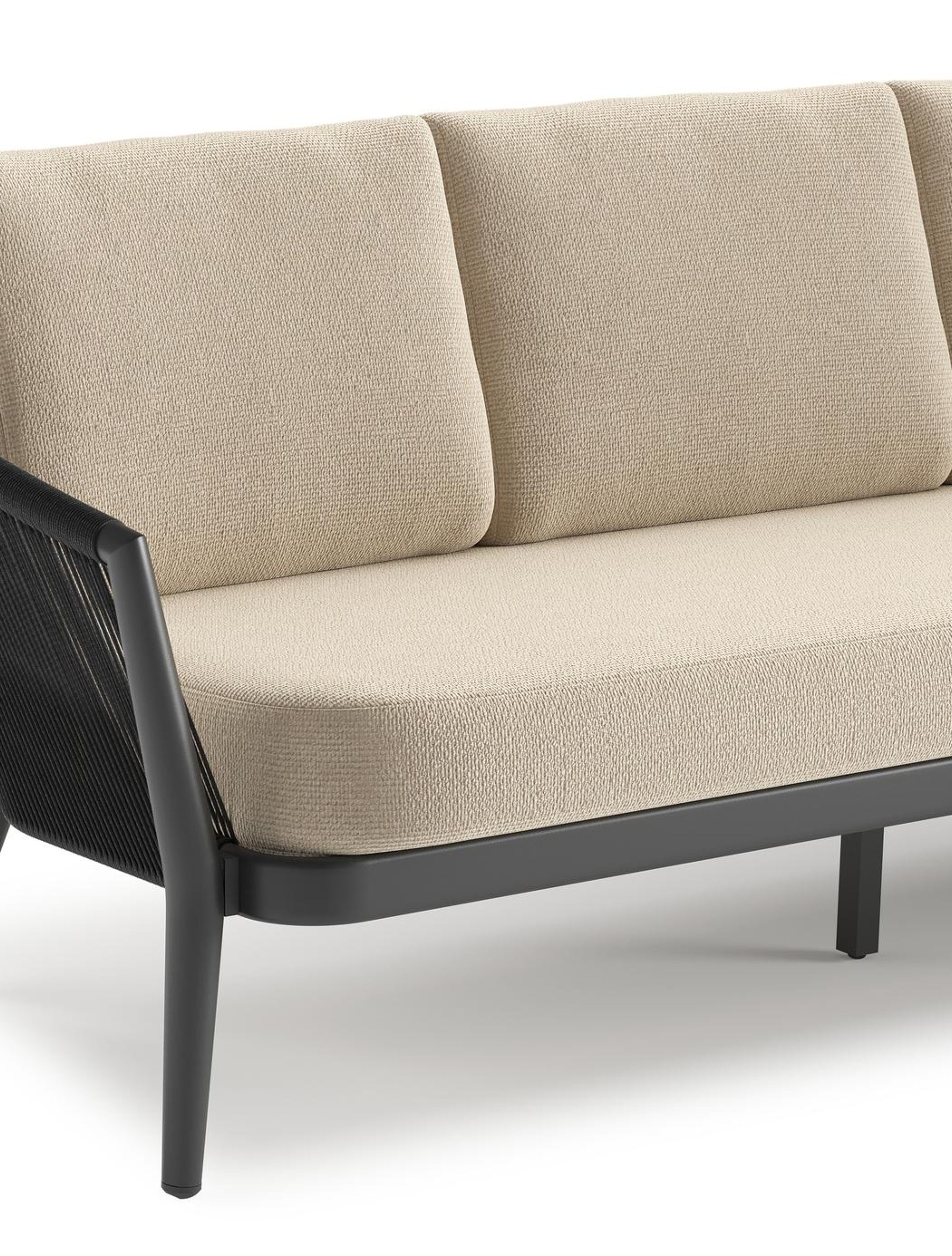 Orso loungeset in zwart aluminium en zwart verticaal geweven ronde rope met Althea Chalk all weather cosytica kussen | Exterioo tuinmeubelen