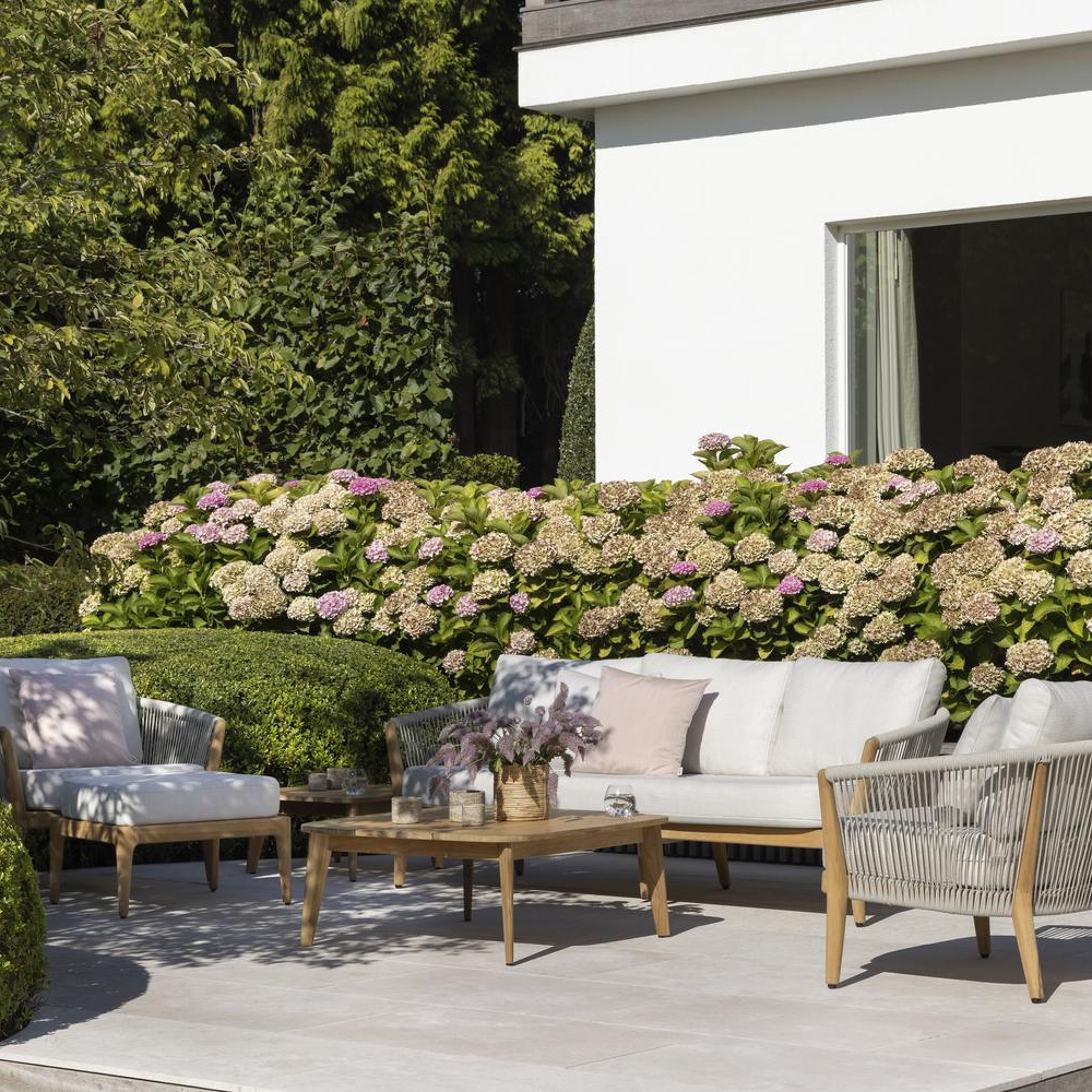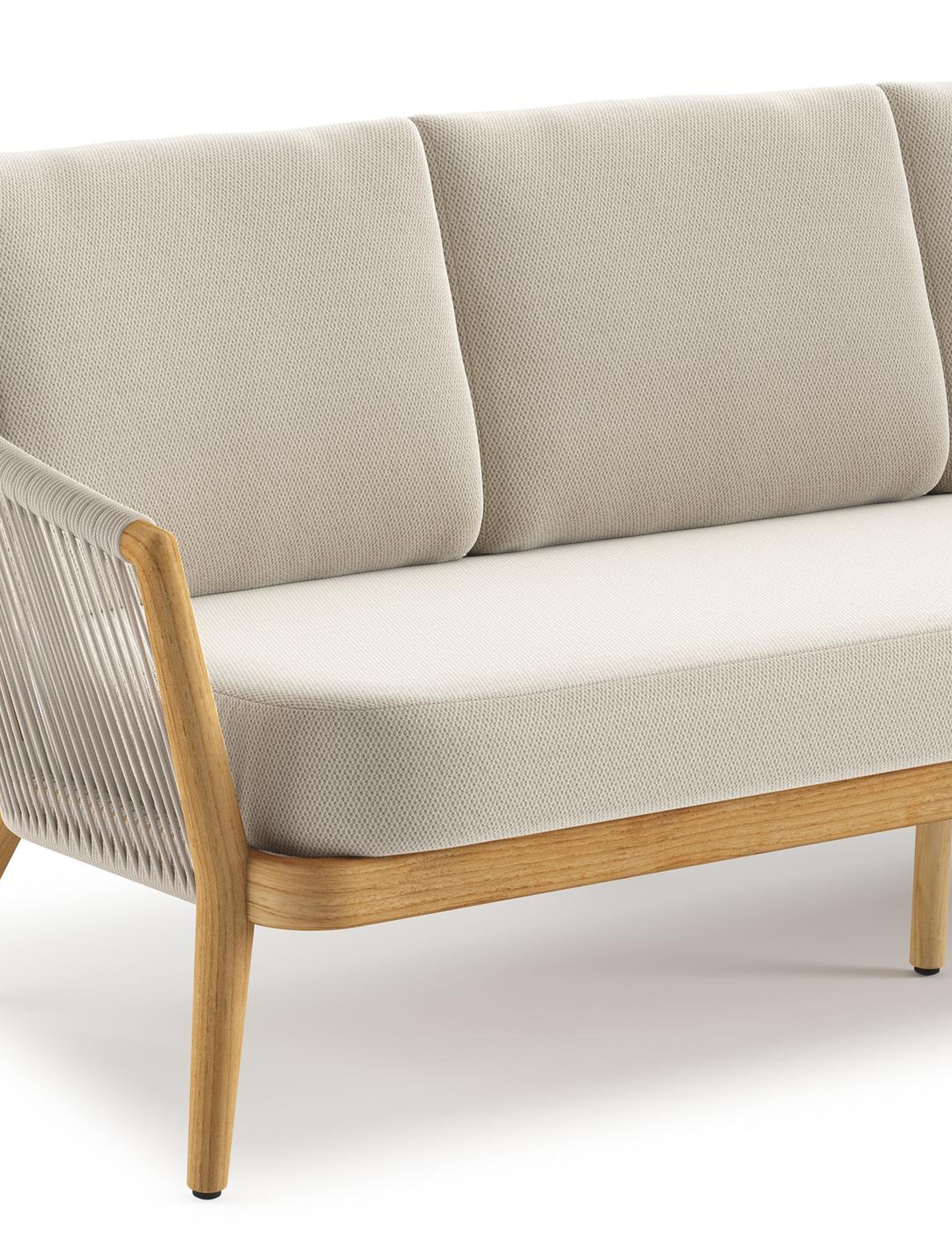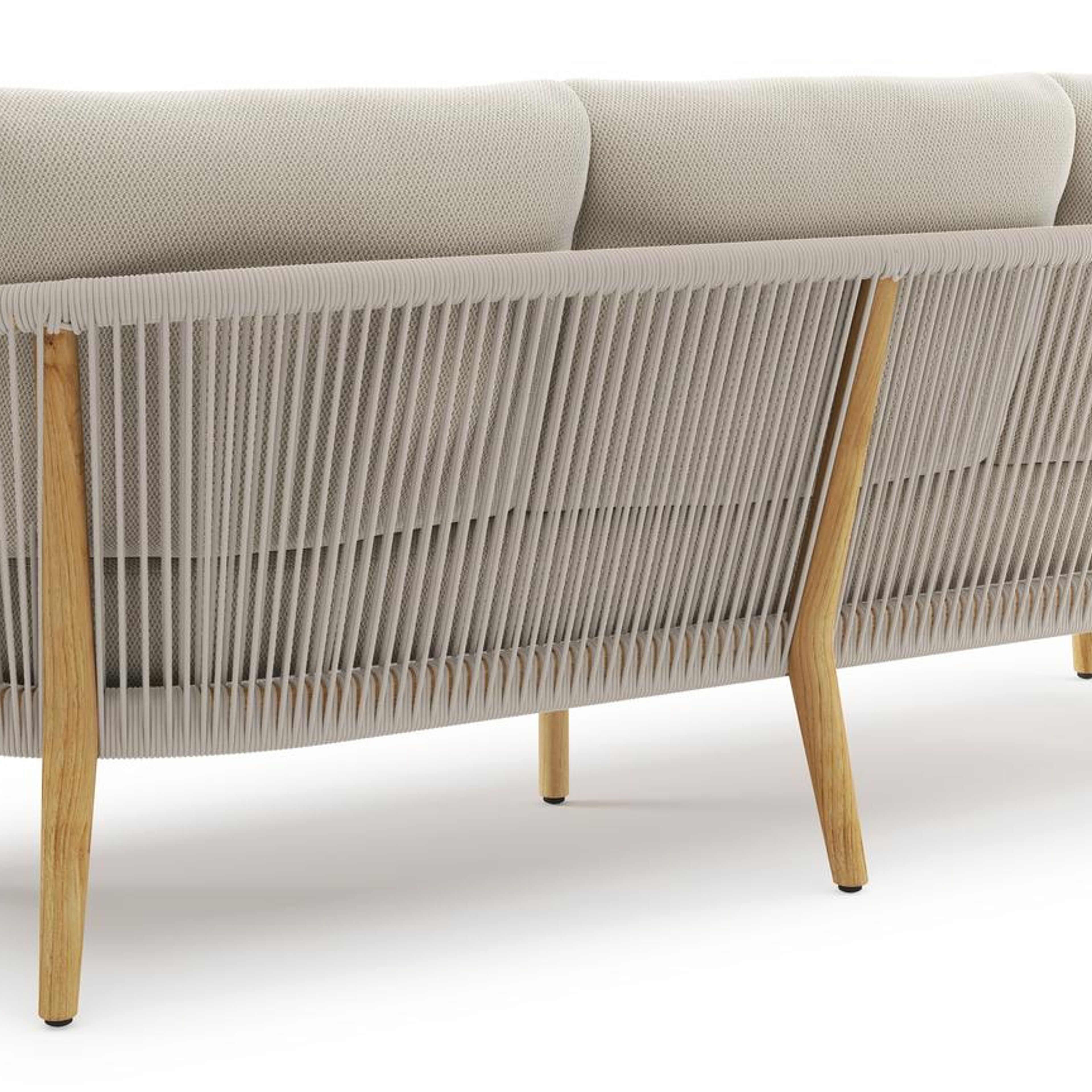 De Orso Lounge vormt een harmonieus geheel door modern verticaal weefwerk te combineren met authentiek gecertificeerd teak.