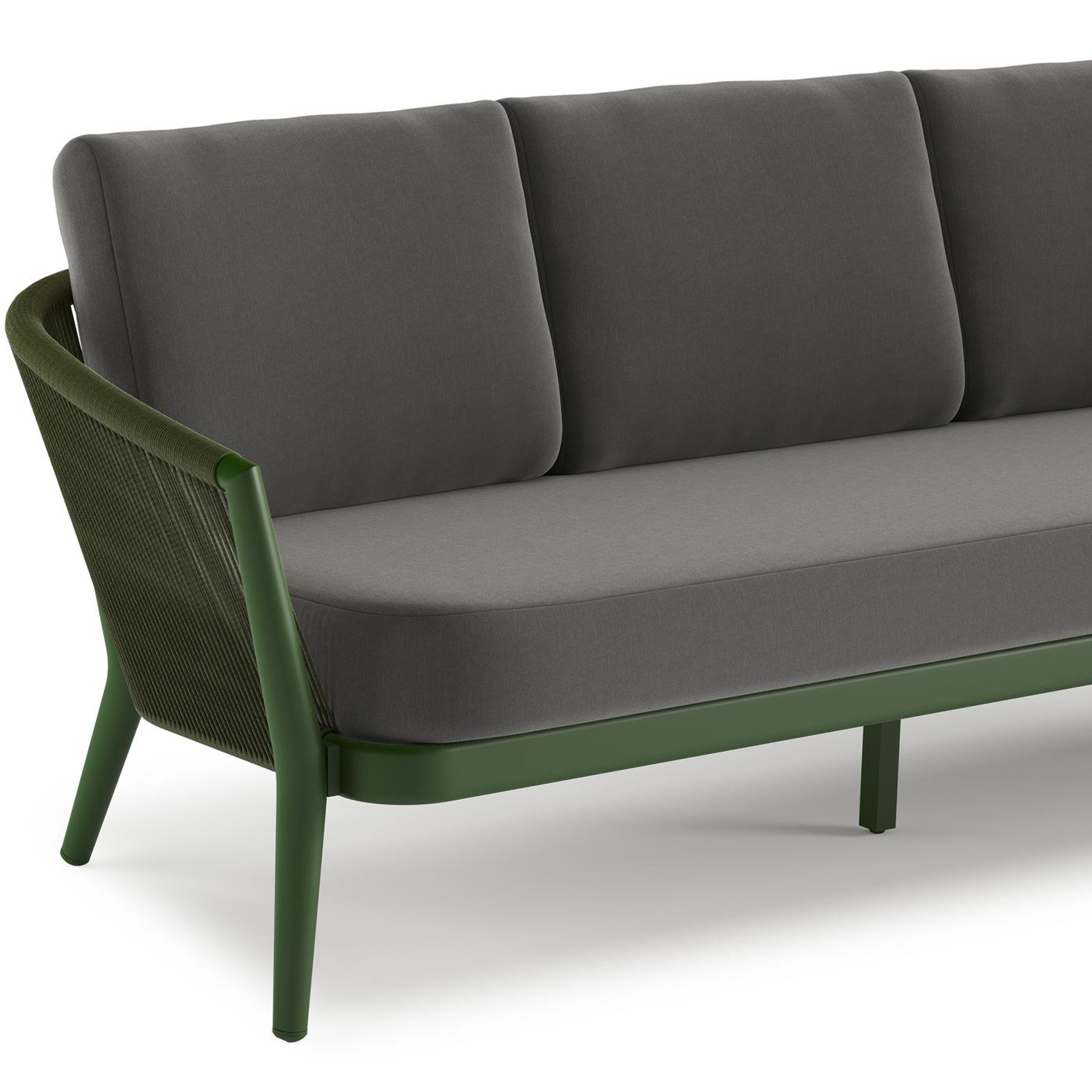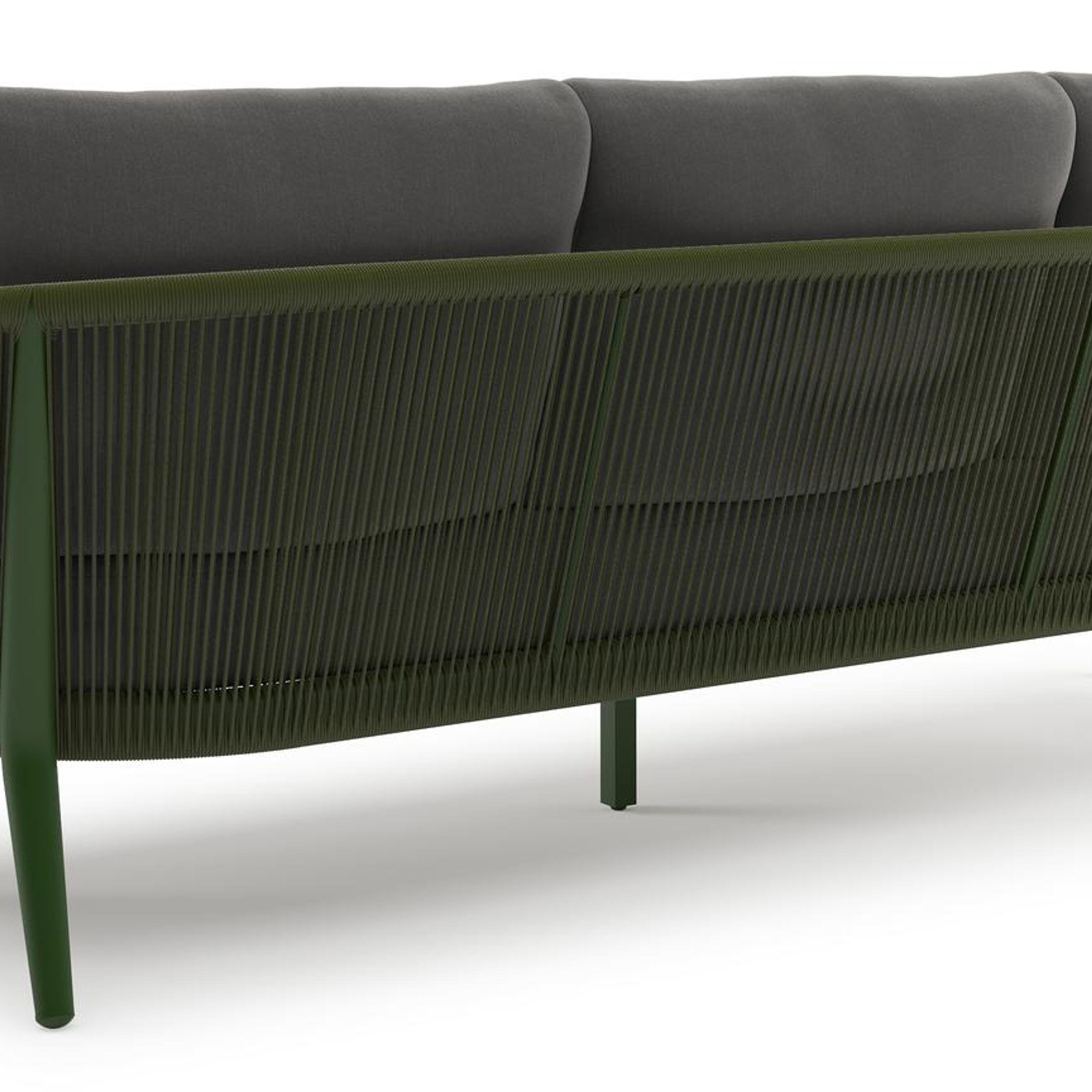 Orso loungeset in groen aluminium en aluminium met natte charcoal chine All Weather Sunbrella® Luxe kussens en loungetafel | Exterioo tuinmeubelen