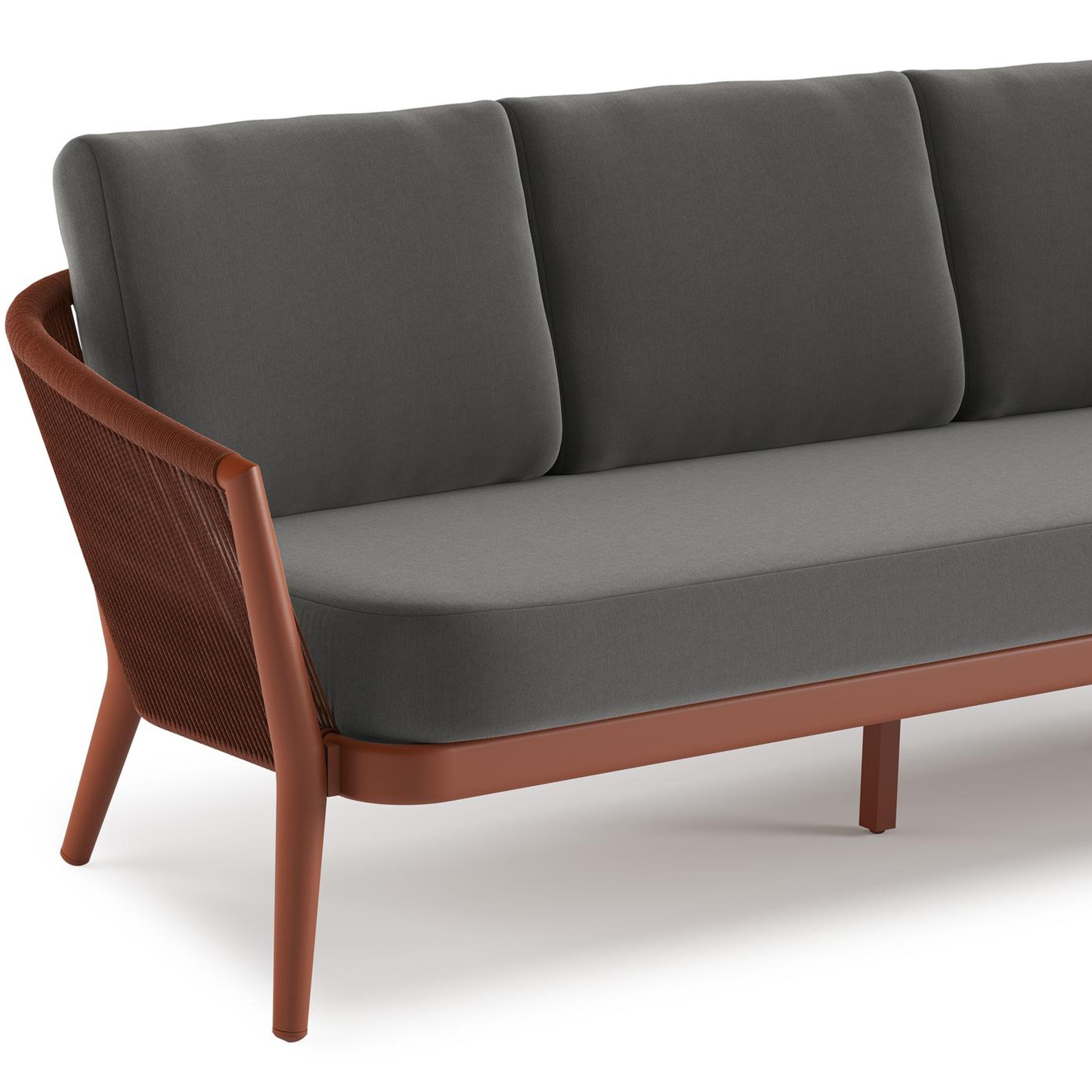 Orso loungeset in roestbruin aluminium en aluminium met natte charcoal chine All Weather Sunbrella® Luxe kussens en loungetafel | Exterioo tuinmeubelen