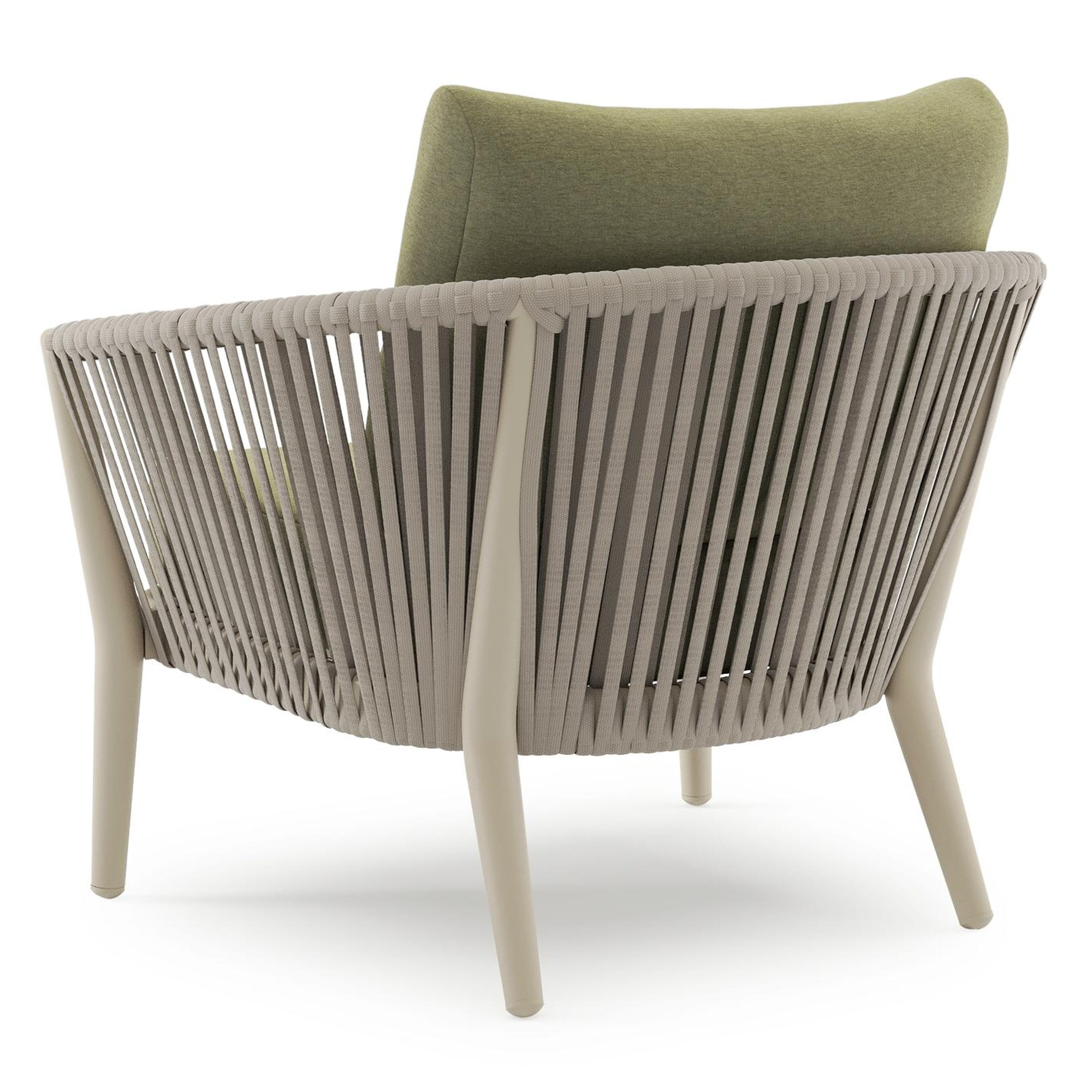 Orso loungestoel in beige aluminium en beige verticaal geweven luxe vlakke rope met Heritage Leaf all weather sunbrella® luxe kussen | Exterioo tuinmeubelen