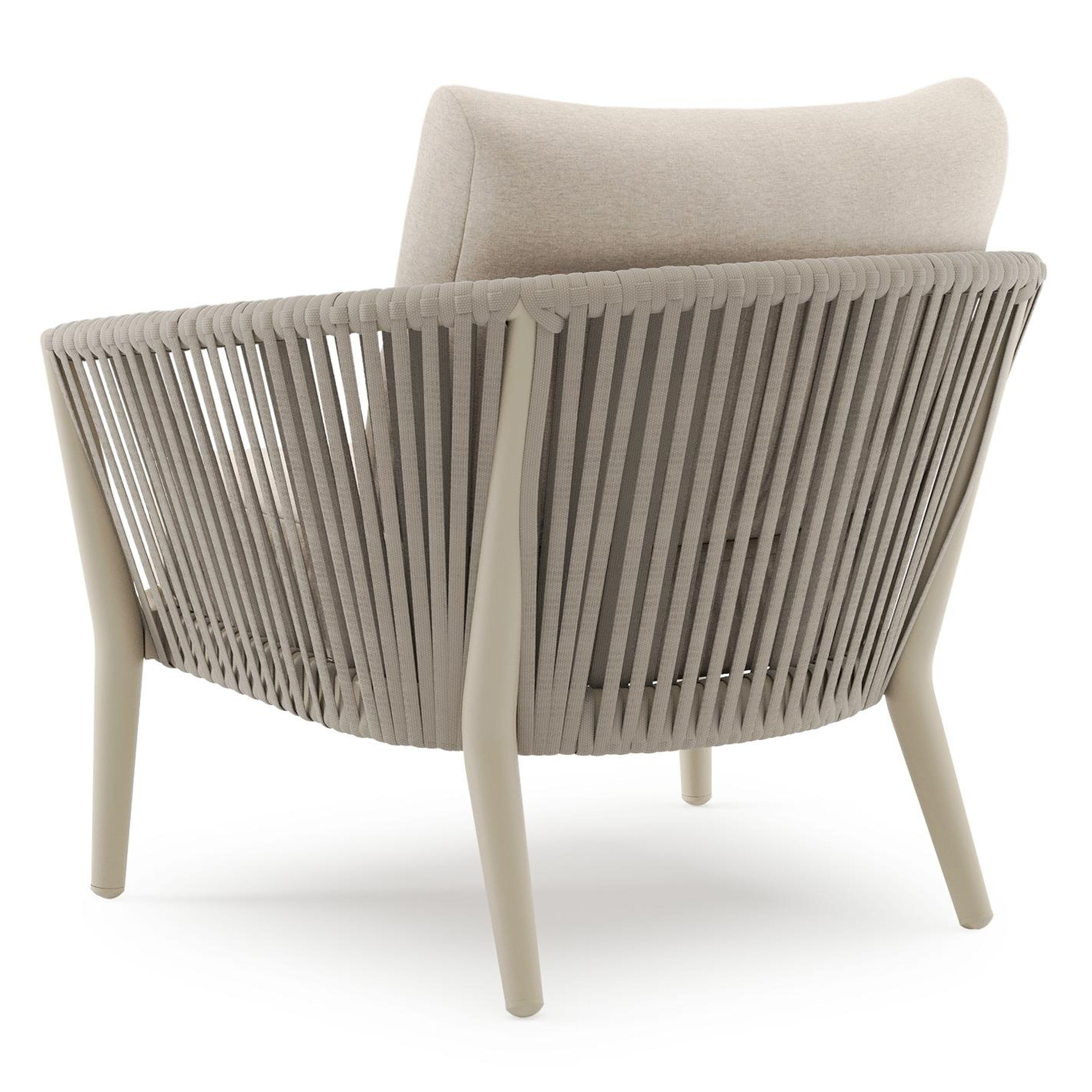 Orso loungestoel in beige aluminium en beige verticaal geweven ronde rope met Heritage Ash all weather sunbrella® luxe kussen | Exterioo tuinmeubelen