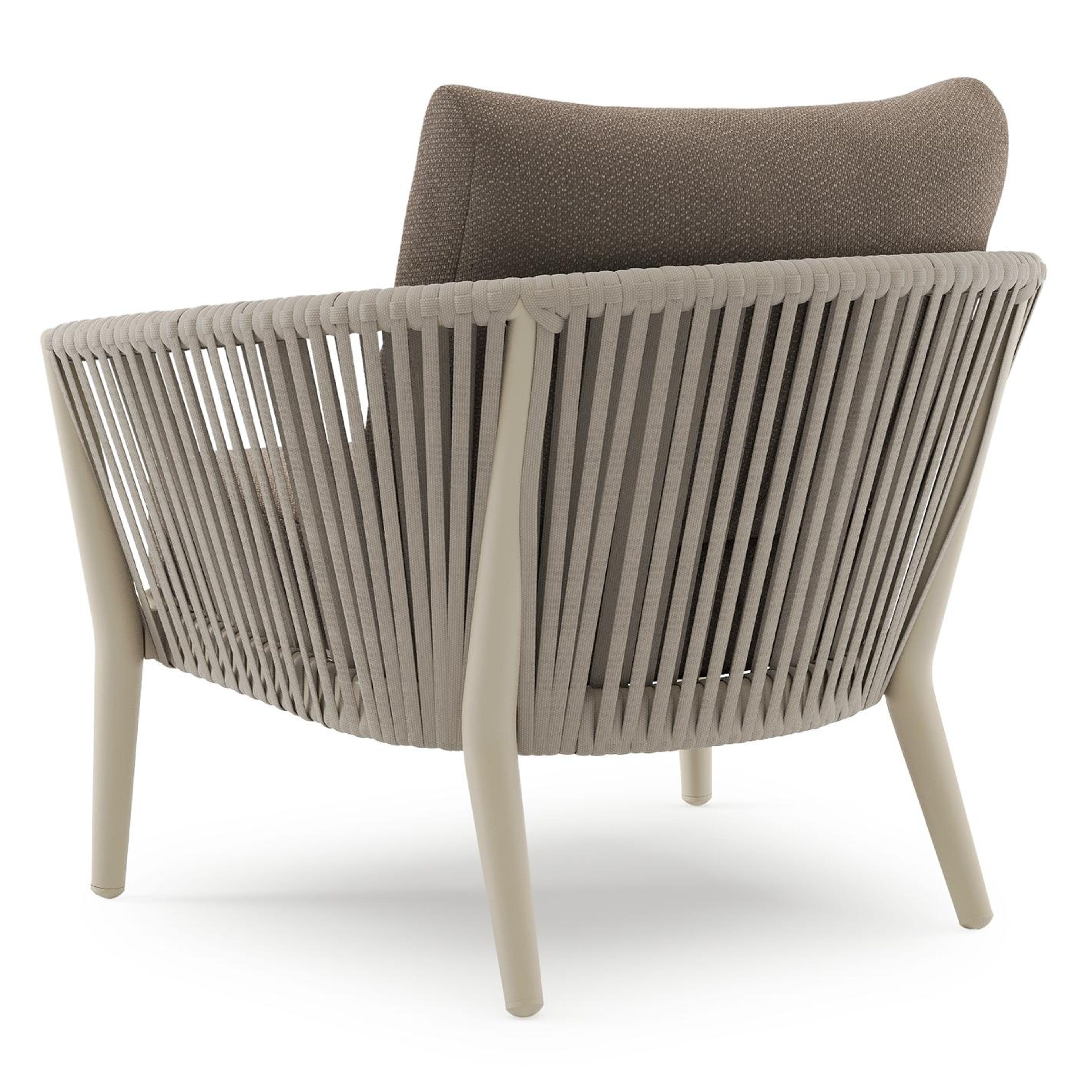 Orso loungestoel in beige aluminium en beige verticaal geweven luxe vlakke rope met Lopi Coconut all weather sunbrella® luxe kussen | Exterioo tuinmeubelen
