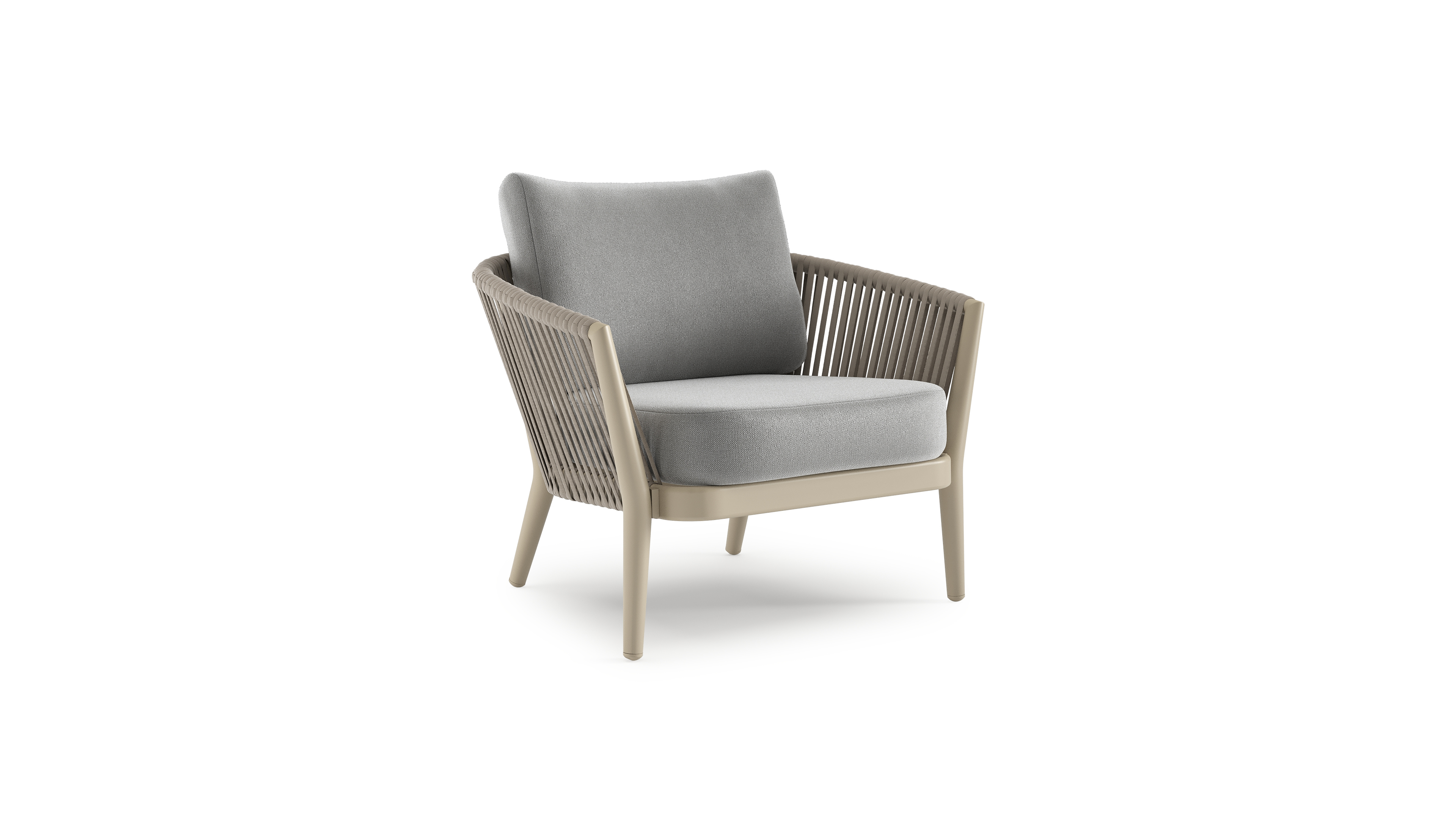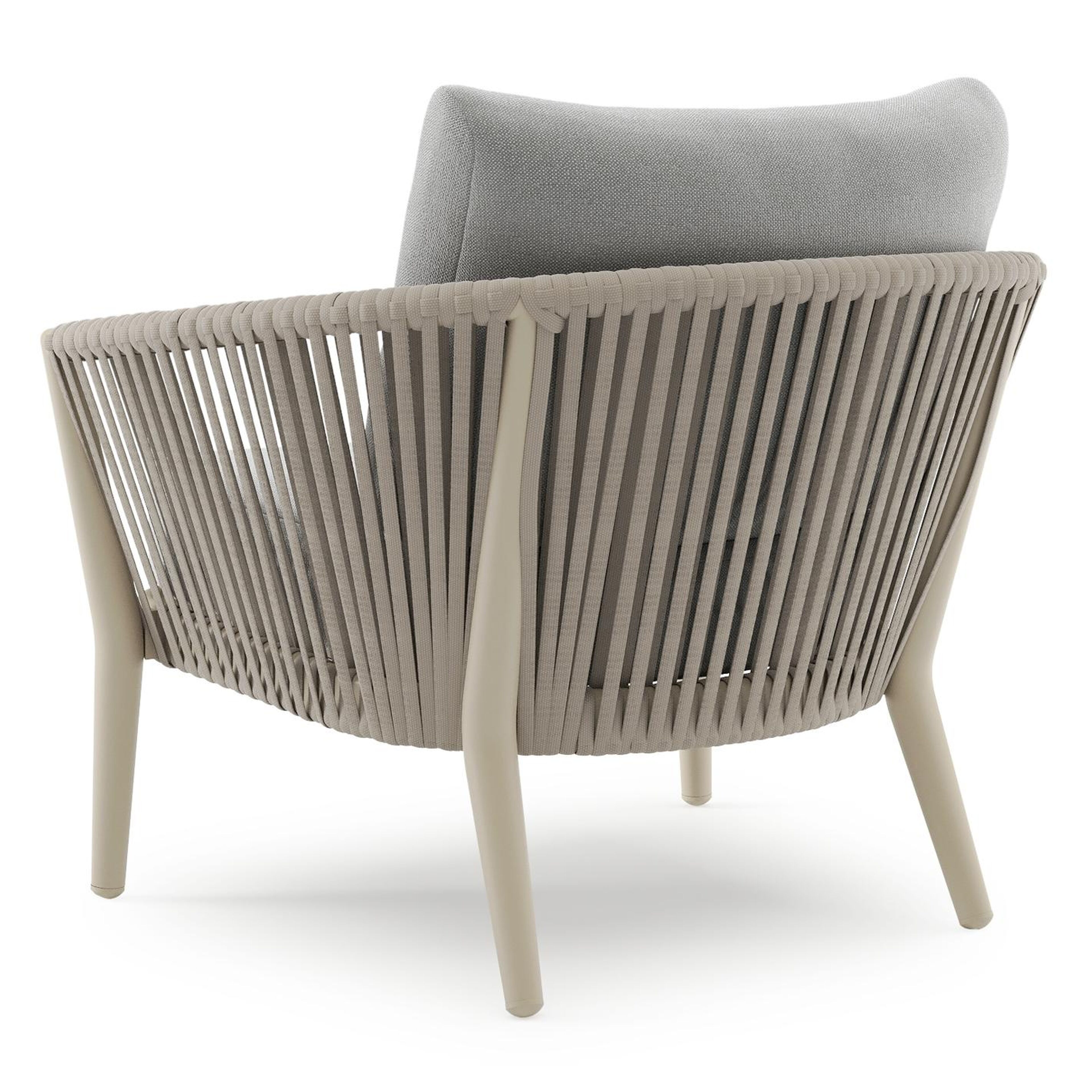 Orso loungestoel in beige aluminium en beige verticaal geweven luxe vlakke rope met Savane Grey all weather sunbrella® luxe kussen | Exterioo tuinmeubelen