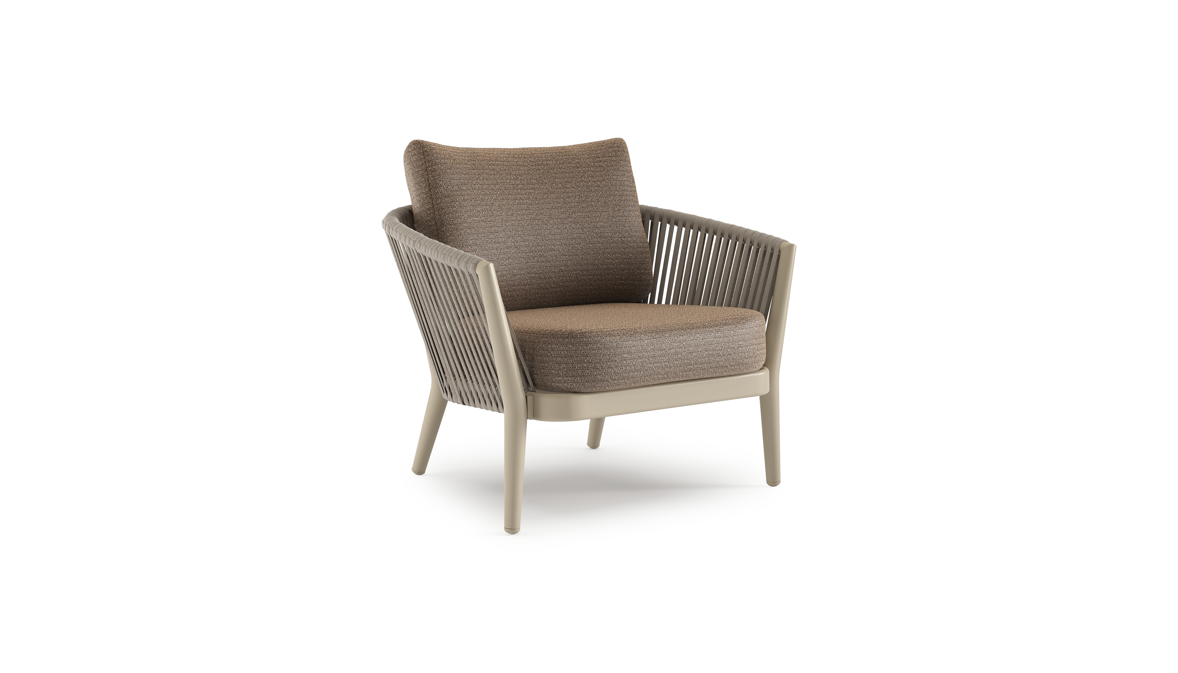 Orso loungestoel in beige aluminium en beige verticaal geweven luxe vlakke rope met Firenze Bamboe all weather solica kussen | Exterioo tuinmeubelen