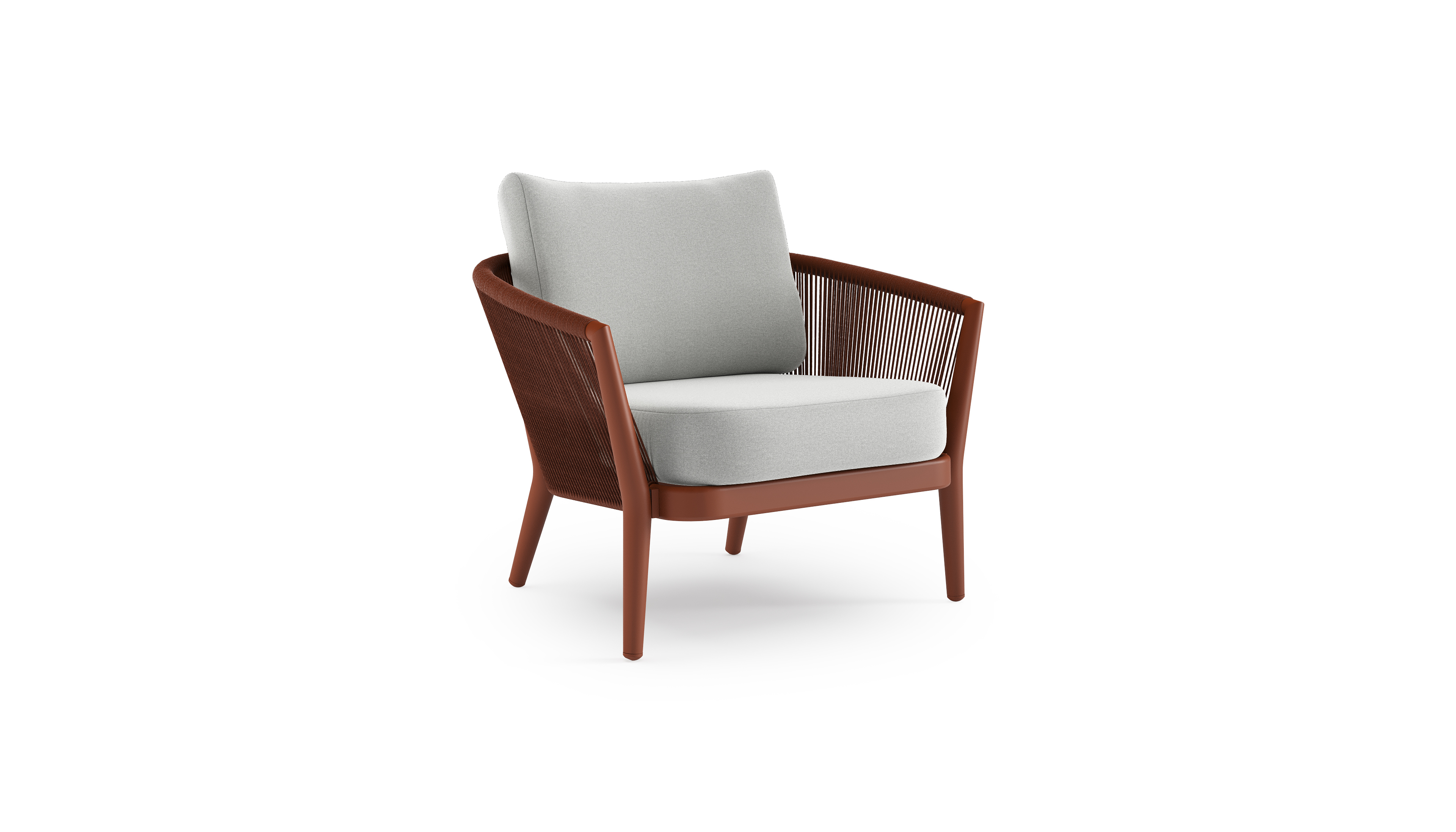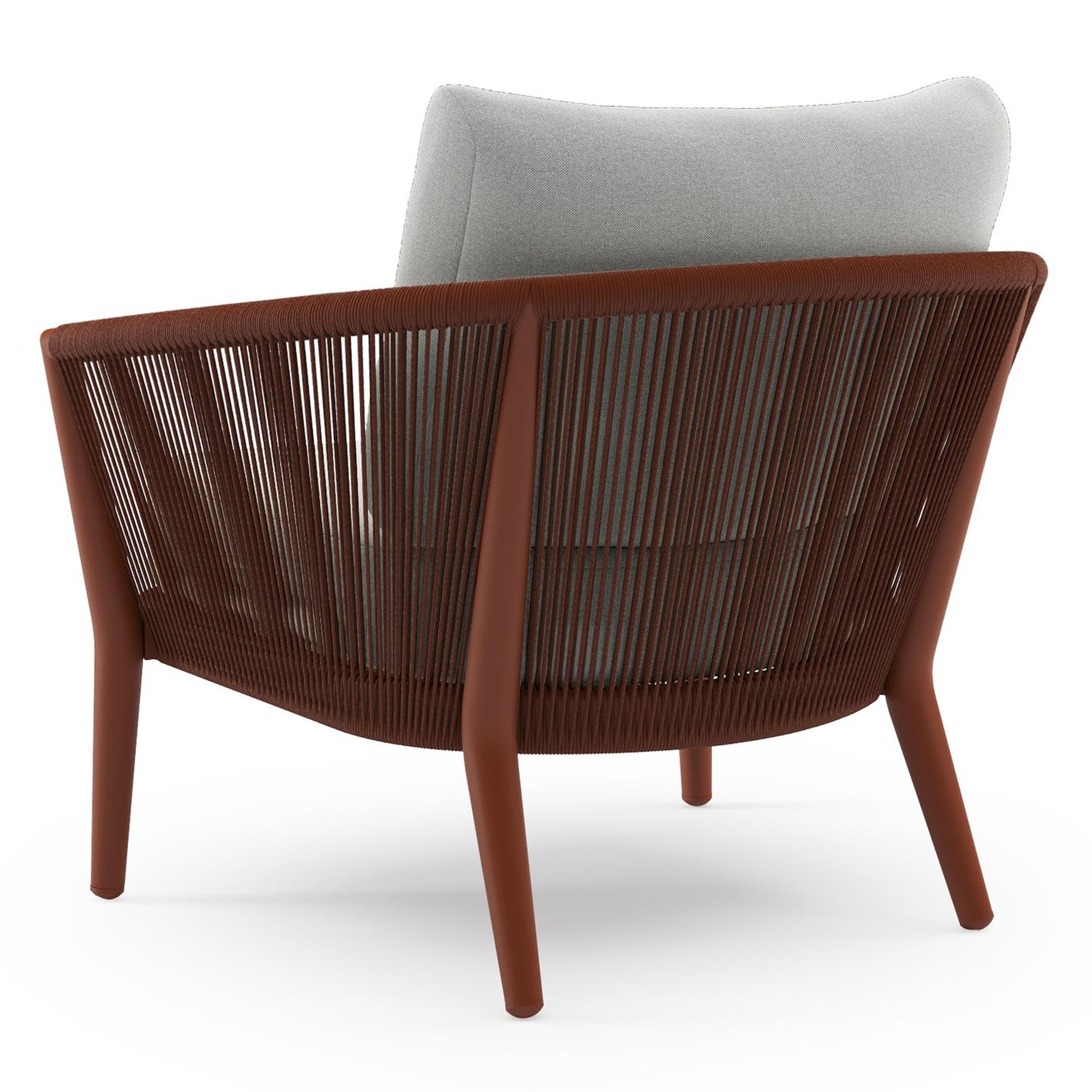 Orso loungestoel in roestbruin aluminium en roestbruin verticaal geweven ronde rope met Natte Grey Chine all weather sunbrella® luxe kussen | Exterioo tuinmeubelen