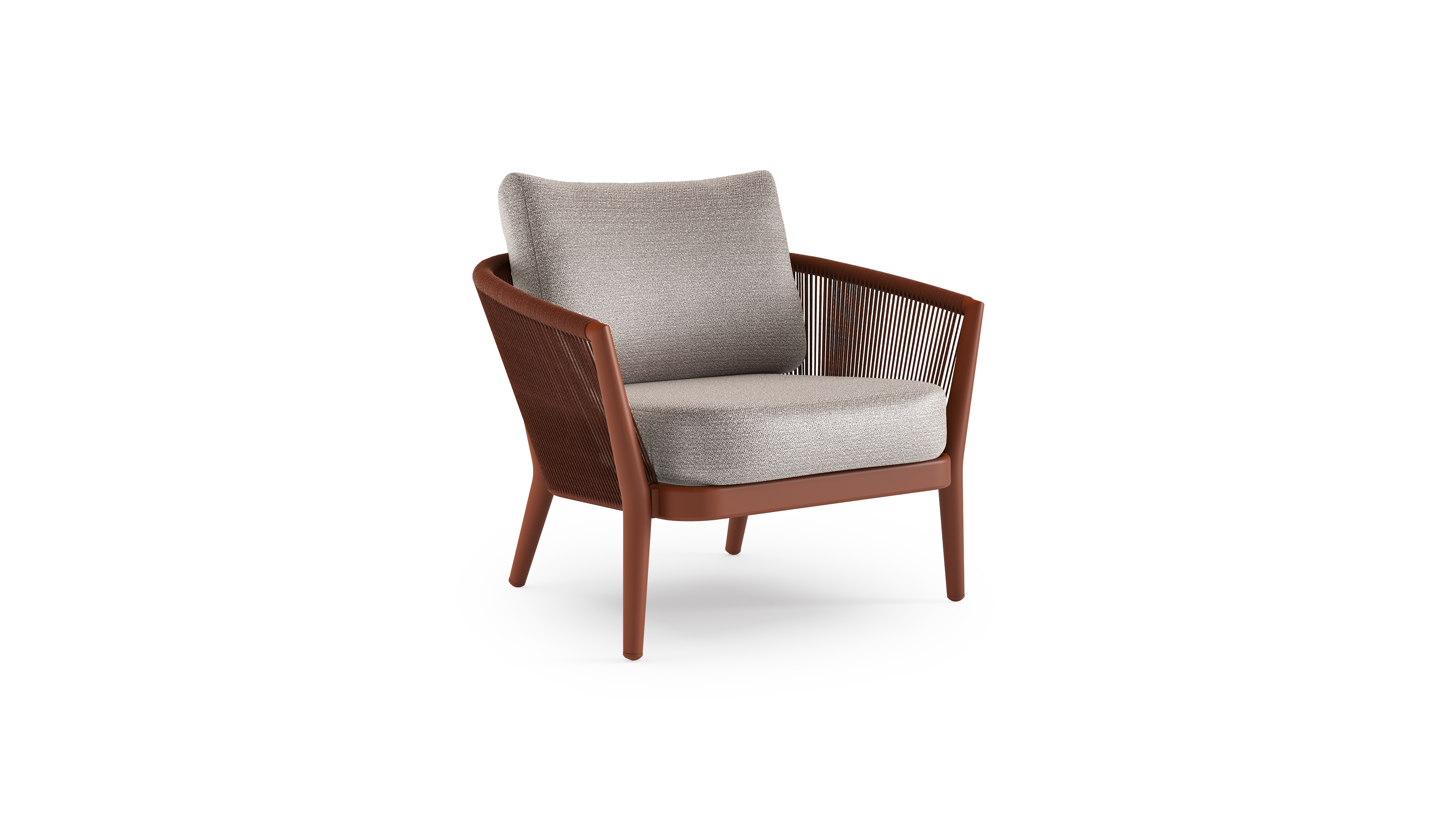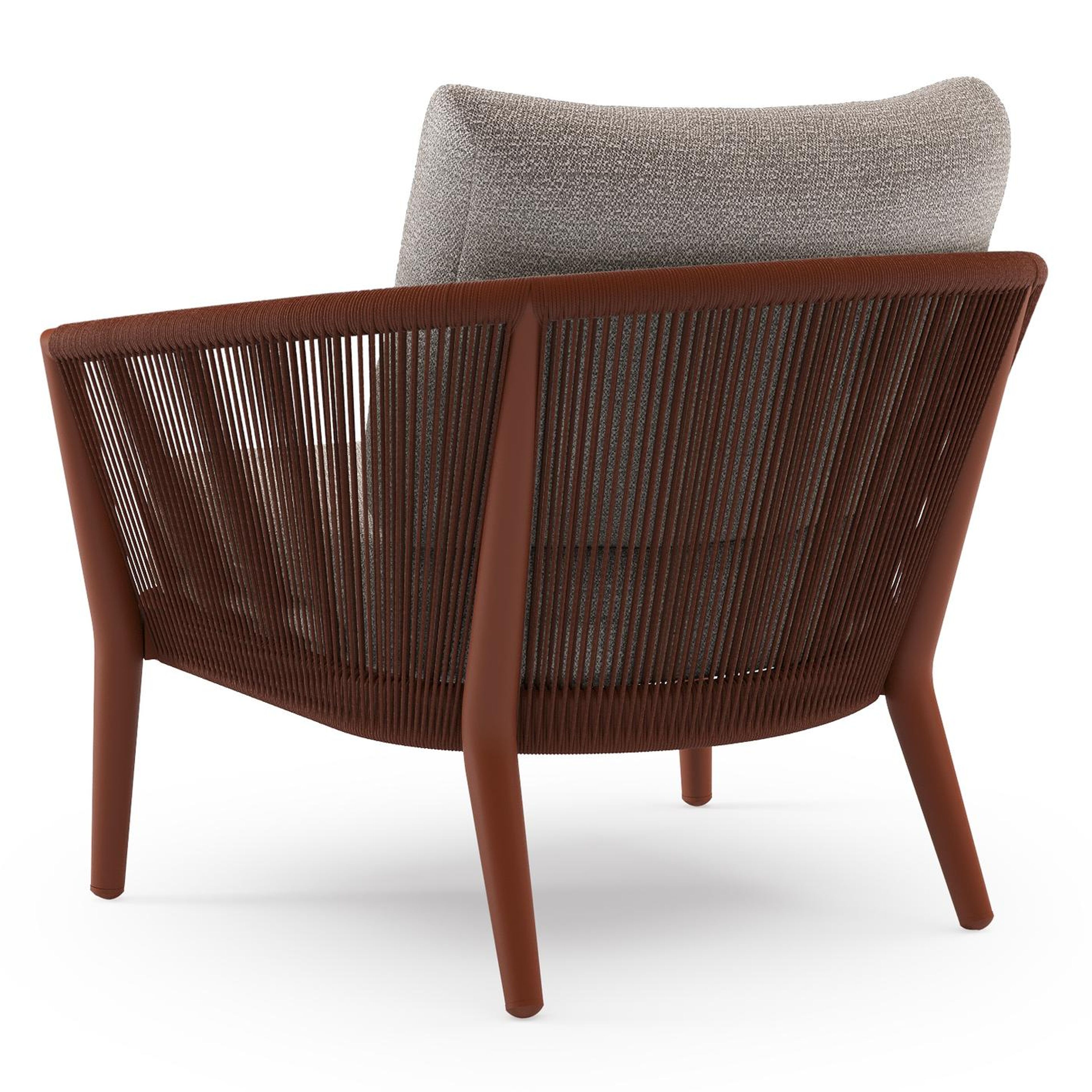 Orso loungestoel in roestbruin aluminium en roestbruin verticaal geweven ronde rope met Wander Granite all weather sunbrella® luxe kussen | Exterioo tuinmeubelen