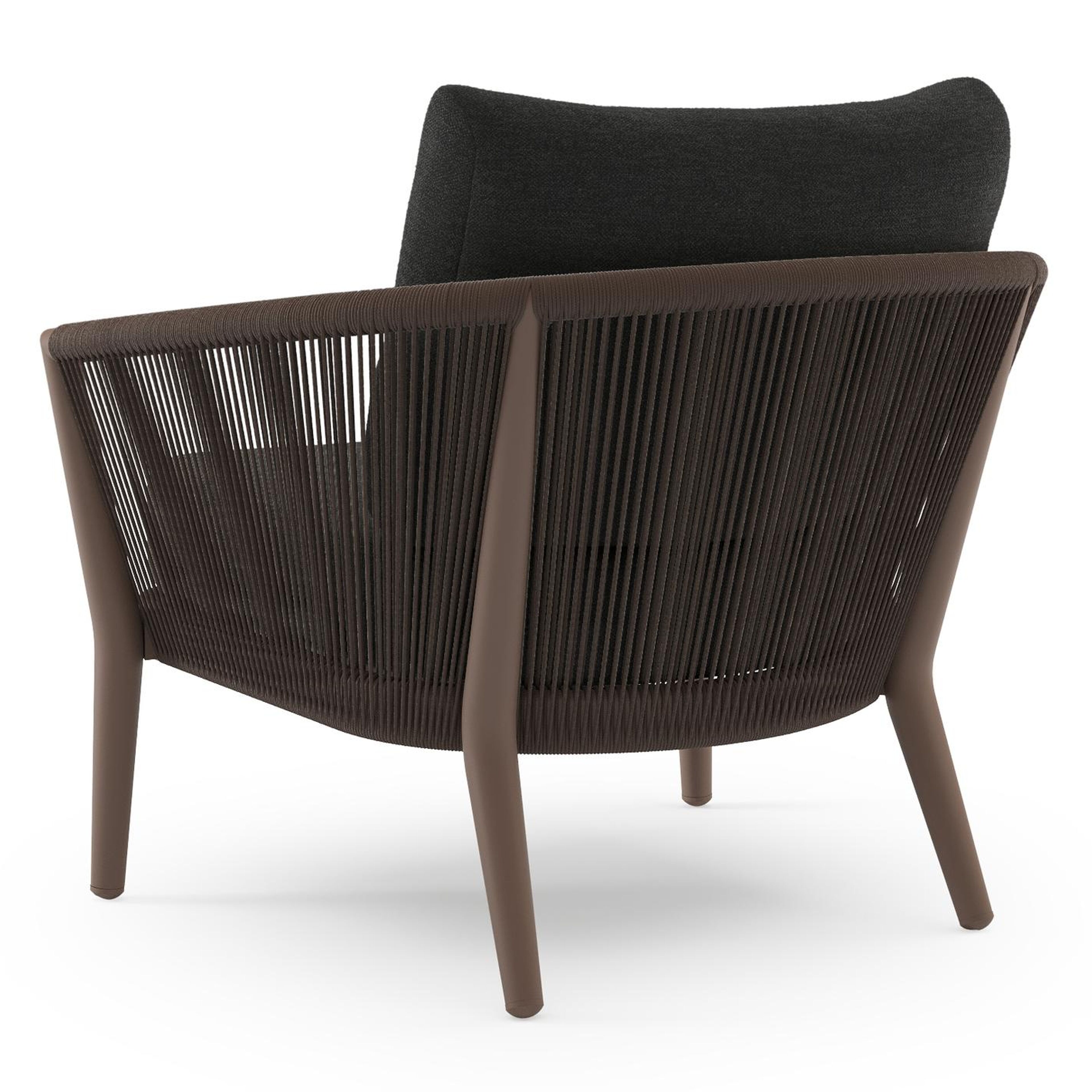Orso loungestoel in taupe aluminiumen verticaal geweven ronde rope met chartres sooty all weather sunbrella® luxe kussen | Exterioo tuinmeubelen