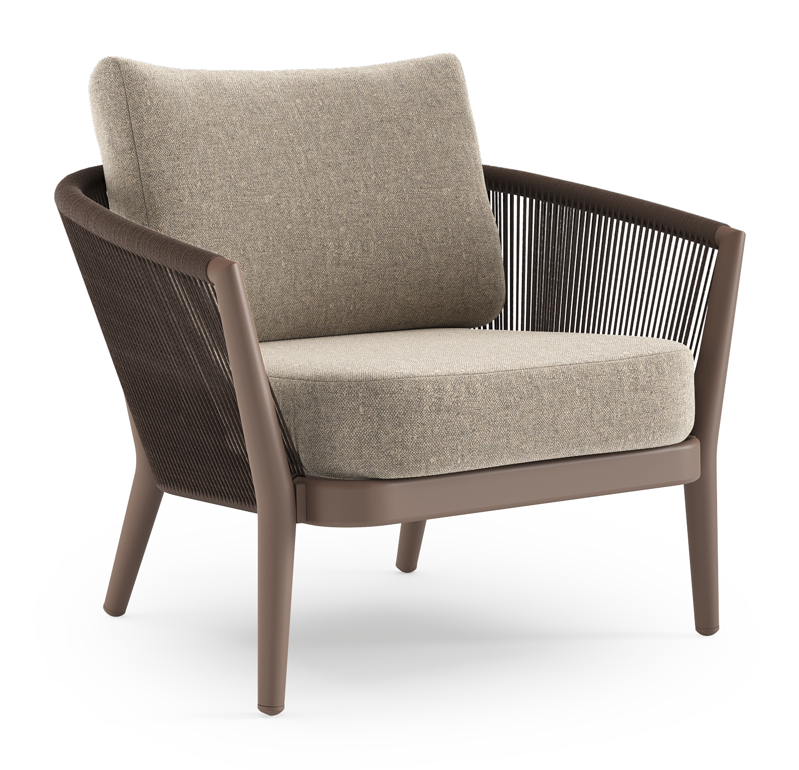 Orso loungestoel in taupe aluminiumen zwart verticaal geweven ronde rope met Chartres Pewter all weather sunbrella® luxe kussen | Exterioo tuinmeubelen
