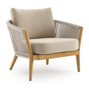 Orso loungestoel in teak en beige verticaal geweven luxe vlakke rope met Althea Chalk all weather cosytica kussen | Exterioo tuinmeubelen