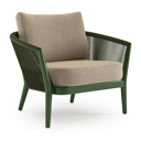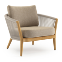 Orso loungestoel in teak en beige verticaal geweven ronde rope met Madagascar Oak all weather cosytica kussen | Exterioo tuinmeubelen
