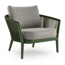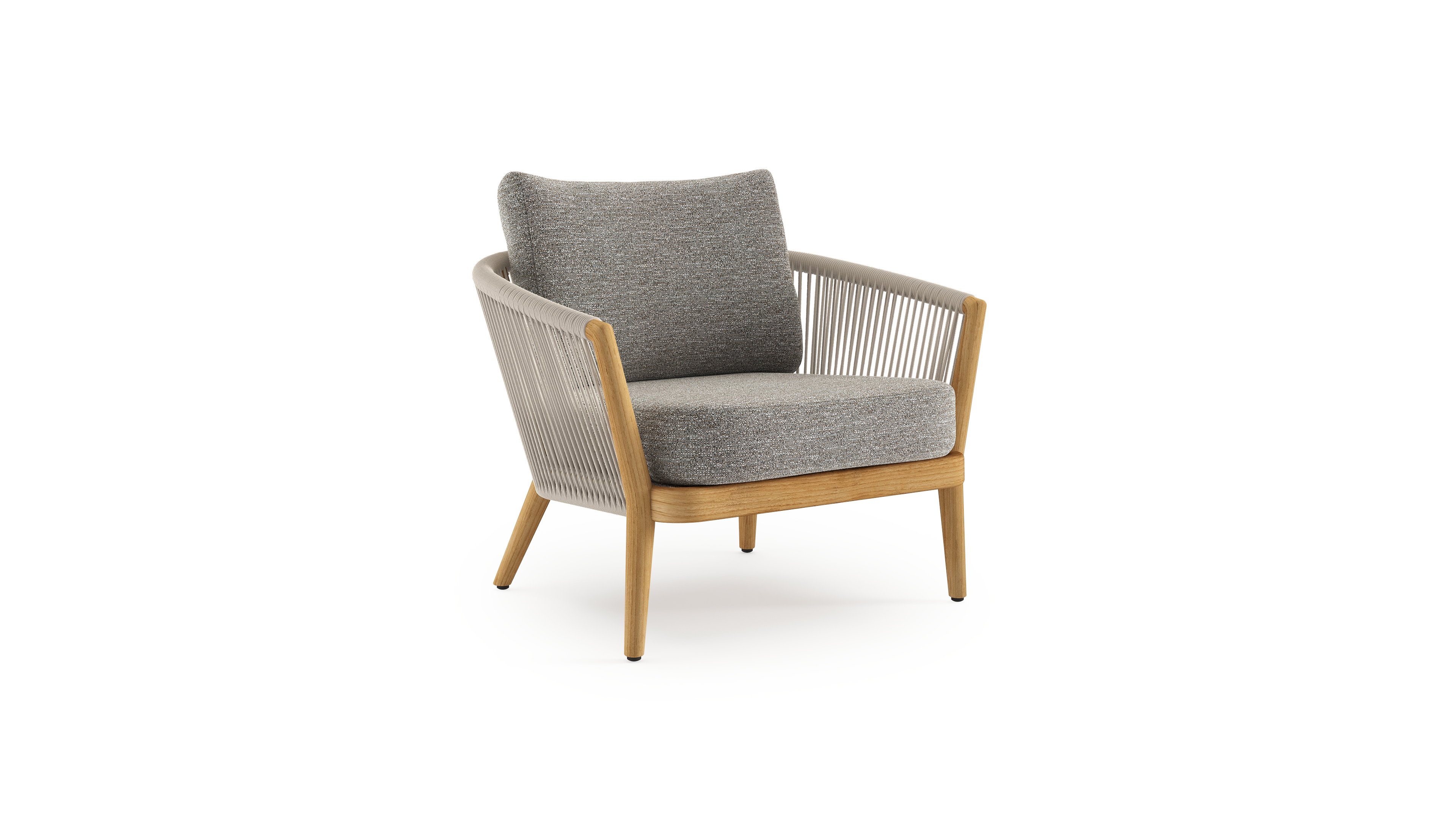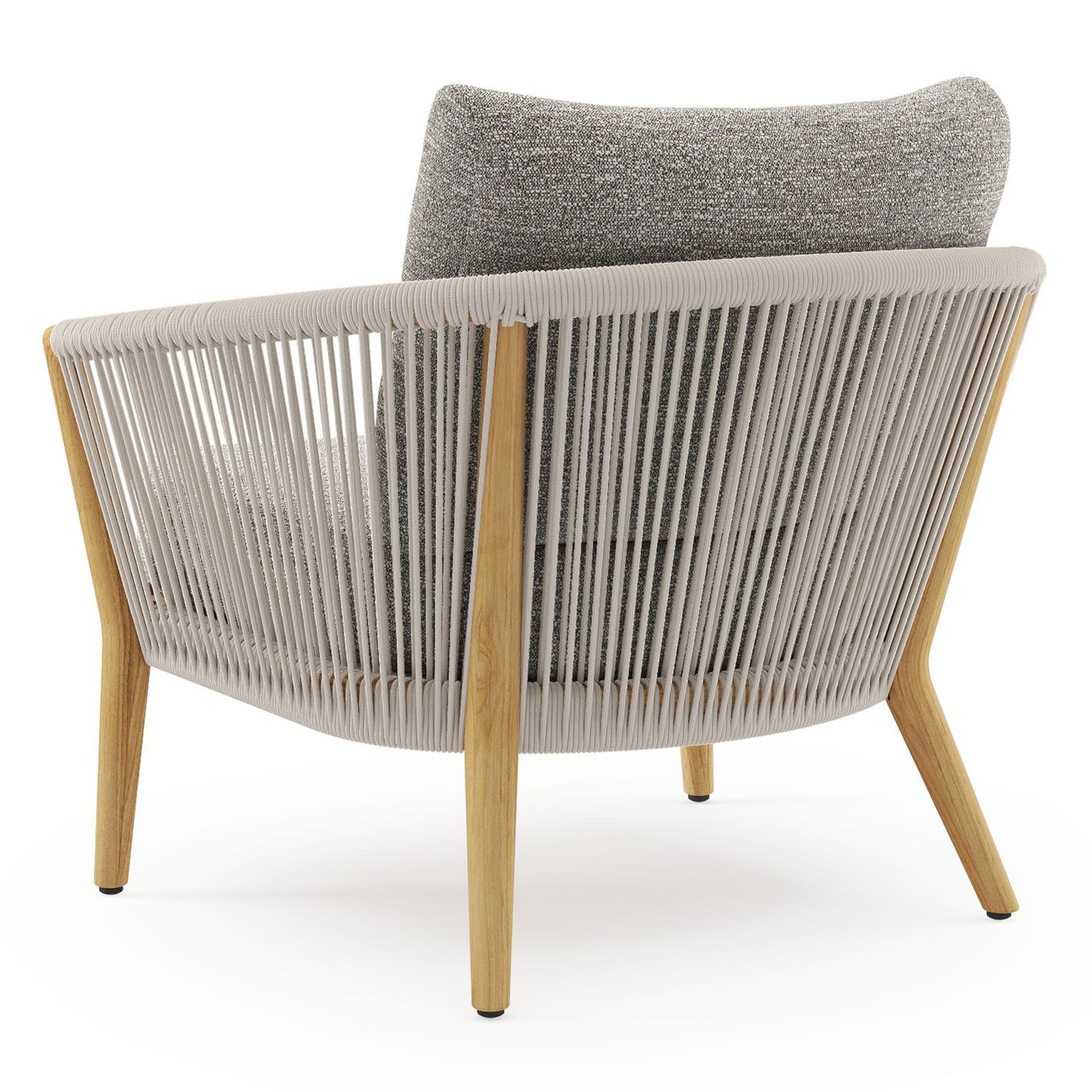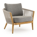 Orso loungestoel in teak en beige verticaal geweven ronde rope met Tundra Pepper all weather sunbrella® luxe kussen | Exterioo tuinmeubelen