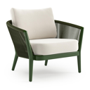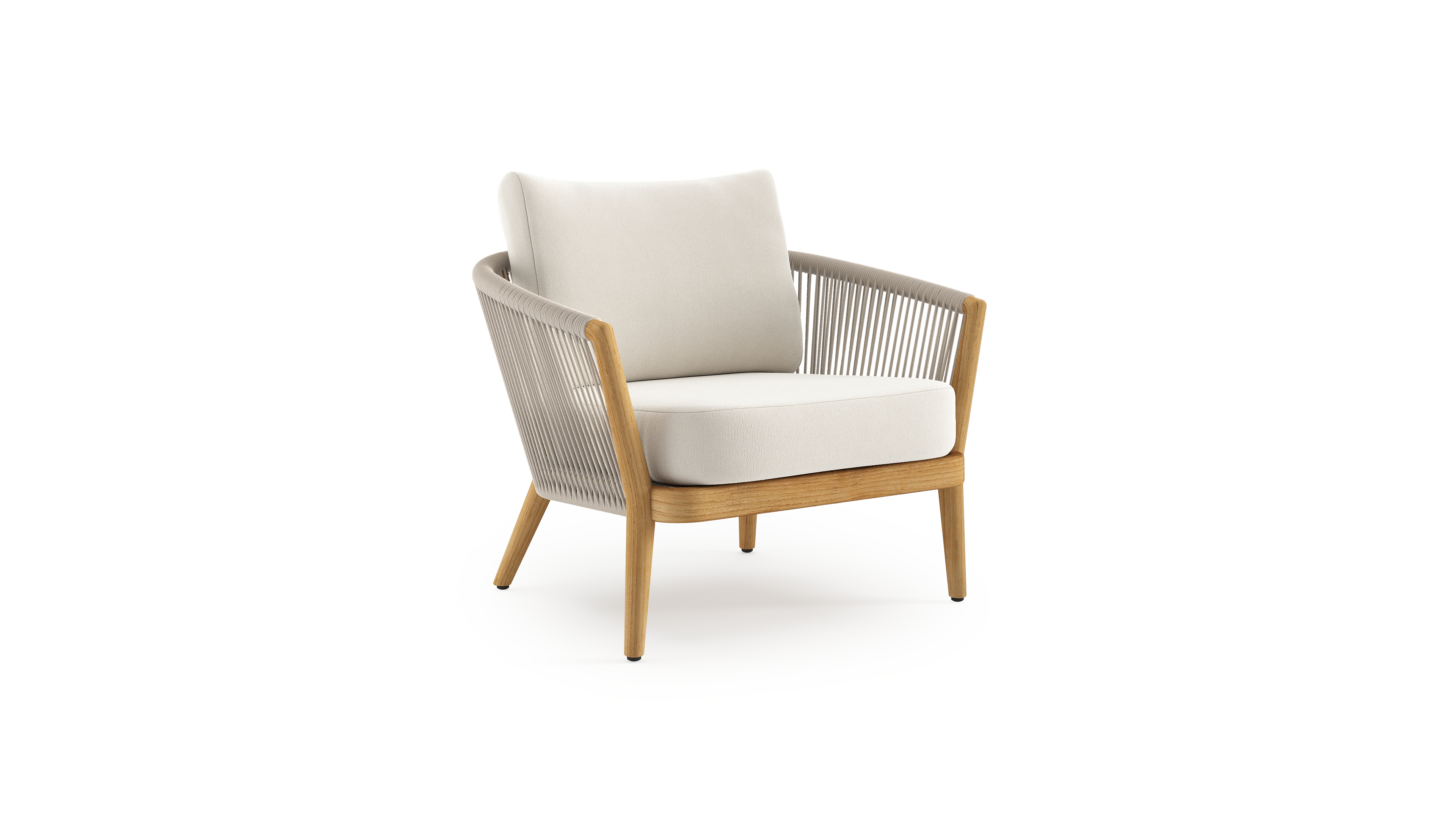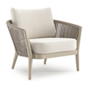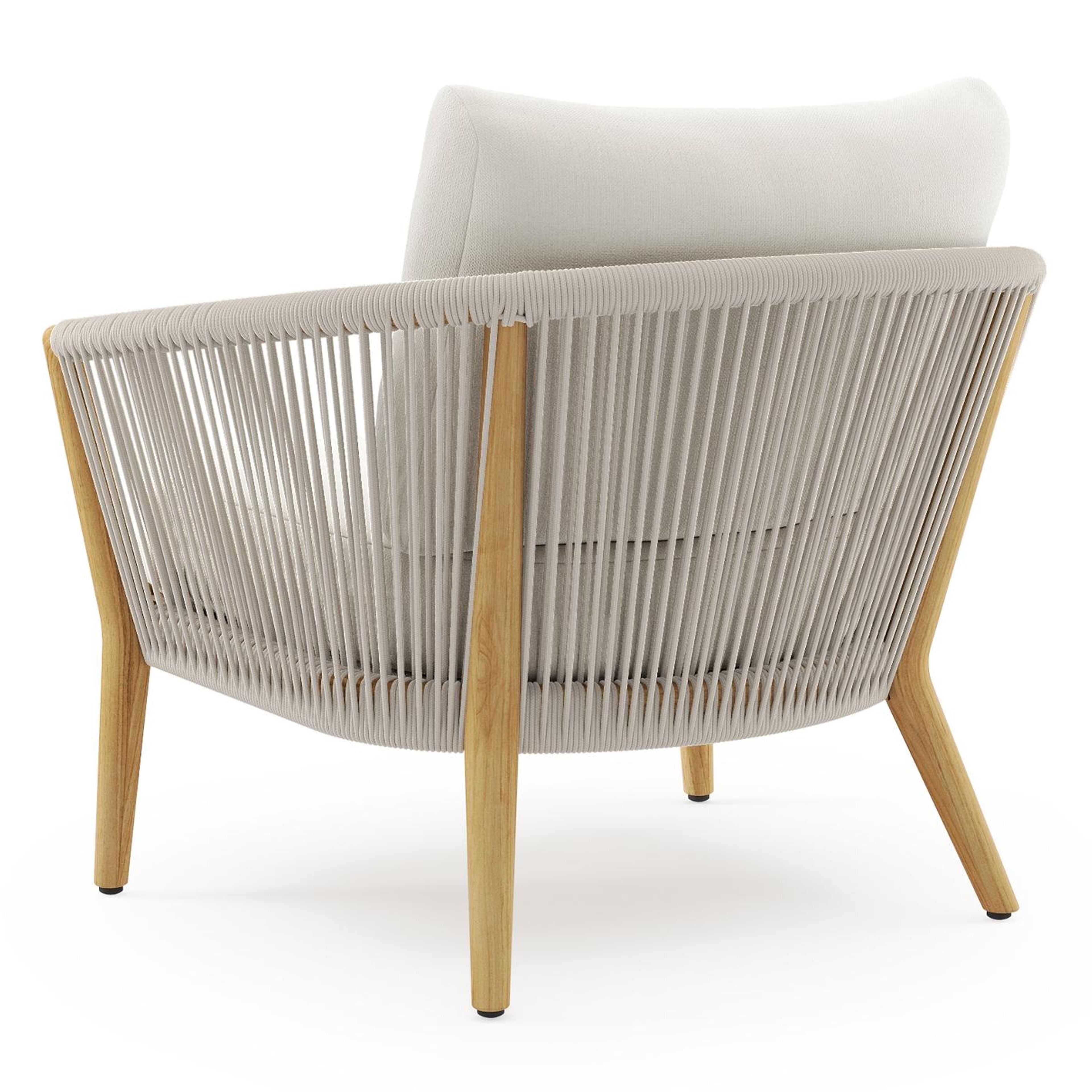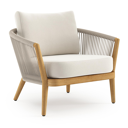 Orso loungestoel in teak en beige verticaal geweven ronde rope met Savane White all weather sunbrella® luxe kussen | Exterioo tuinmeubelen
