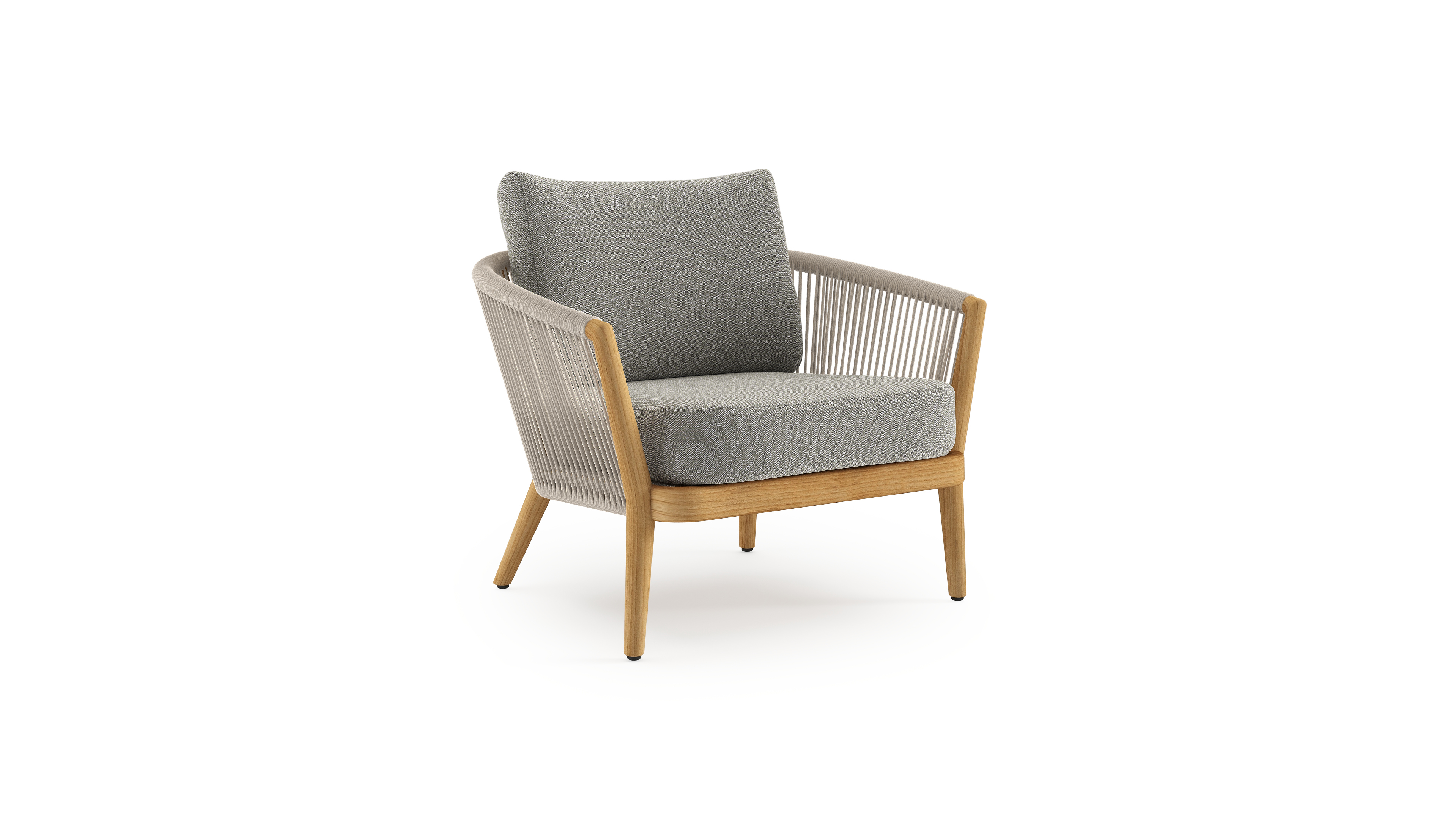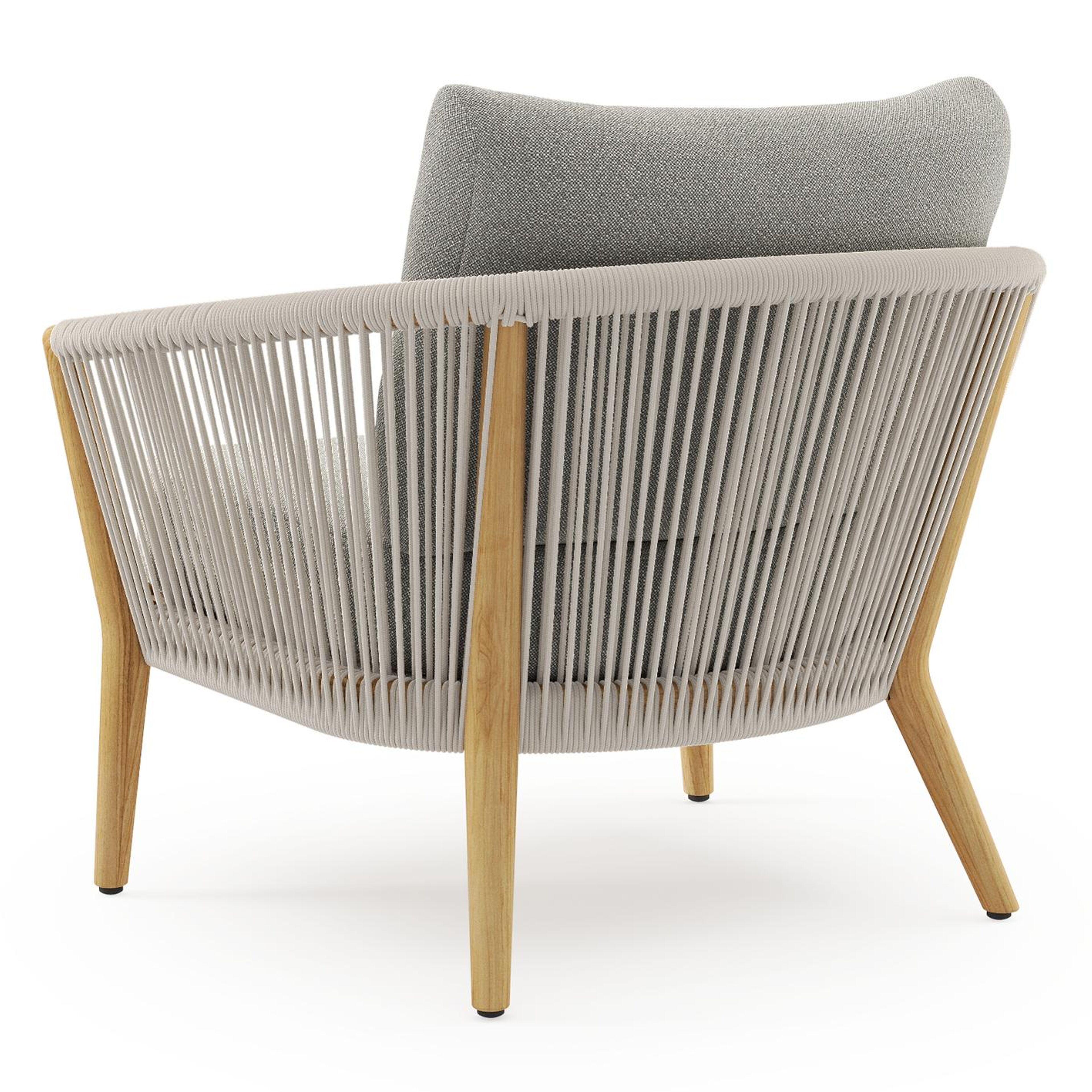 Orso loungestoel in teak en beige verticaal geweven ronde rope met Savane Tunder all weather sunbrella® luxe kussen | Exterioo tuinmeubelen