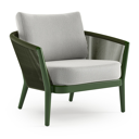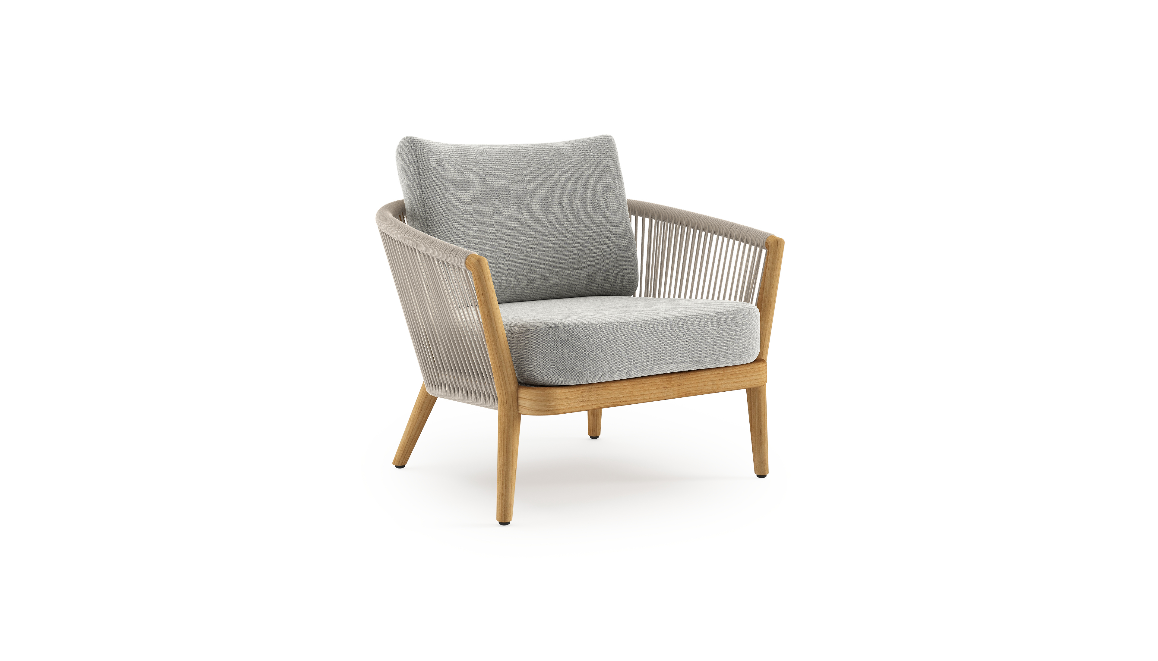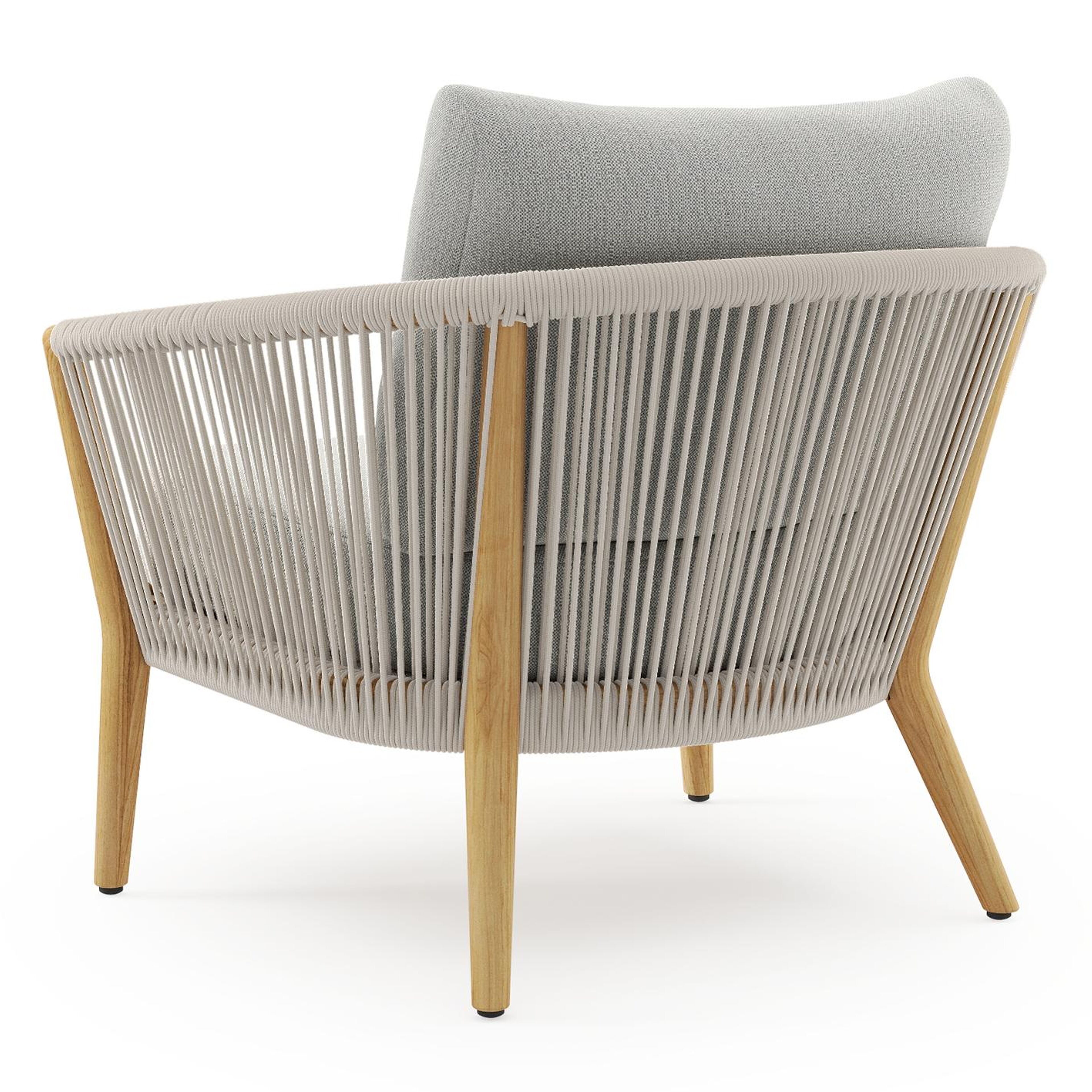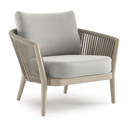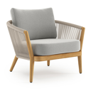 Orso loungestoel in teak en beige verticaal geweven ronde rope met Savane Nimbus all weather sunbrella® luxe kussen | Exterioo tuinmeubelen