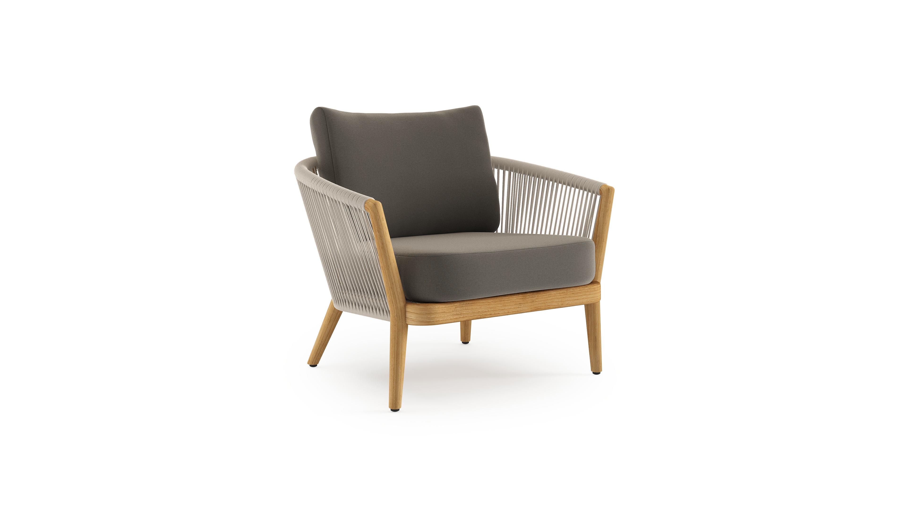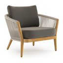 Orso loungestoel in teak en beige verticaal geweven ronde rope met Natte Carbon Beige all weather sunbrella® luxe kussen | Exterioo tuinmeubelen