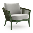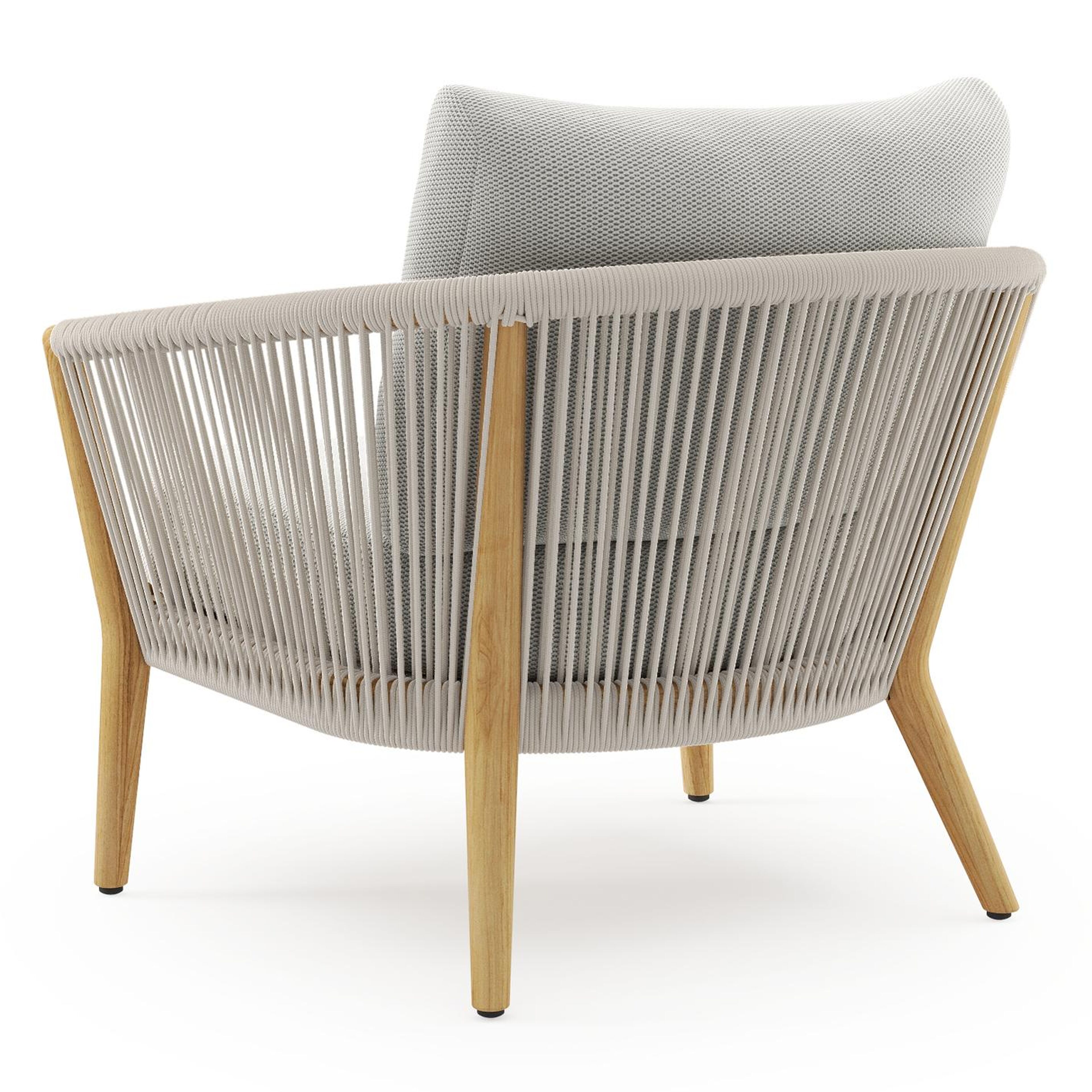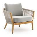 Orso loungestoel in teak en beige verticaal geweven ronde rope met Lopi Ash all weather sunbrella® luxe kussen | Exterioo tuinmeubelen