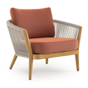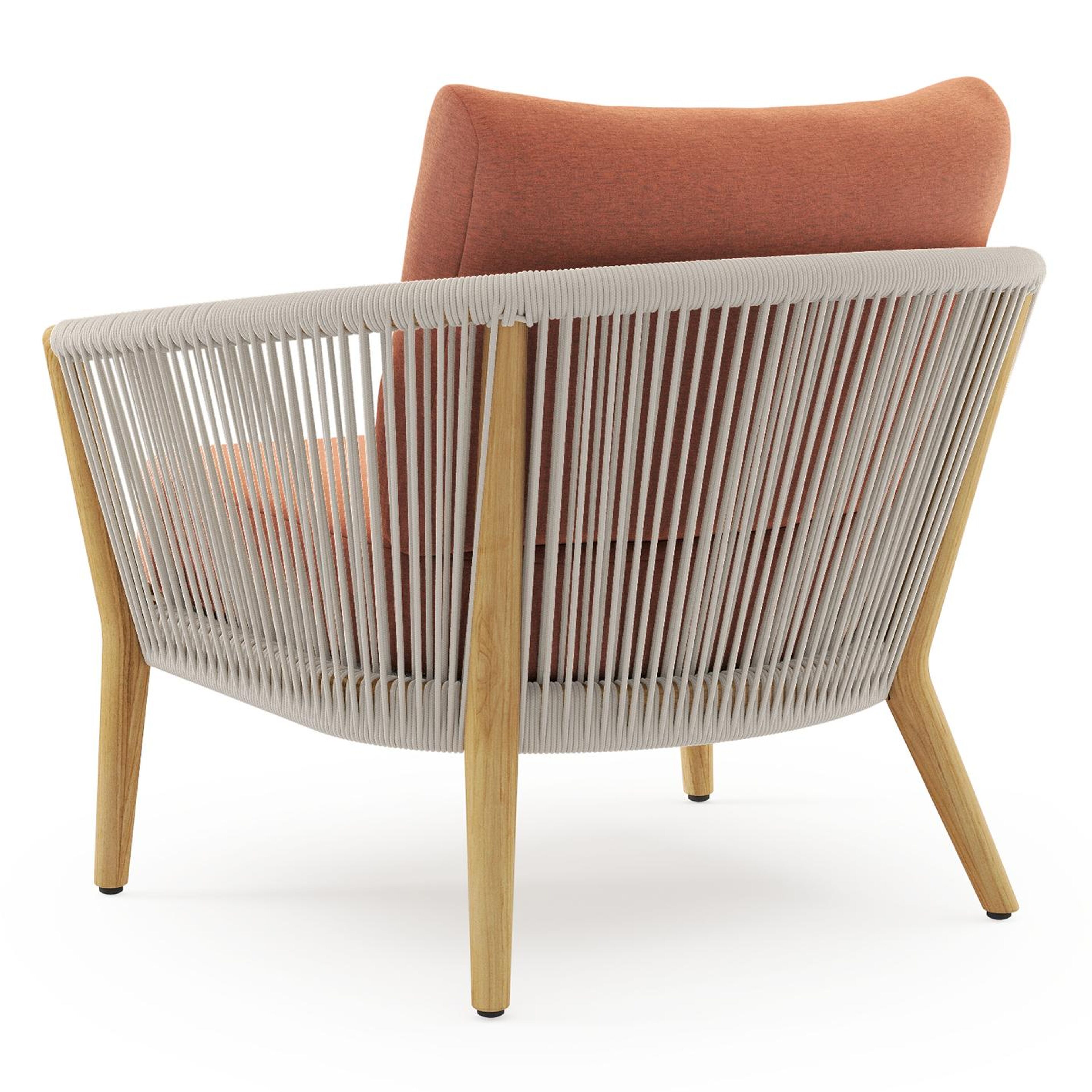 Orso loungestoel in teak en beige verticaal geweven ronde rope met Heritage Rust all weather sunbrella® luxe kussen | Exterioo tuinmeubelen