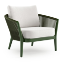 Orso loungestoel in teak en beige verticaal geweven ronde rope met Soul Optik all weather solica kussen | Exterioo tuinmeubelen