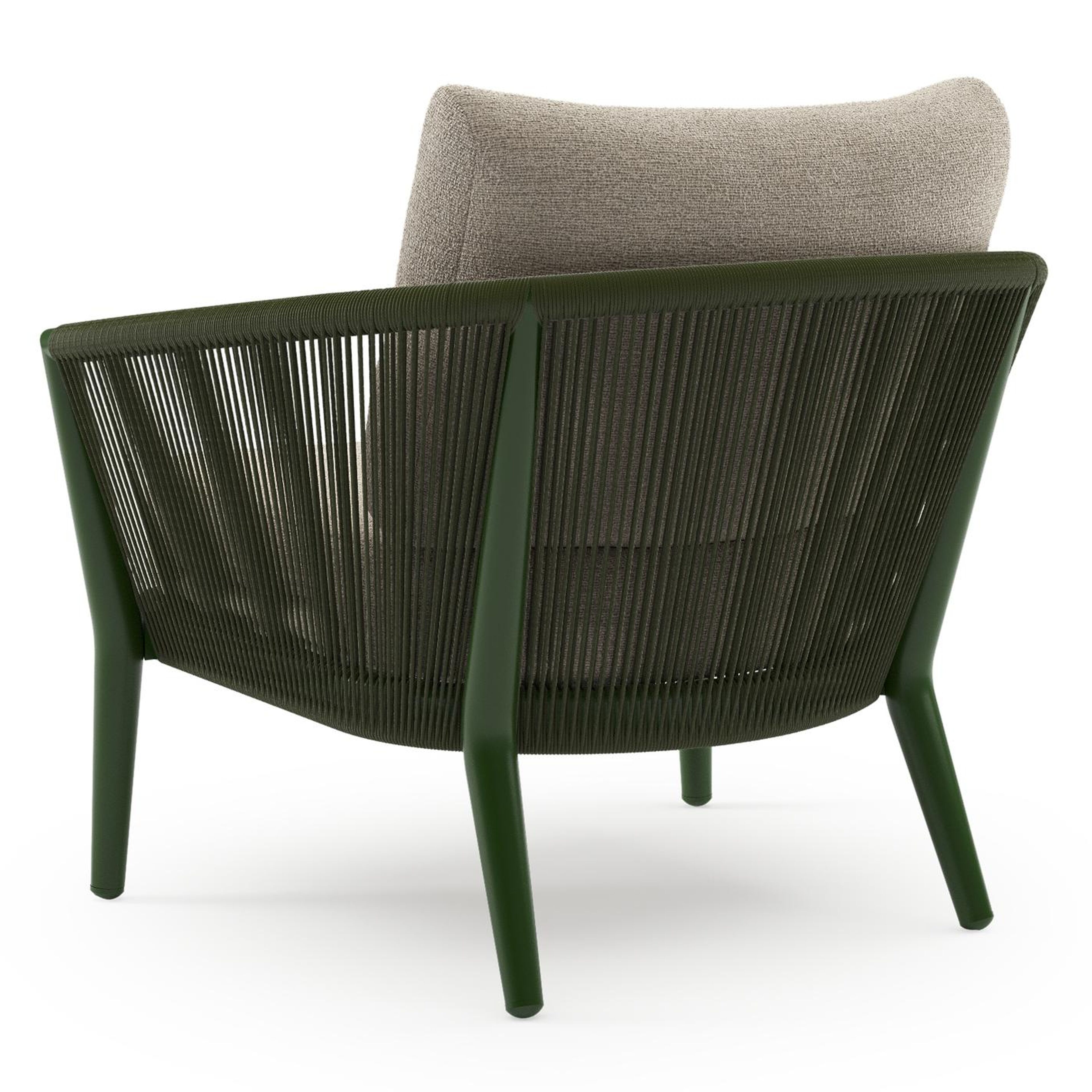 Orso loungestoel in groen aluminium en groen verticaal geweven ronde rope met Catania Greige all weather cosytica kussen | Exterioo tuinmeubelen