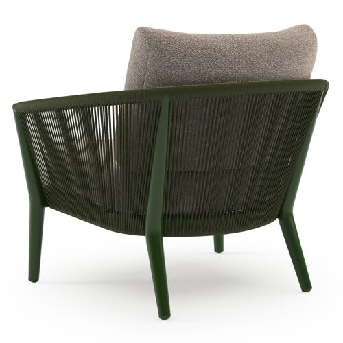 Orso loungestoel in groen aluminium en groen verticaal geweven ronde rope met Wander Manioc all weather sunbrella® luxe kussen | Exterioo