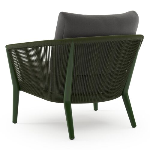 Orso loungestoel in groen aluminium en groen verticaal geweven ronde rope met Natte Charcoal Chine all weather sunbrella® luxe kussen | Exterioo