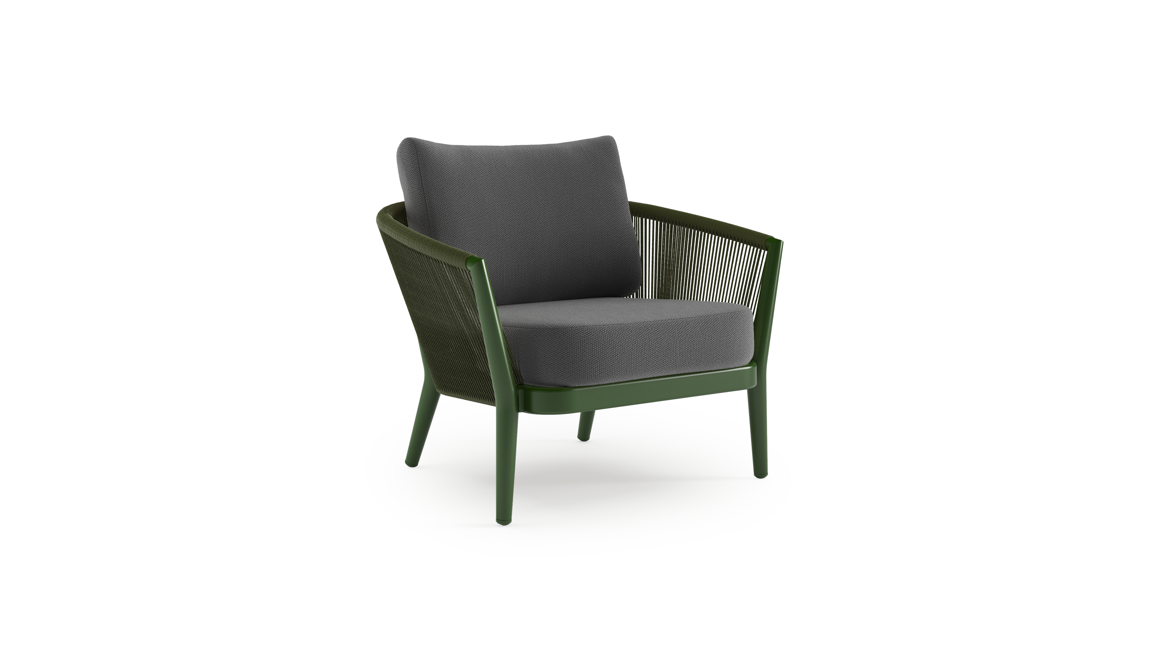 Orso loungestoel in groen aluminium en groen verticaal geweven ronde rope met Lopi Shadow all weather sunbrella® luxe kussen | Exterioo tuinmeubelen